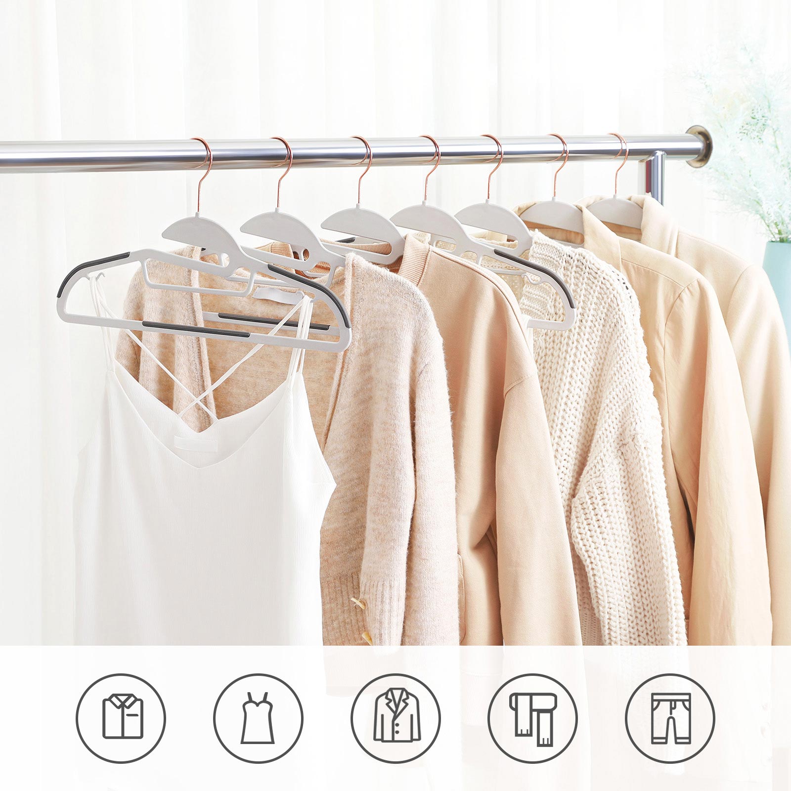 Er du bange for, at kraven p? dine T-shirts bliver slidt, n?r du h?nger dem p? en b?jle? Er du tr?t af, at dit t?j hele tiden falder ned fra b?jlen, og du skal h?nge det op igen? Vil du give dit kl?deskab et muntert farvest?nk?