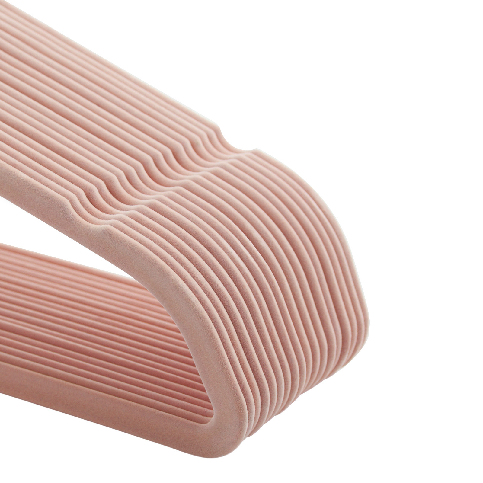 Gennemt?nkt design: Selv de fineste silkekjoler glider ikke ned fra disse skridsikre velourb?jler; skjorter buler ikke ud ved skuldrene takket v?re b?jlernes ergonomiske rundinger; takket v?re indhakene i skulderomr?det passer selv stroptoppe p? disse b?jler. Krogen kan drejes 360?, s? du nemt kan vende dit t?j, hvis du ved et uheld har h?ngt det i den modsatte retning. Kort sagt, disse b?jler er designet til mange forskellige typer t?j! Produktdetaljer: