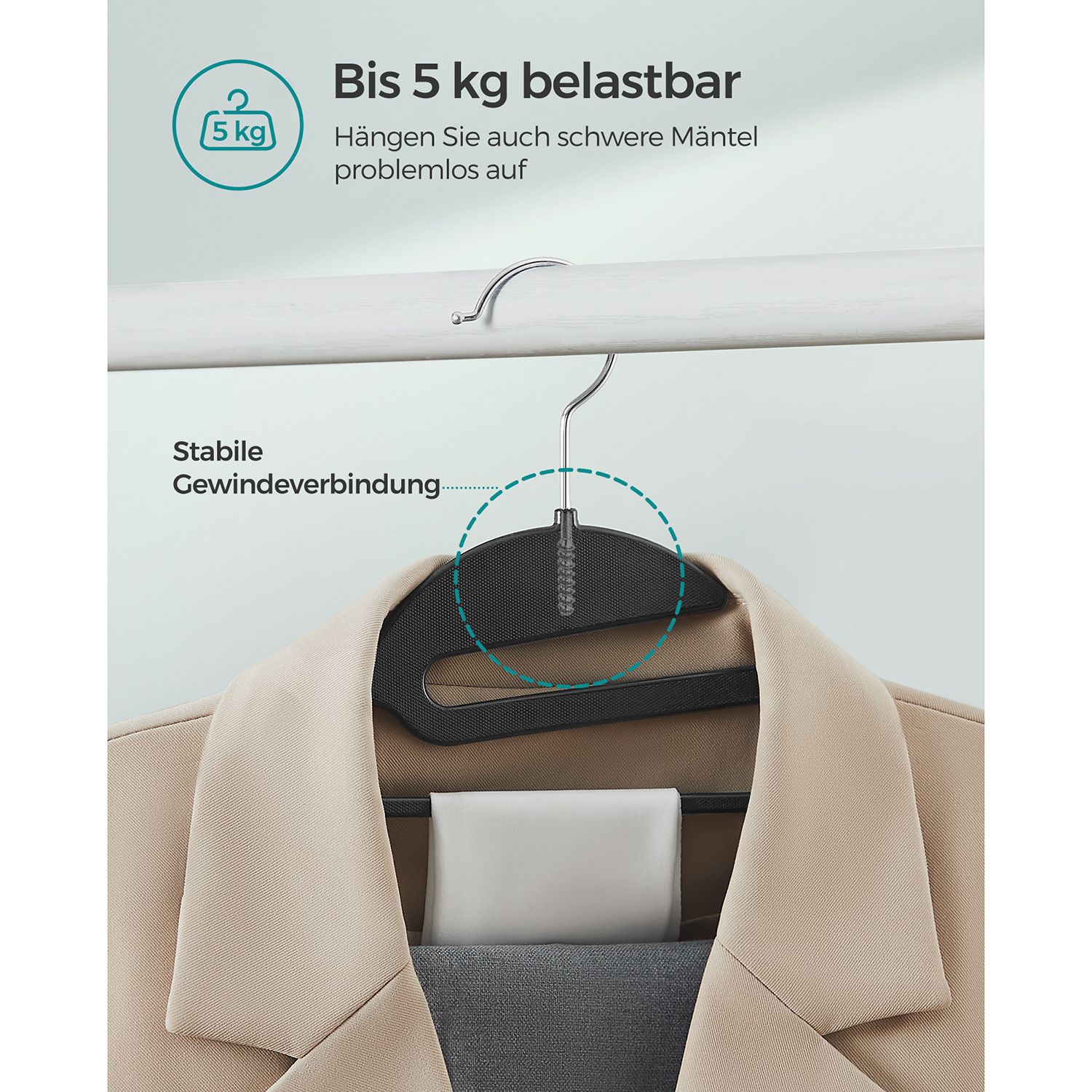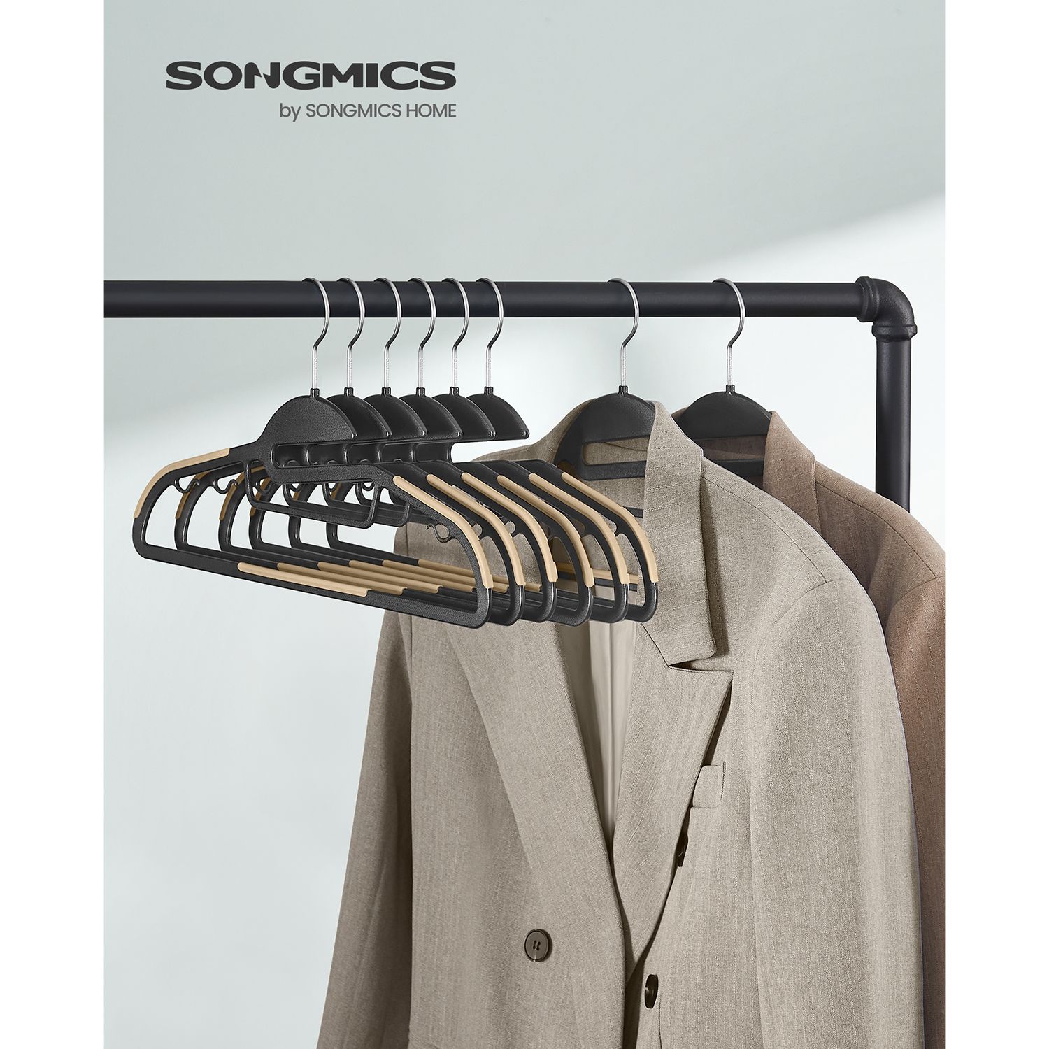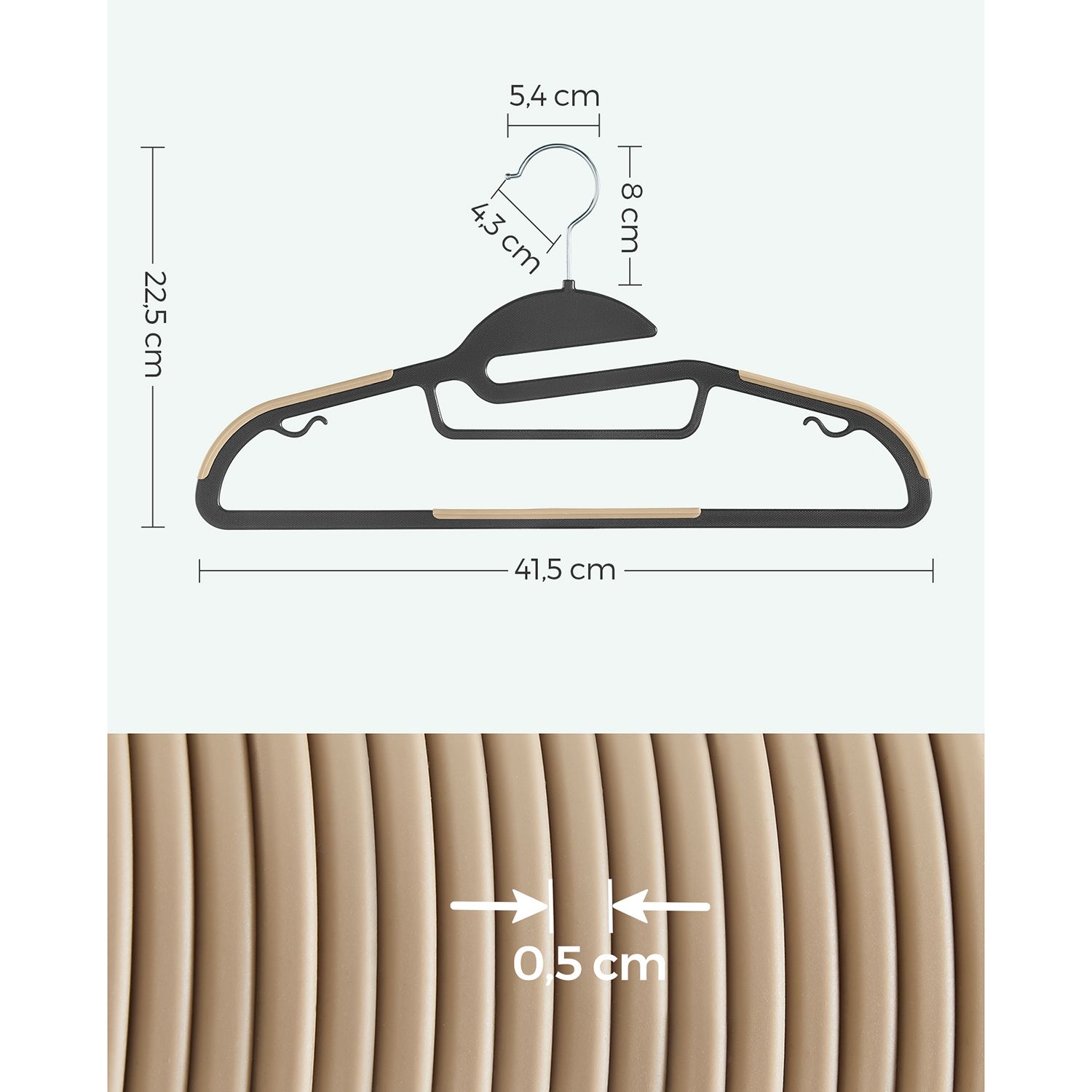 SONGMICS b?jler, 20 stk., jakkeb?jler af plast, god b?reevne, S-formet ?bning, skridsikker, tykkelse 0,5 cm, pladsbesparende, 360? drejelig krog, 41,5 cm lang, hvid-m?rkegr? CRP041WG02