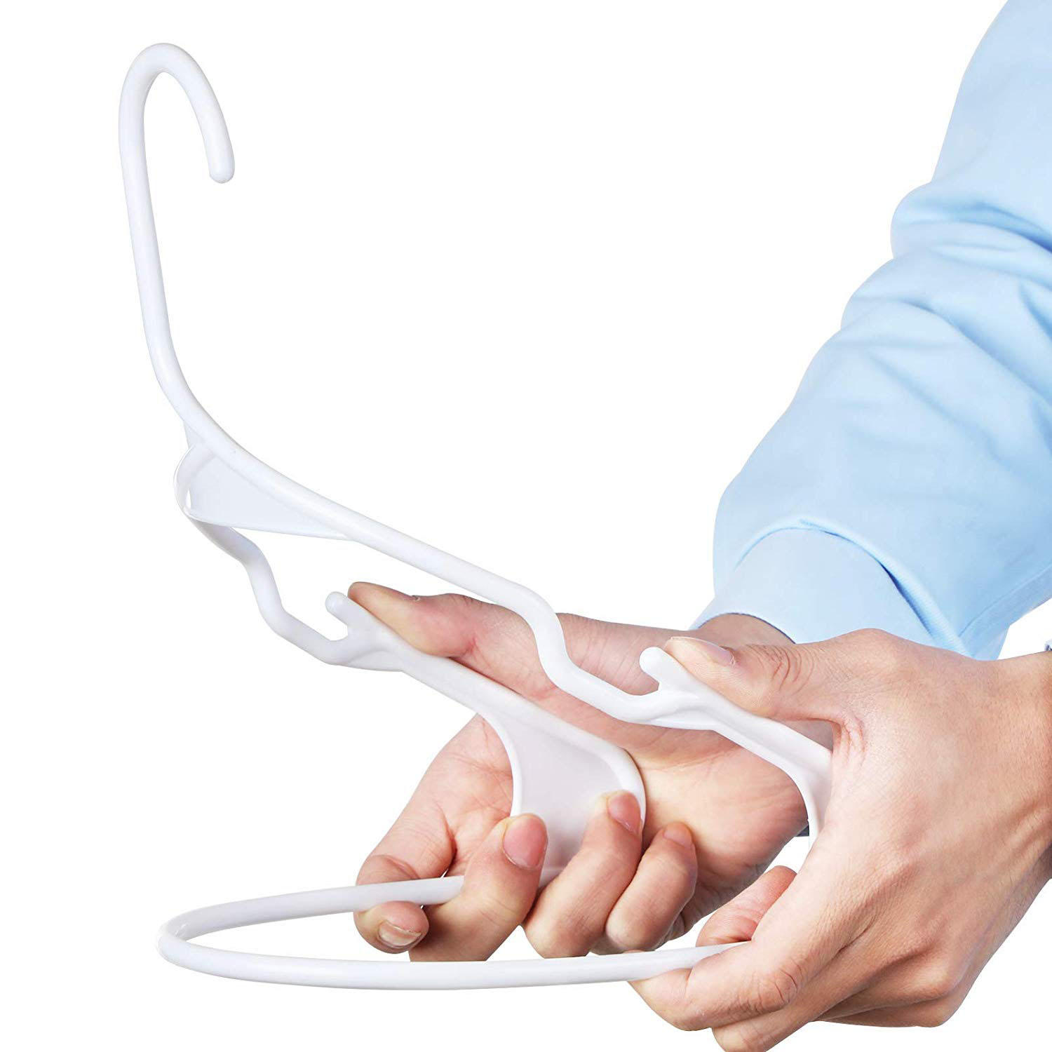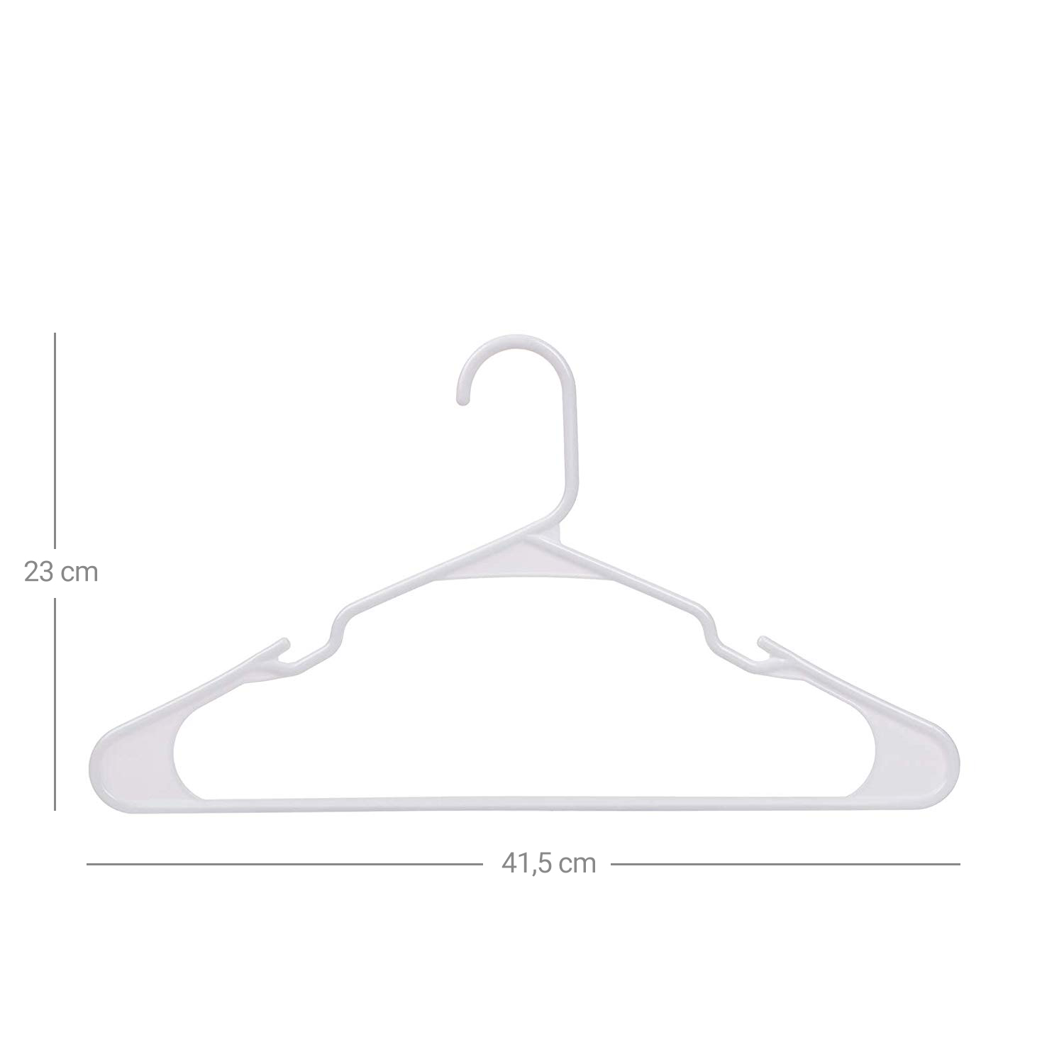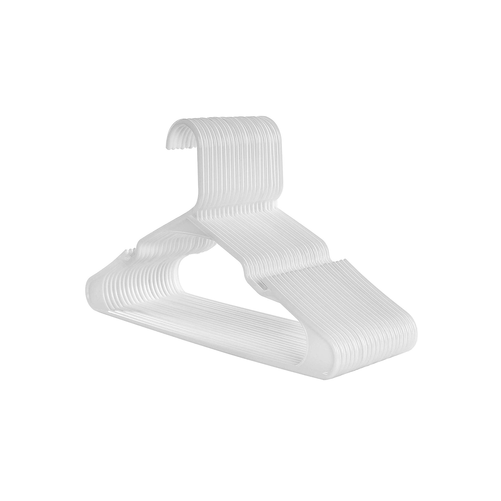 Med klemmer for st?rre frihed De 10 klemmer er nemme at montere og g?r det muligt at h?nge bukser, nederdele og andet t?j, som ikke s? let kan h?nges p? en b?jle. Tidl?st design med indhak B?jlernes design g?r det muligt at h?nge jakker og bukser, tr?jer og nederdele eller skjorter og shorts sammen. De ekstra indhak i siderne er ideelle til stroptr?jer, bh’er samt nederdele og bukser, der har l?kker til oph?ngning. S?rligt og slankt design B?jlerne er kun 0,6 cm tykke og tager derfor meget lidt plads i kl?deskabet. De er dog robuste, kn?kker ikke let og kan holde til en del t?j. Produktdetaljer: – Farve: sort – Materiale: PP-plast – M?l for hver b?jle: 41,5 x 23 x 0,6 cm (B x H x D) – V?gt for hver b?jle: 34 g – Maks. belastning for hver b?jle: 2,5 kg Leveringsomfang: – 50 x b?jler SONGMICS Bem?rkninger: – Hold b?jlerne v?k fra ant?ndelseskilder. – Brug ikke b?jlerne i rum med h?j temperatur. – H?ng ikke for tunge genstande og t?j p? b?jlerne – Brug ikke disse b?jler i en b?rbar t?rretumbler.