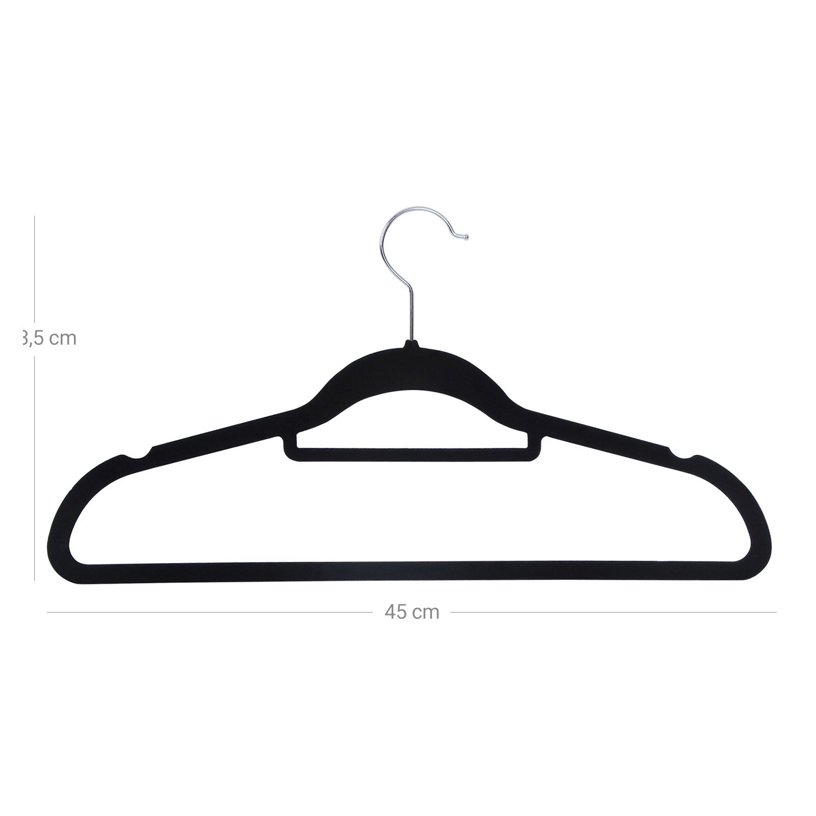 Songmics b?jler med flokket overflade giver dig en skridsikker, pladsbesparende og holdbar l?sning til oph?ngning af t?j. For at im?dekomme forskellige behov er denne b?jle multifunktionel, s? du ikke kun kan h?nge frakker eller toppe sikkert op, men ogs? finde plads til dine bukser og slips.Bem?rkninger: F?r brug skal du bruge en h?rt?rrer til at bl?se det overfladiske fnug v?k (det overfladiske fnug i emballageposerne eller p? b?jlerne kan v?re til stede, det er normalt, s? v?r ikke bekymret). Undg? at opbevare b?jlerne i l?ngere tid i rum med h?j luftfugtighed og h?je temperaturer. Undg? at h?nge v?dt t?j p? b?jlerne. Produktdetaljer: Materiale: ABS (plast) + fl?jl Farve: sort M?l: 45 x 23,5 x 0,6 cm (B x H x D) H?jde p? krogen: 8 cm ?bning p? krogen: 5,4 cm Leveringsomfang: 50 x b?jler med buksestang