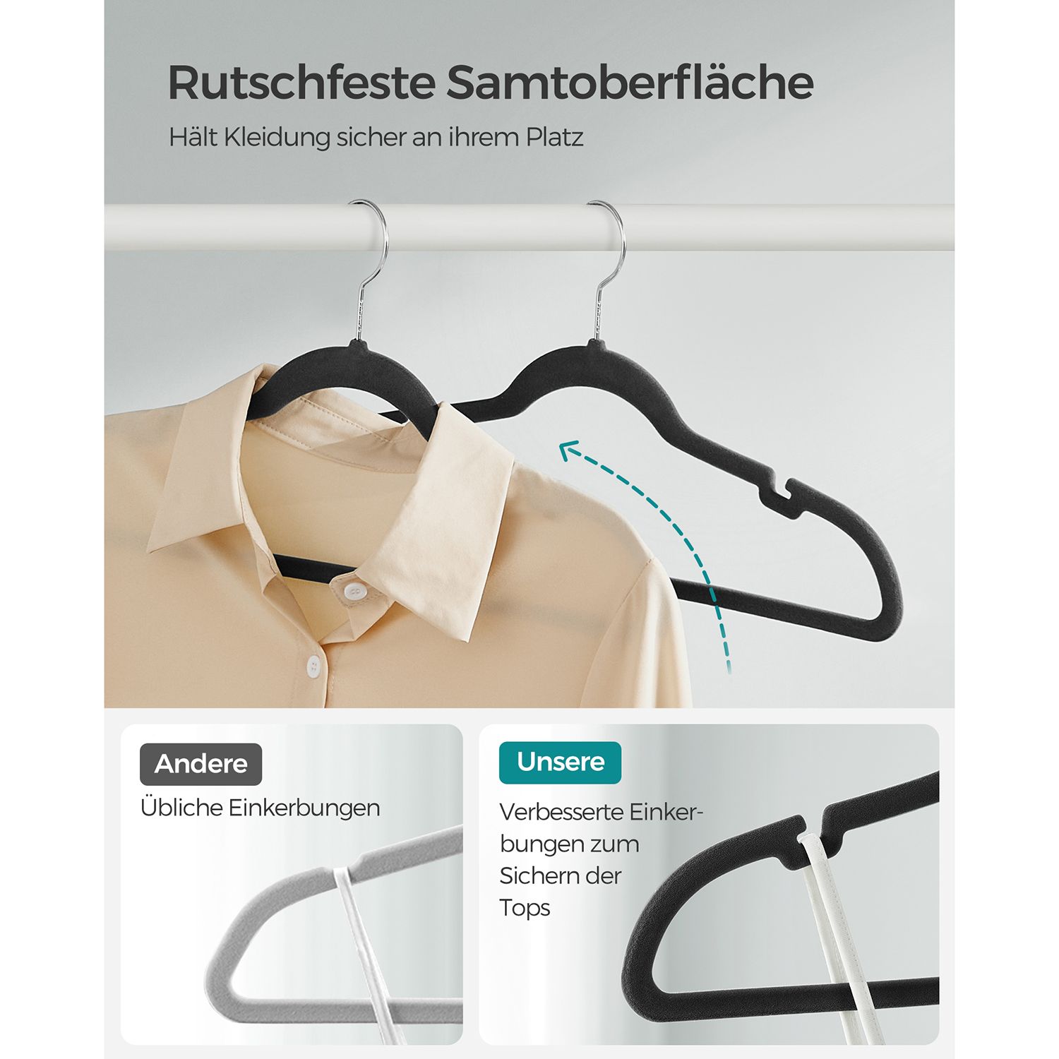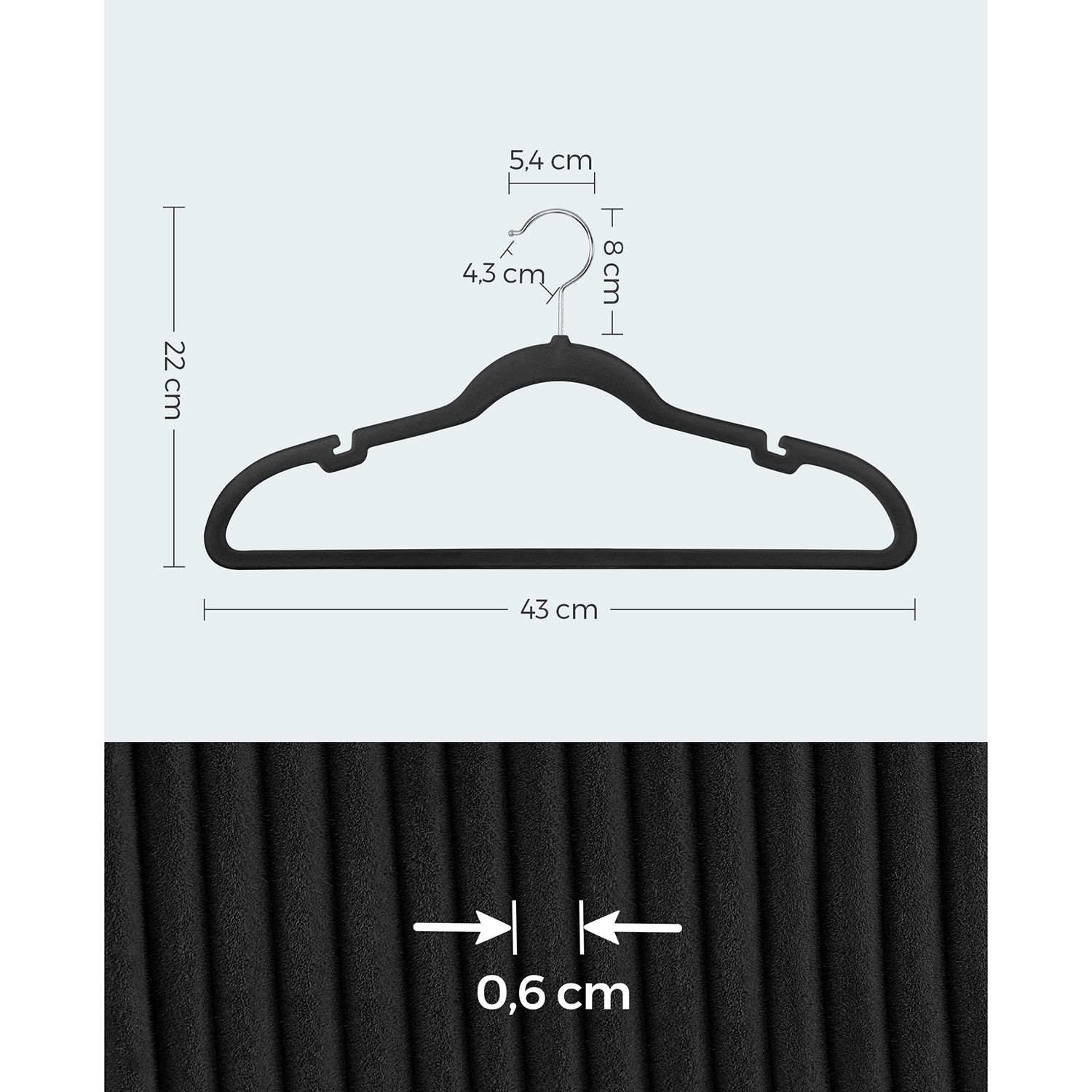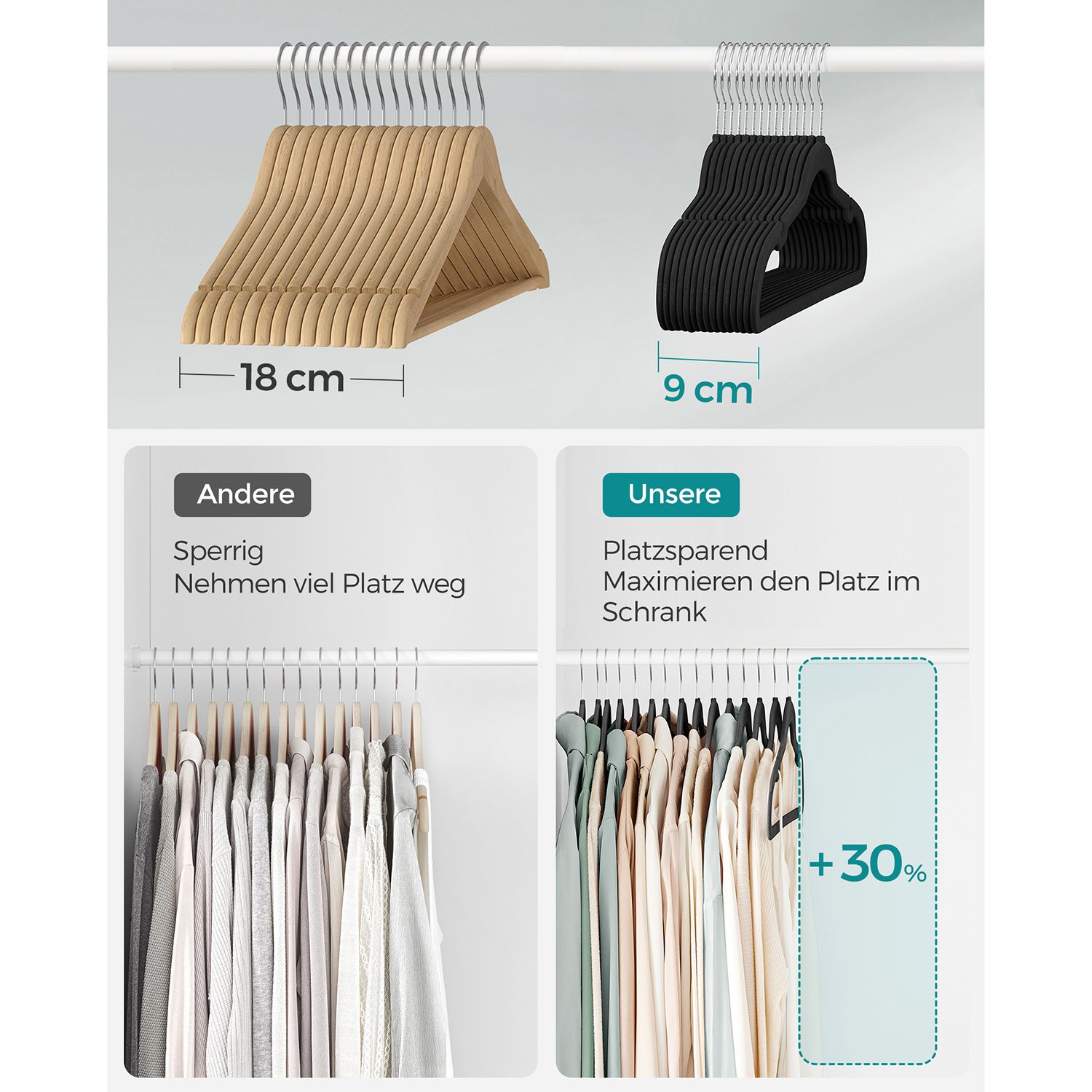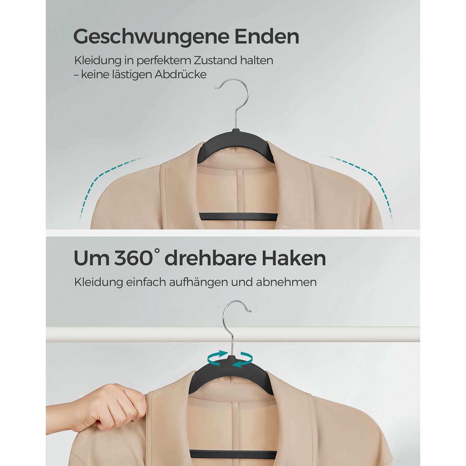 SONGMICS b?jle i fl?jl, s?t med 30 stk., b?jle, skridsikker, med fordybninger i skulderomr?det, b?jle til bukser, 360? drejelig krog, pladsbesparende, 0,6 cm tyk, 43 cm lang, sort CRF029B03
