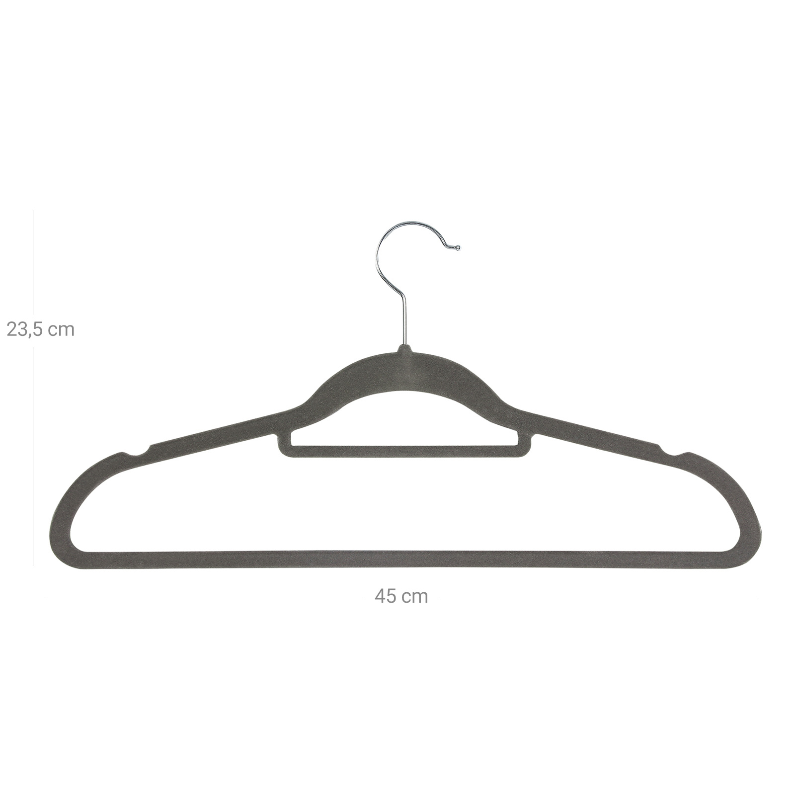Songmics b?jle med flokket overflade giver dig en skridsikker, pladsbesparende og holdbar l?sning til opbevaring af t?j. For at im?dekomme forskellige behov er denne b?jle multifunktionel, s? du ikke kun kan h?nge frakker eller toppe sikkert op, men ogs? finde plads til dine bukser og slips.Bem?rkninger: Brug en h?rt?rrer til at fjerne fnug p? produktets overflade, inden du bruger b?jlerne. (Fnug p? b?jlerne eller i emballageposerne er et typisk f?nomen. Der er ingen grund til bekymring.) Undg? at opbevare b?jlerne i l?ngere tid i rum med h?j luftfugtighed eller h?je temperaturer.H?ng ikke v?dt t?j p? b?jlerne. Produktdetaljer: Materiale: ABS (plast) + fl?jl Farve: gr? M?l: 45 x 24 x 0,6 cm (B x H x D) H?jde p? krogen: 8 cm ?bning p? krogen: 5,4 cm Leveringsomfang: 50 x b?jler med buksestang