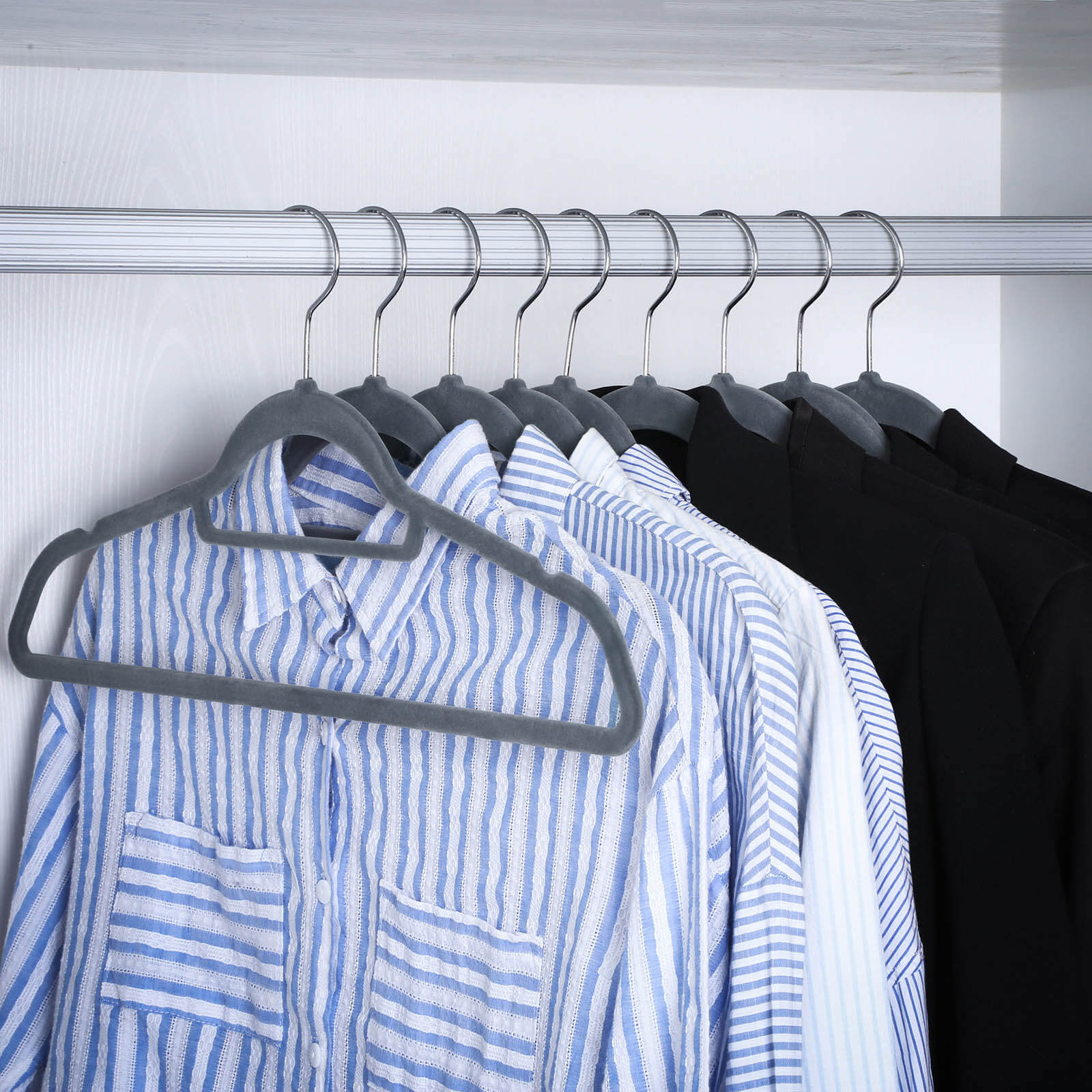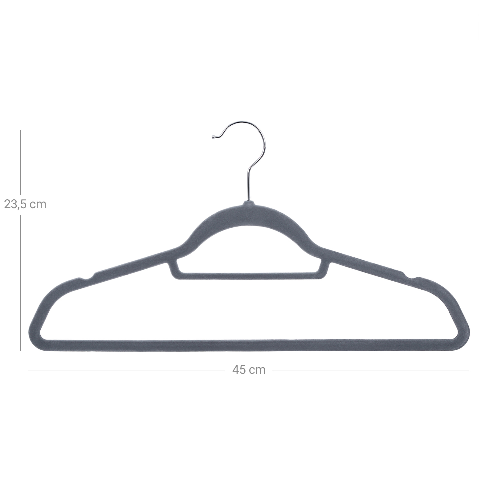 Bem?rkninger: F?r brug skal du bruge en h?rt?rrer til at fjerne det overfladiske fnug (der kan v?re overfladisk fnug i emballageposerne eller p? b?jlerne, hvilket er normalt, s? du skal ikke bekymre dig).Undg? at opbevare b?jlerne i l?ngere tid i rum med h?j luftfugtighed og h?je temperaturer. Undg? at h?nge v?dt t?j p? b?jlerne.Produktdetaljer: Materiale: ABS (plast) + fl?jl Farve: lysegr? M?l: 45 x 23,5 x 0,6 cm (B x H x D) H?jde p? krogen: 8 cm ?bning p? krogen: 5,4 cm Leveringsomfang: 50 x b?jler med buksestang