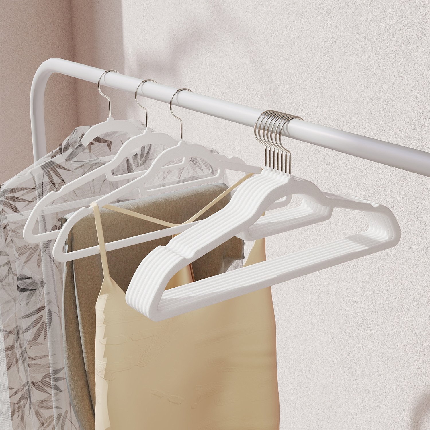 B?jler, et tilsyneladende profant tilbeh?r, g?r din hverdag meget nemmere. Takket v?re det enkle, praktiske design bringer b?jlerne fra SONGMICS din garderobe i orden. S? bliver det igen sjovt at v?lge t?j om morgenen! Fordobl pladsen i dit skab I sammenligning med r?rformede b?jler tager disse 0,6 cm tynde fl?jlsb?jler mindre plads, s? du kan have dobbelt s? meget t?j i dit kl?deskab. En perfekt l?sning til begr?nsede kl?deskabe! S? st?rke, men ogs? s? bl?de Disse jakkeb?jler er st?rke nok til at kunne b?re selv dine tunge vinterjakker. Men de har ogs? bl?de sider ? takket v?re deres behageligt bl?de overflade kan selv dine fineste t?j h?nges op uden at blive kr?llede. Disse 50 farverige b?jler ser ikke kun godt ud, men er ogs? en praktisk hj?lp i hverdagen. Her er plads til hele outfittet P? disse b?jler kan du ikke kun h?nge jakker, skjorter eller tr?jer, men takket v?re den lille midterstang ogs? slips, b?lter og t?rkl?der. L?g bukserne blot over den stabile tv?rstang. Produktdetaljer:- Farve: Hvid – Materiale: Fl?jl, ABS-plast, metalhage – St?rrelse pr. b?jle: 45 x 0,6 x 23,5 cm (L x B x H) – V?gt pr. b?jle: 78 g – Maks. statisk belastning pr. b?jle: 5 kg Leveringsomfang: – 50 x fl?jlsb?jler SONGMICS Bem?rkninger:- H?ng ikke v?dt t?j p? b?jlerne. – Hold b?jlerne v?k fra varme- og ant?ndelseskilder. – Brug ikke b?jlerne i omgivelser med h?j temperatur eller h?j luftfugtighed. – H?ng ikke for tunge genstande og t?j p? b?jlerne. – Brug ikke disse b?jler i en t?rretumbler.