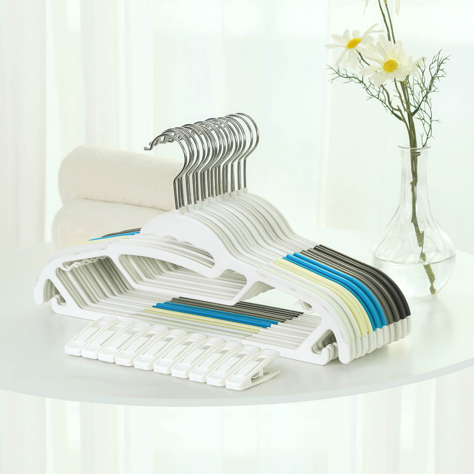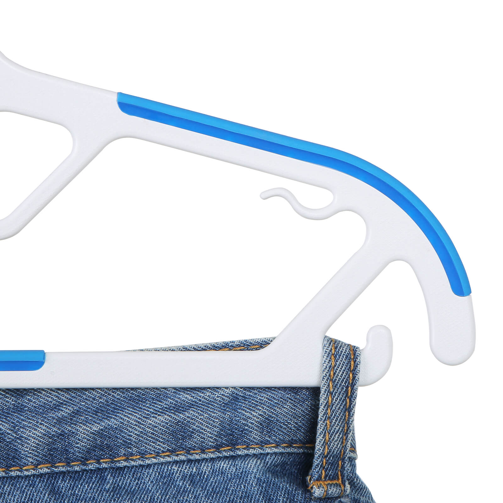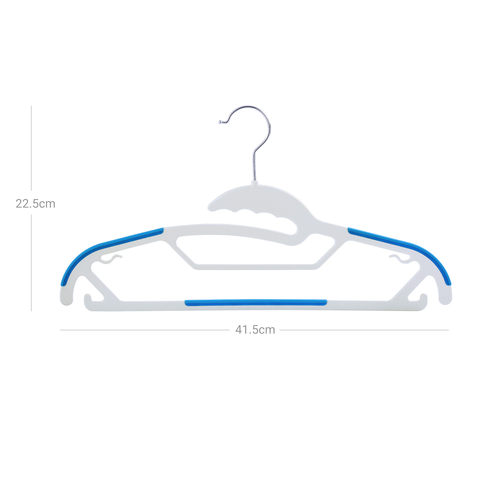 Disse b?jler er designet, s? der kan h?nges mere end ?t stykke t?j p? dem. Der kan h?nges en jakke/bluse og et par bukser p? samtidig, og indhakket passer perfekt til t?rkl?der eller slips. Derudover er der to kroge til sk?rtestropper. S? er man forberedt p? mange eventualiteter ? og det hele med kun ?n b?jle.Takket v?re materialets h?je kvalitet har denne b?jle med aftagelige elastikker en l?ngere levetid og bedre skridsikkerhed end en normal b?jle. Denne Songmics-b?jle er ogs? meget velegnet til at h?nge nyvasket t?j p?. Produktdetaljer: Farve: Bl?, gr?, sort, hvid, beige Materiale: ABS-plast St?rrelse pr. b?jle: 41,5 x 0,5 x 22,5 cm (L x B x H) V?gt pr. b?jle: 86 g Maks. belastning pr. b?jle: 5 kg Leveringsomfang: 50 x plastb?jler SONGMICS Bem?rkninger: Hold b?jlerne v?k fra varme- og ant?ndelseskilder.Brug ikke b?jlerne i omgivelser med h?je temperaturer. H?ng ikke for tunge genstande eller t?j p? b?jlerne. Brug ikke disse b?jler i en b?rbar t?rretumbler.