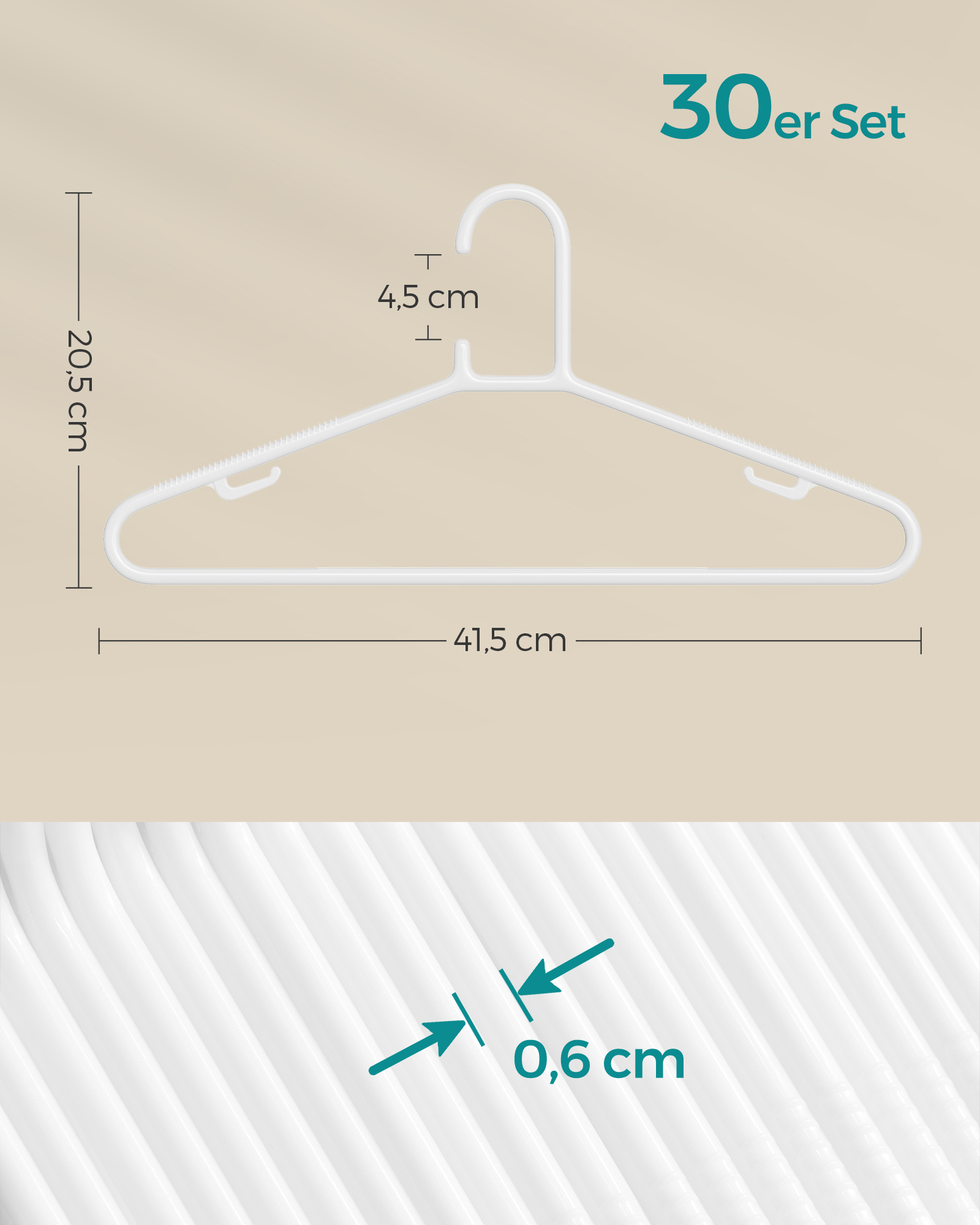 SONGMICS B?jler i plast, s?t med 30 stk., pladsbesparende, lette b?jler til bukser, jakker, kjoler