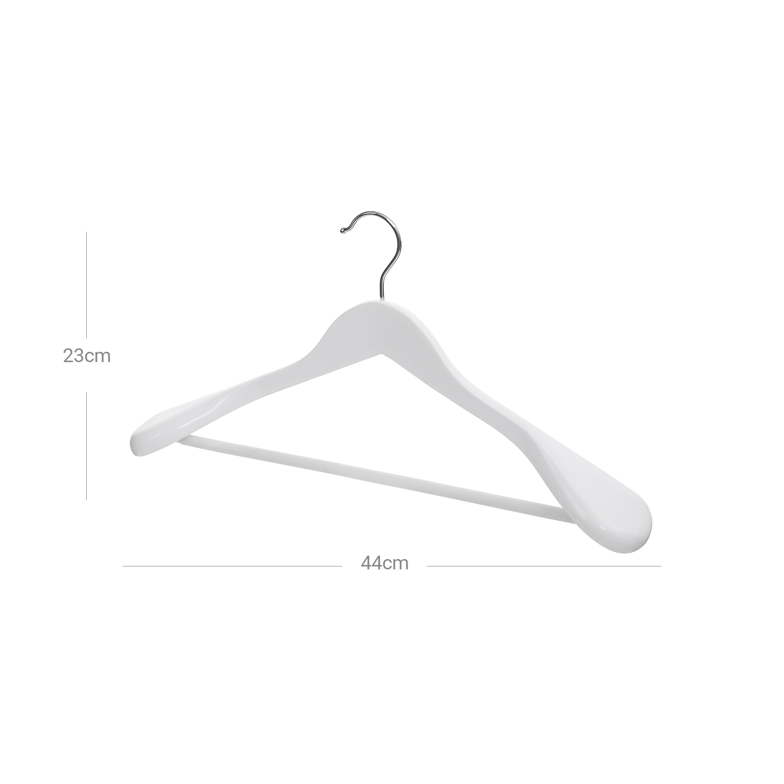 Skal du k?be et nyt jakkes?t, fordi det sidste har mistet sin form p? grund af forkert opbevaring? Det sker ikke igen med disse jakkes?tb?jler fra SONGMICS. Takket v?re de ergonomiske kurver og de brede skuldre kan du h?nge dine jakkes?t p?nt p? disse b?jler. Disse b?jler af massivt tr? har en behagelig glat overflade, der er omhyggeligt poleret og lakeret. De er desuden kendetegnet ved deres robusthed og lange levetid. En praktisk hverdagshj?lper til opbevaring af jakkes?t af h?j kvalitet. Produktdetaljer: – Farve: Hvid – Materiale: Massivt tr? (Schima Superba), forkromet krog – St?rrelse pr. b?jle: 44 x 5,5 x 23 cm (L x B x H) – Samlet v?gt: 1,4 kg – Maks. statisk belastning pr. b?jle: 5 kg Leveringsomfang: – 6 x tr?jakkeb?jler SONGMICS Bem?rkninger:- Brug ikke b?jlerne i l?ngere tid i omgivelser med h?j temperatur eller h?j luftfugtighed for at undg? skader s?som lakafskalning. – H?ng ikke v?dt t?j p? b?jlerne. – T?r b?jlerne af med en fugtig klud for at reng?re dem. Produktbeskrivelse