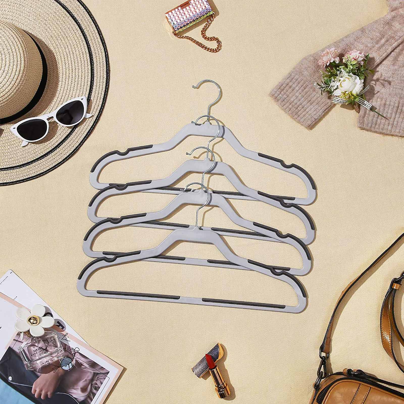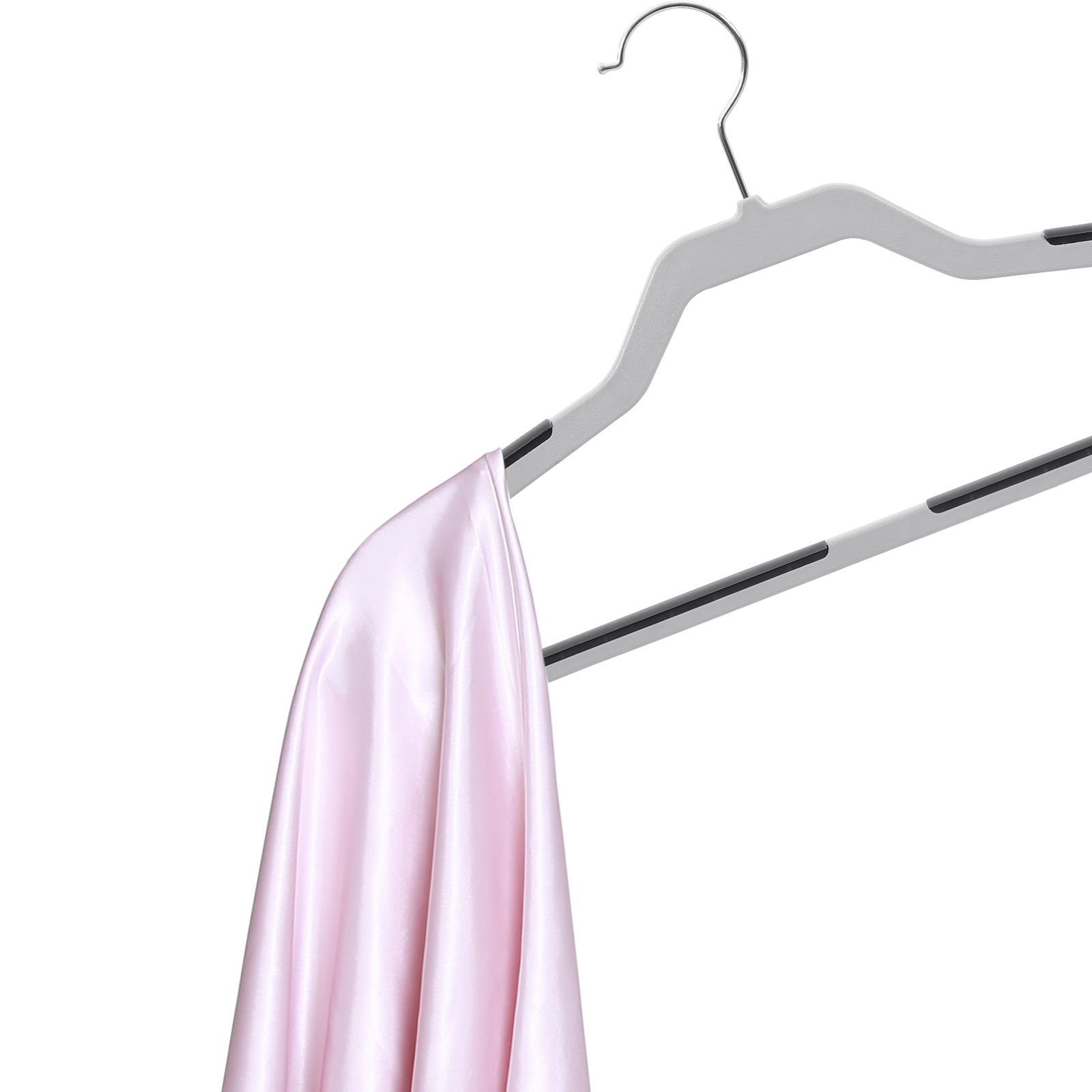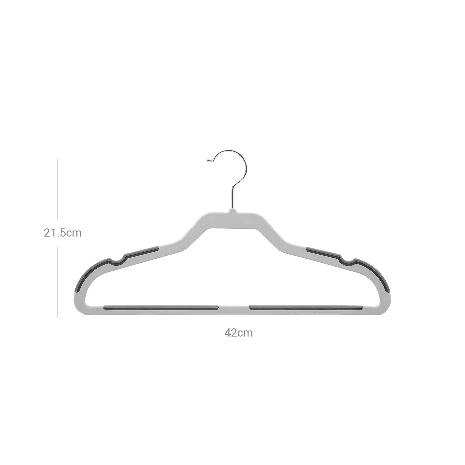 Et kig ind i kl?deskabet: Har dit kl?deskab nogensinde set ud, som om der var faldet en bombe ned i det? Disse 20 slanke b?jler hj?lper dig med at f? det i orden igen, s? du fremover altid kan gl?de dig over p?nt oph?ngte t?jstykker. Skridsikker, anti-buler: Takket v?re de dobbelte skridsikre striber i skulderomr?det og p? buksestangen p? b?jlerne ender dine jakker, veste eller bukser ikke l?ngere p? bunden af skabet og f?r heller ikke buler. Slanke, pladsbesparende, stabile: B?jlerne er kun 0,5 cm tykke og tager derfor kun lidt plads i dit skab. Alligevel er de meget robuste, formstabile og kan ogs? b?re tunge bekl?dningsgenstande. Produktdetaljer: – Farve: Gr? – Materiale: ABS-plast, metal – St?rrelse pr. b?jle: 42 x 0,5 x 21,5 cm (L x B x H) – V?gt pr. b?jle: 80 g – Maks. statisk belastning pr. b?jle: 5 kg Leveringsomfang: – 20 x b?jler SONGMICS Bem?rkninger:- Brug ikke b?jlerne i omgivelser med h?je temperaturer. – Egnet til hverken vaskemaskine eller t?rretumbler.