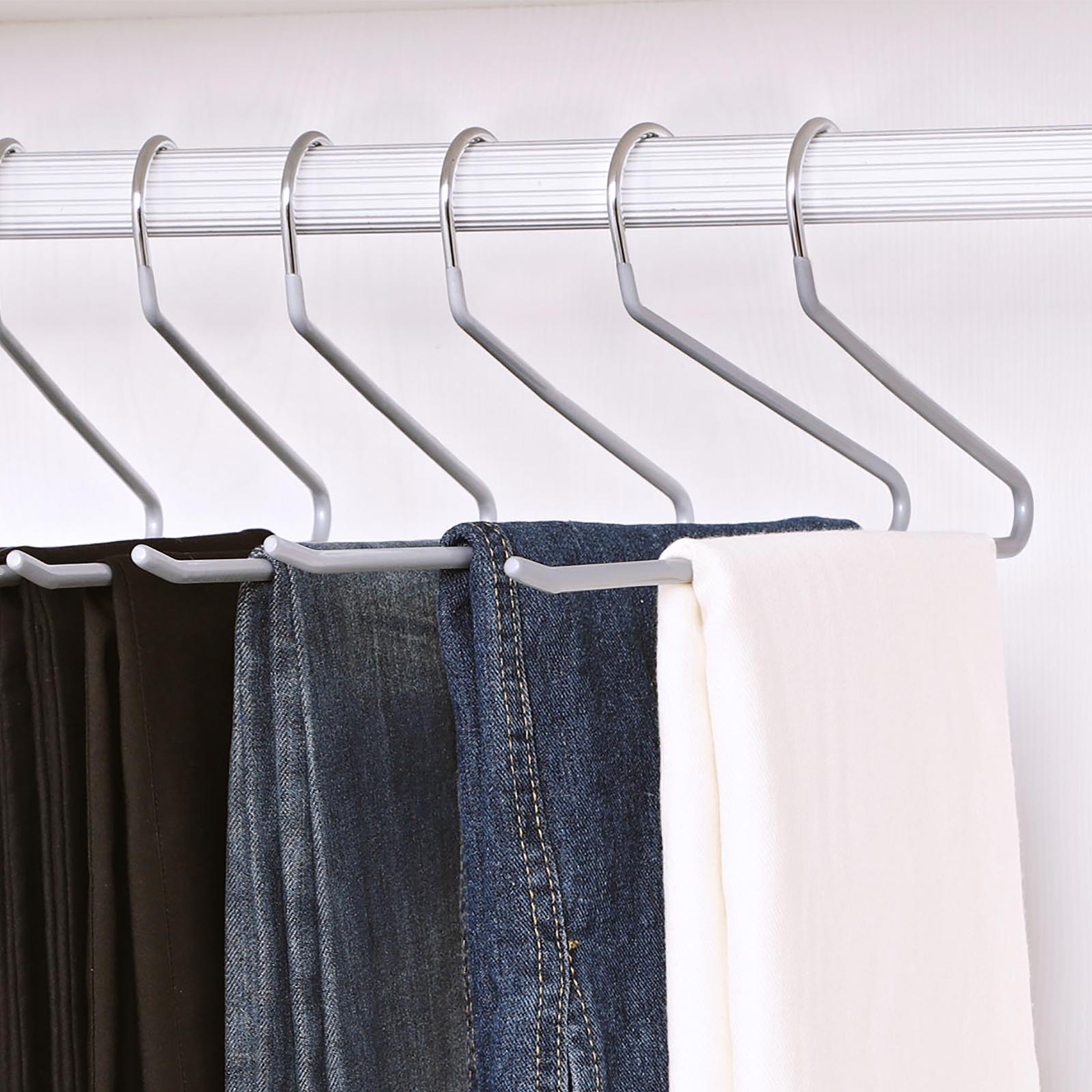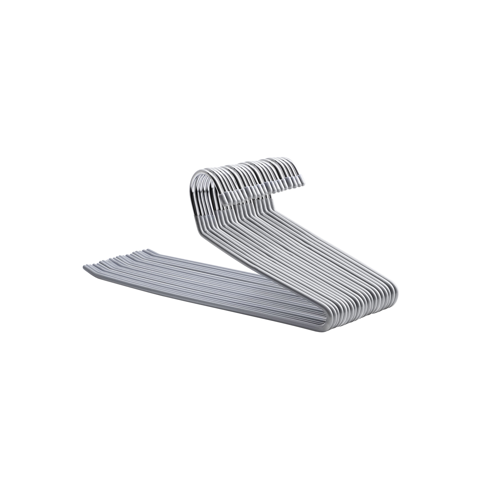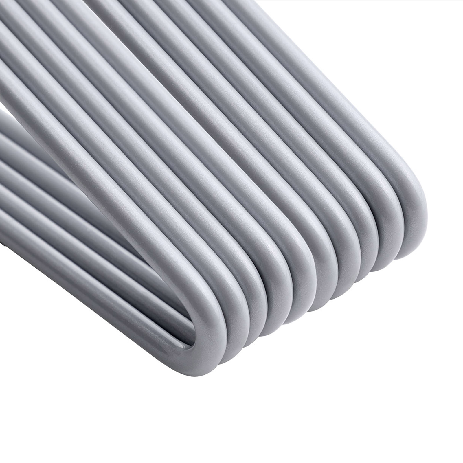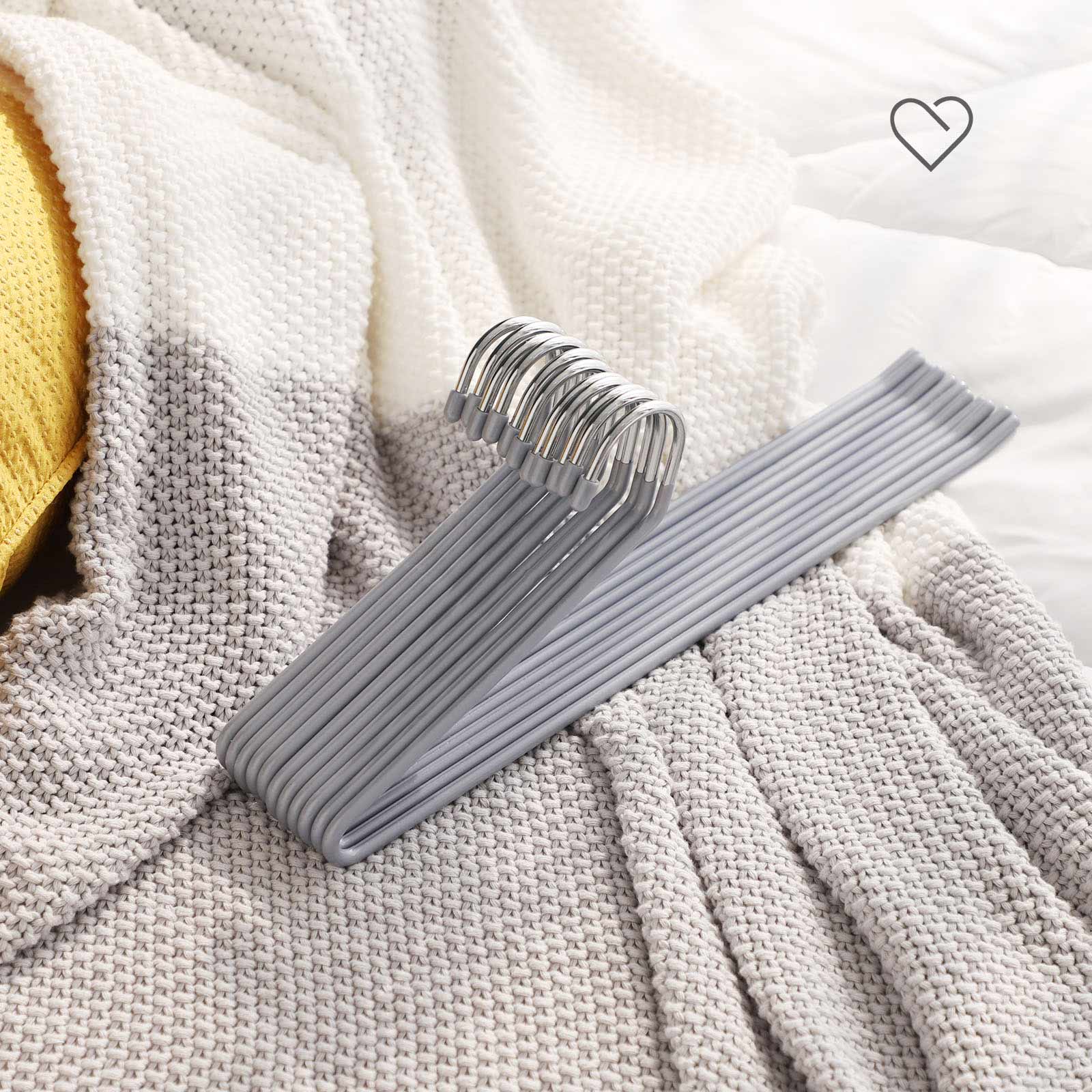 ?ben ende-design Den str?mlinede b?jle i ?t stykke g?r det nemt at tage dit t?j af uden at h?nge b?jlen af stangen.Skridsikker og holdbarDen belagte buksestang er skr?tstillet opad i enden for at forhindre, at t?jet falder ned; forkromet metal og PVC-harpiks er rust- og oxidationsbestandigt.PladsbesparendeMed b?jlerne kan du nemt organisere dit t?j og dermed holde din garderobe altid p?n og ordentlig.Produktdetaljer: Farve: gr? Materiale: forkromet metal, bel?gning af PVC-plast M?l: 38 x 14,5 x 0,5 cm (B x H x D) V?gt: 2,25 g Maks. belastbarhed pr. b?jle: 3 kg Leveringsomfang: 20 x metalb?jler SONGMICS Bem?rkninger:Brug ikke b?jlerne i l?ngere tid ved h?je temperaturer eller i v?de omgivelser.