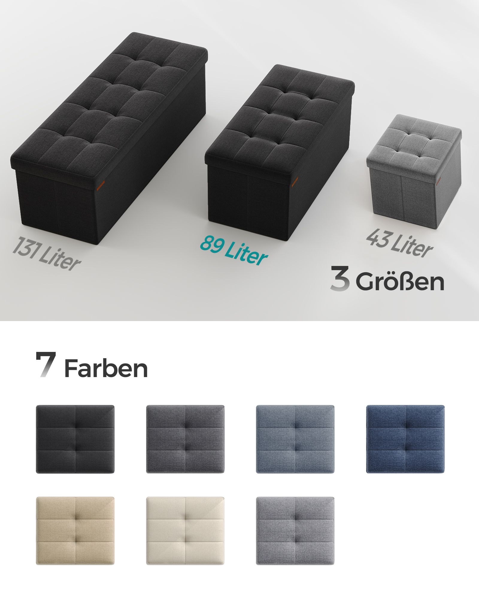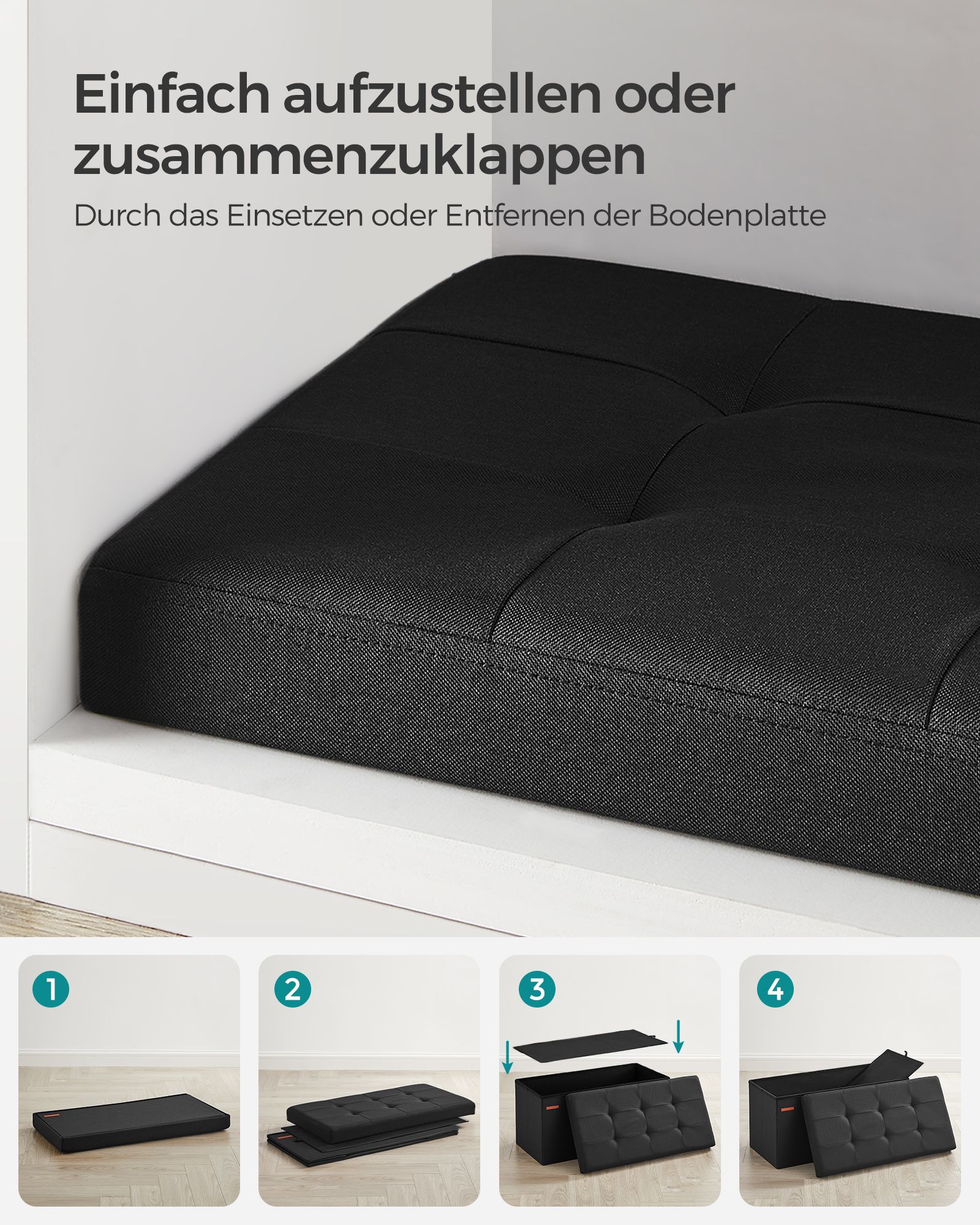 SONGMICS b?nk 76 cm sammenklappelig med opbevaringsplads, sort