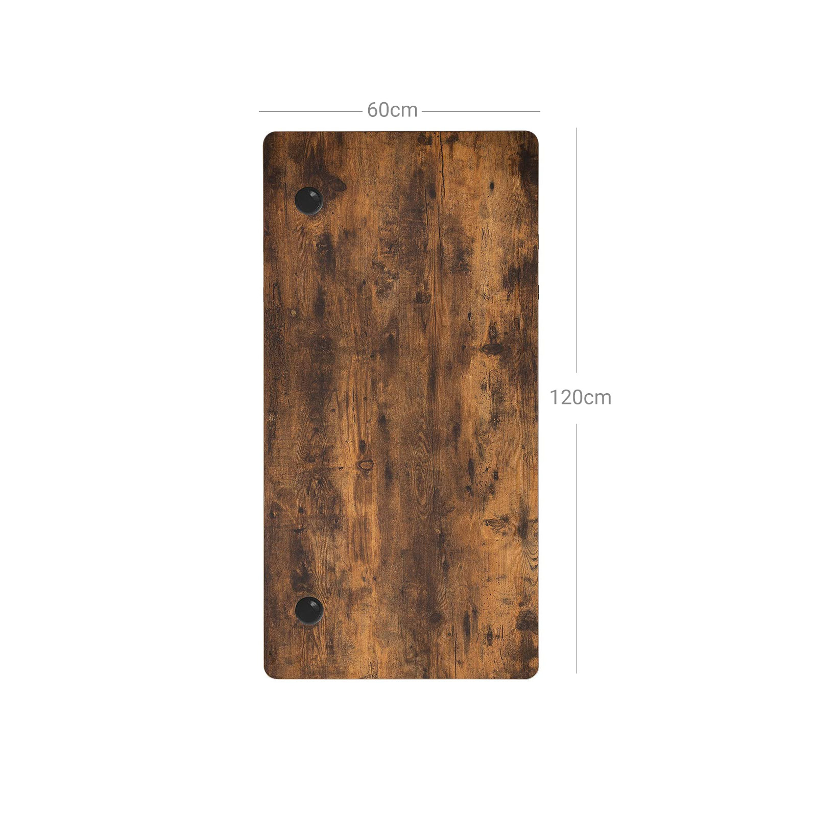 Produktdetaljer:Farve: Vintagebrun Materiale: MDF (medium densitetsfiberplade), melaminbel?gning, PVC-forsegling St?rrelse: 120 x 60 x 1,8 cm (L x B x H) V?gt: 9,5 kg Leveringsomfang: 1 x bordplade til SONGMICS elektrisk skrivebordsstativ 1 x vejledning (DE, EN, IT, ES, FR)
