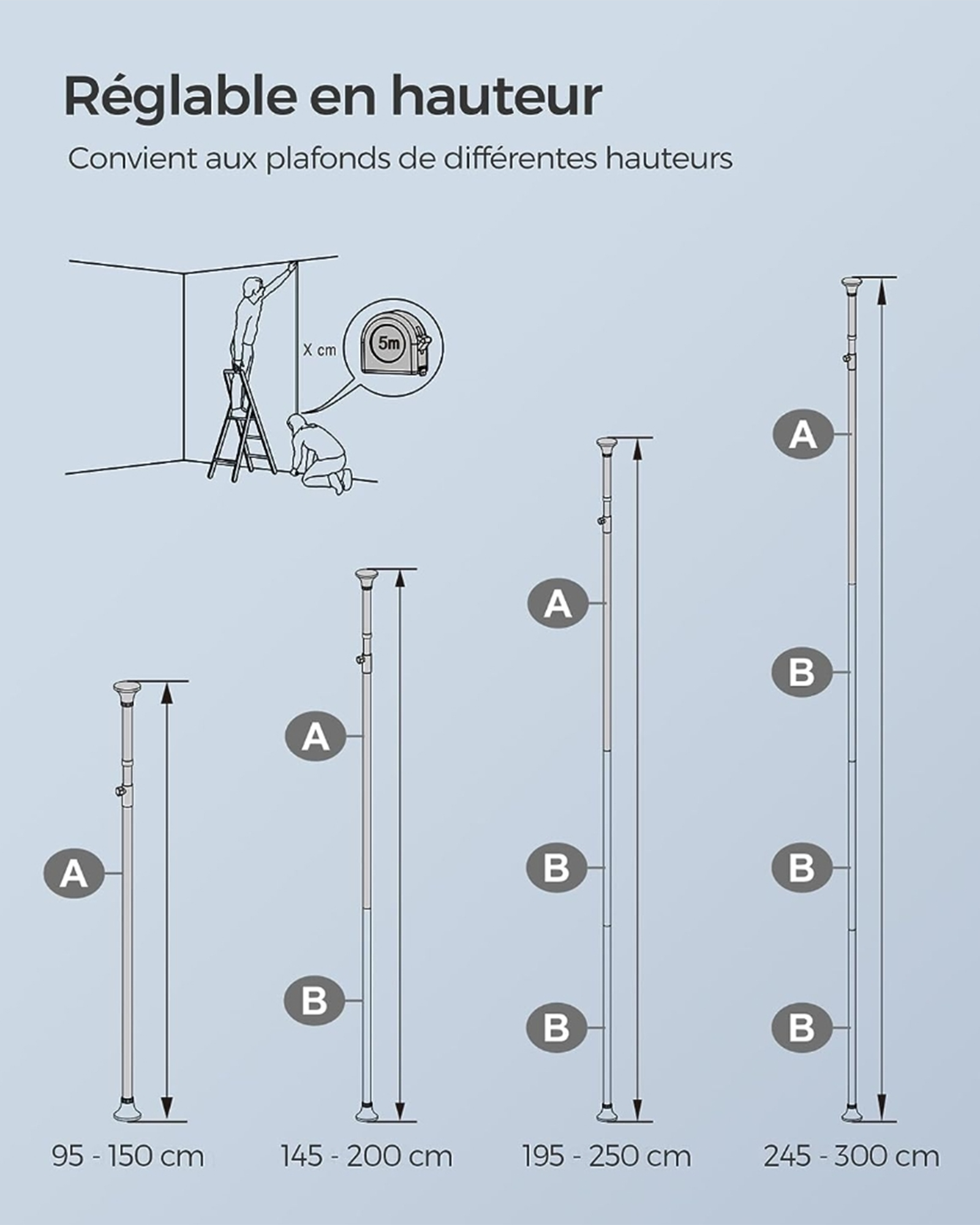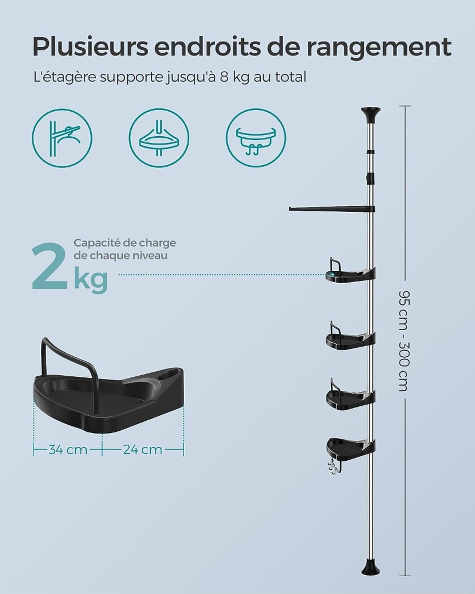 M?l: 24 x 34 x (95-300) cm (D x B x H)