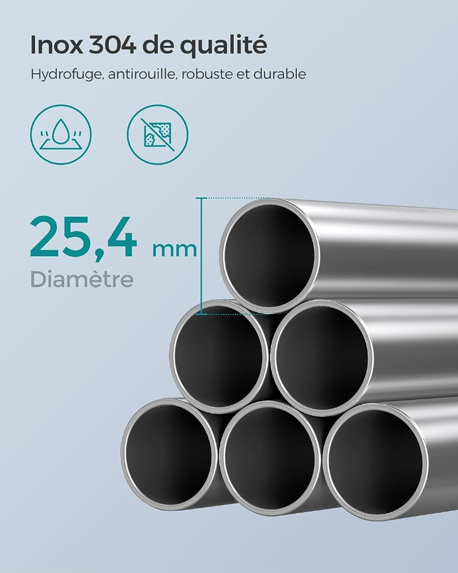 Materiale: Rustfrit st?l 304, PP-plast, ABS, PVC