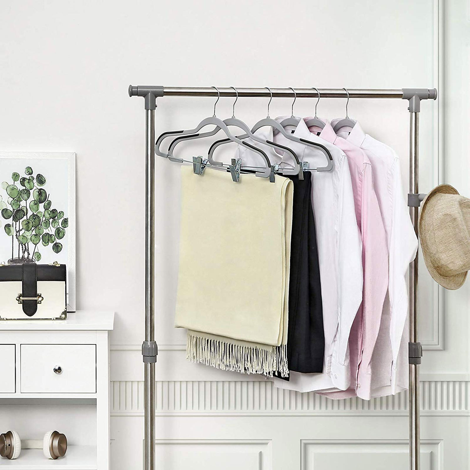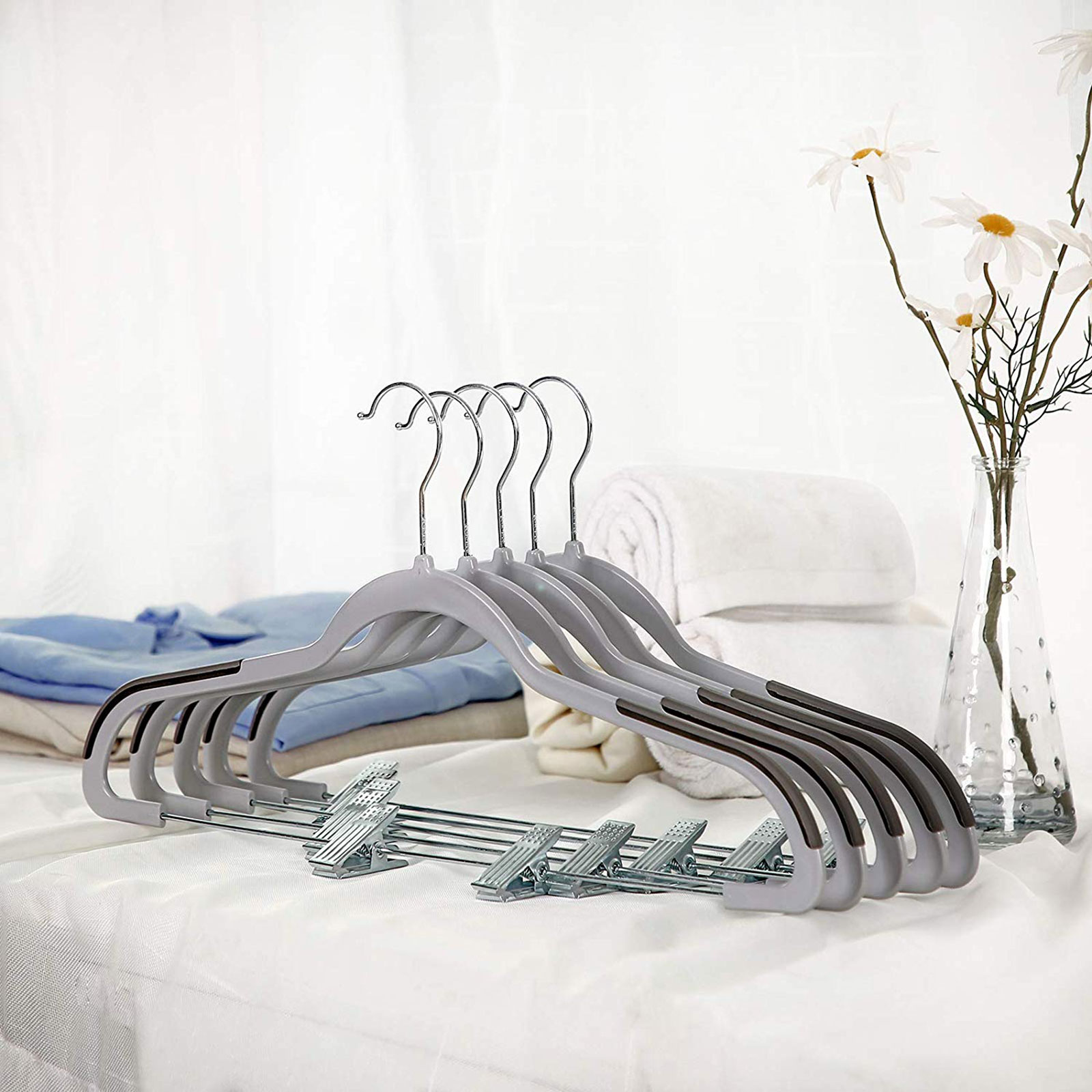Vi str?ber altid efter at tilbyde dig produkter af h?j kvalitet. Med disse forbedrede b?jler kan du h?nge dine jakker sammen med de passende bukser. Med dette lille tilbeh?r f?r du styr p? kaoset i garderoben, kl?deskabet og p? t?jstativet, s? du hurtigt kan finde det, du leder efter om morgenen.Dette SONGMICS b?jles?t i 2-i-1-design giver dig den perfekte l?sning til en problemfri organisering af dit t?j: Dine bukser eller nederdele samt de passende skjorter eller tr?jer er altid ordnet p? ?t sted, s? du altid har dem lige ved h?nden om morgenen. Lille trick, stor effekt! Holdbar og praktisk Kvalitet er dens styrke. Vores b?jler er fremstillet af robust ABS-plast og kan hver is?r b?re op til 2,5 kg, s? de uden problemer kan klare v?gten af dine skjorter, tr?jer osv. Takket v?re de justerbare klip passer ogs? nederdele, bukser, h?ndkl?der eller t?rkl?der i forskellige st?rrelser p? disse b?jler. De er desuden udstyret med gummi-p?s?tninger, s? du kan sige farvel til irriterende nedglidning! Derudover kan krogen drejes 360?, hvilket giver fleksibel anvendelse. S?dan sparer du plads til flere t?j Vil du redde din garderobe fra at blive oversv?mmet af t?jbjerge? Med vores tynde b?jler f?r du mere opbevaringsplads i kl?deskabet, s? du kan h?nge t?j, der f?r var stablet oven p? hinanden, op og give det mere luft til at ?nde.Produktdetaljer:Farve: gr?Materiale: ABS-plastM?l pr. b?jle: 42 x 23,5 x 0,5 cm (B x H x D)V?gt pr. b?jle: 94 gMaks. belastning pr. b?jle: 2,5 kgLeveringsomfang:12 x b?jlerSONGMICS Bem?rkninger:H?ng ikke for tunge t?jstykker p? b?jlerne.Brug ikke b?jlerne i en b?rbar t?rretumbler.