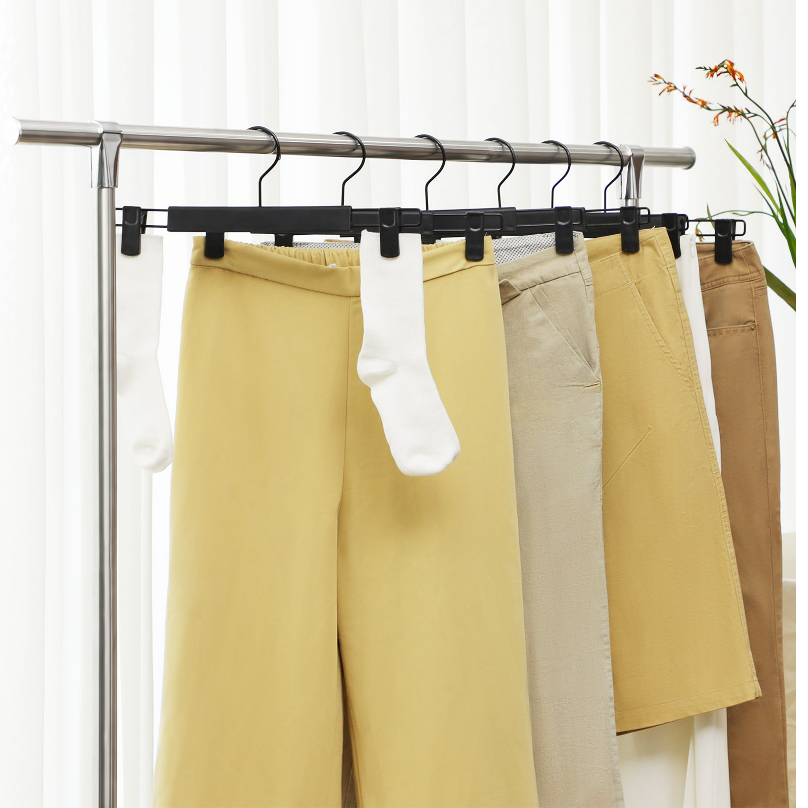 SONGMICS buksestativ, 12 stk. s?t, b?jler, god belastbarhed, med klips, nederdelstativ af premium-plast, pladsbesparende, 360? drejelig krog, 35 cm lang, sort CRP02BK12