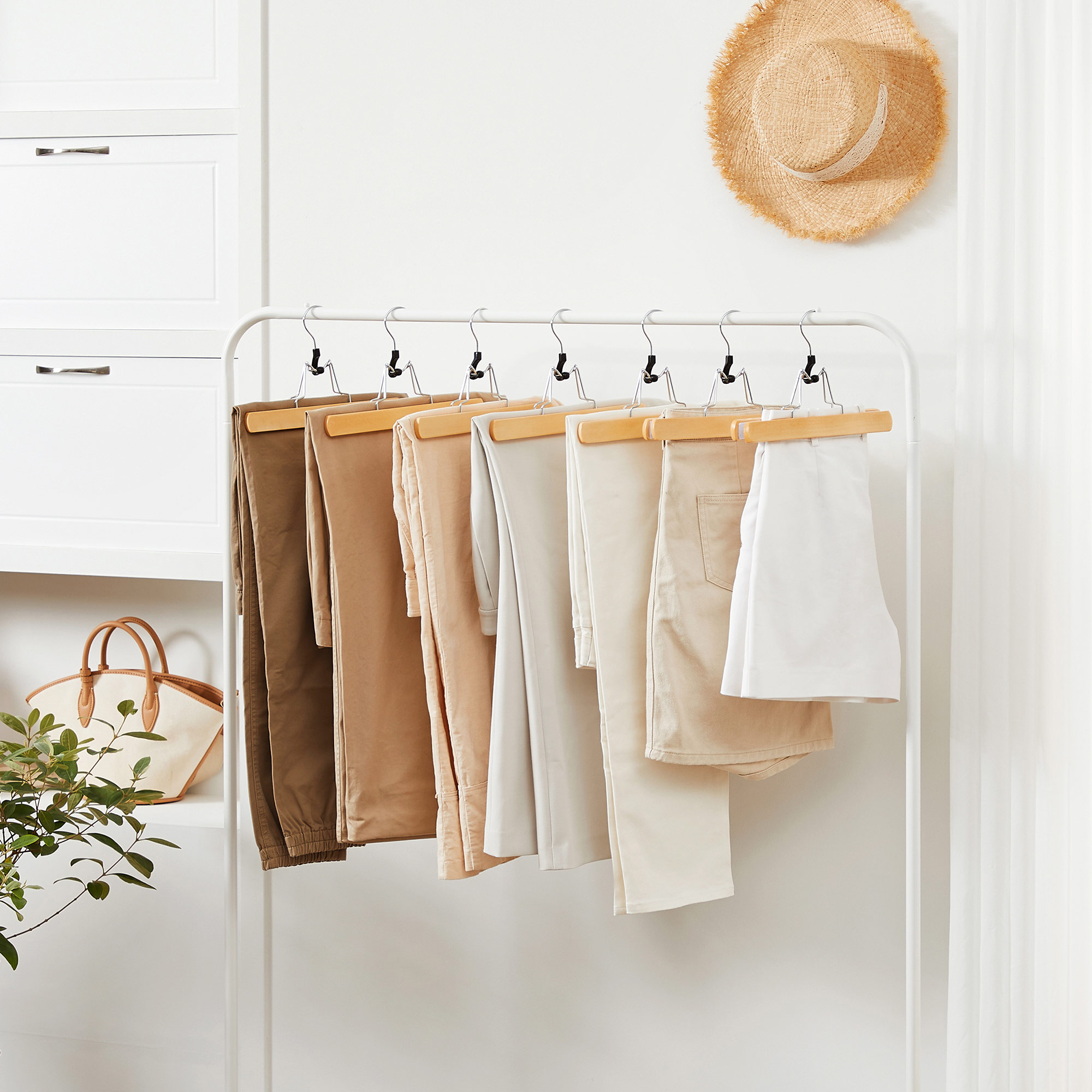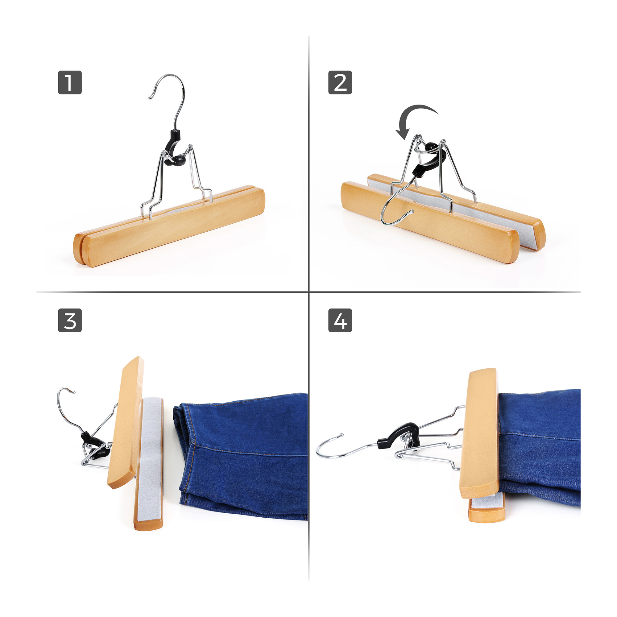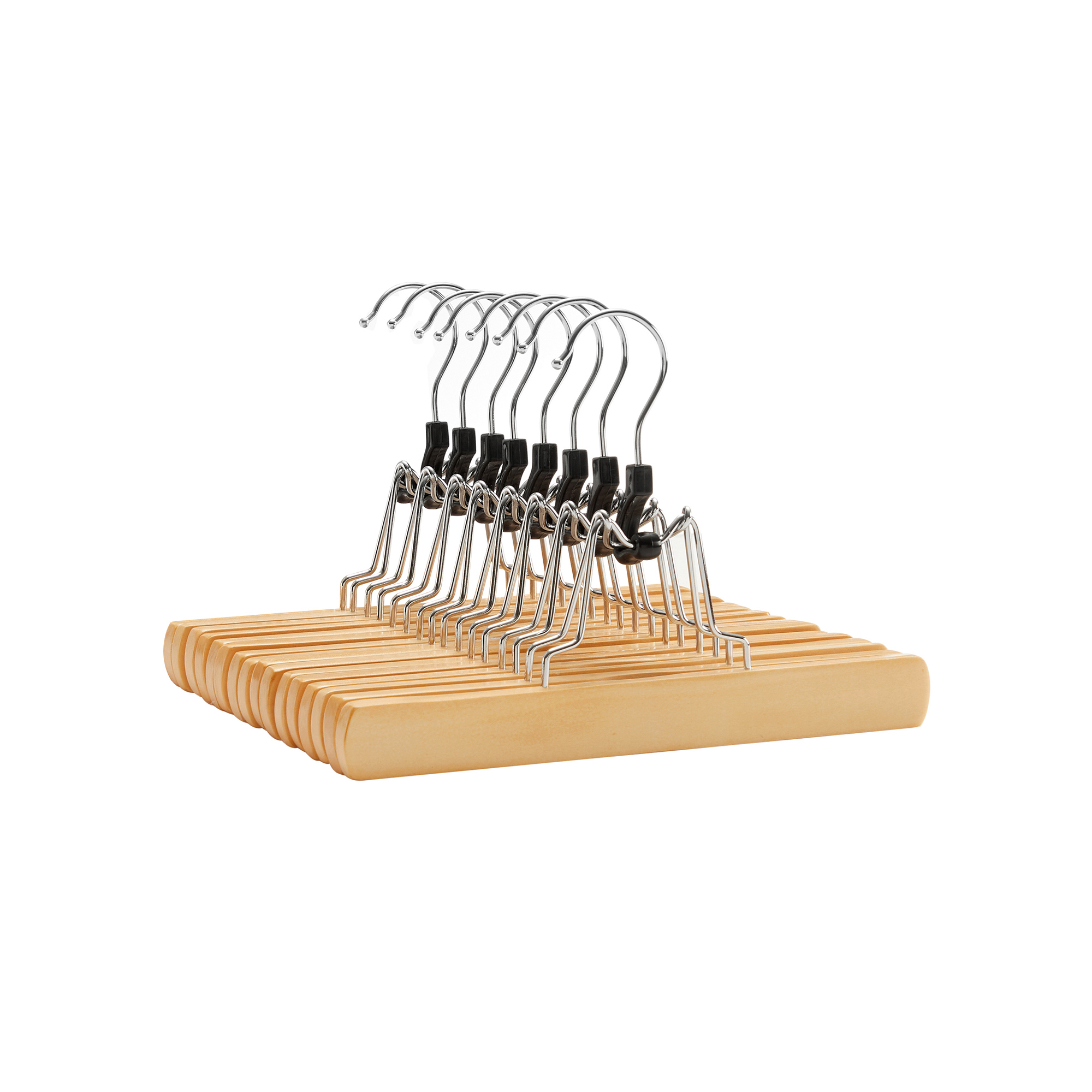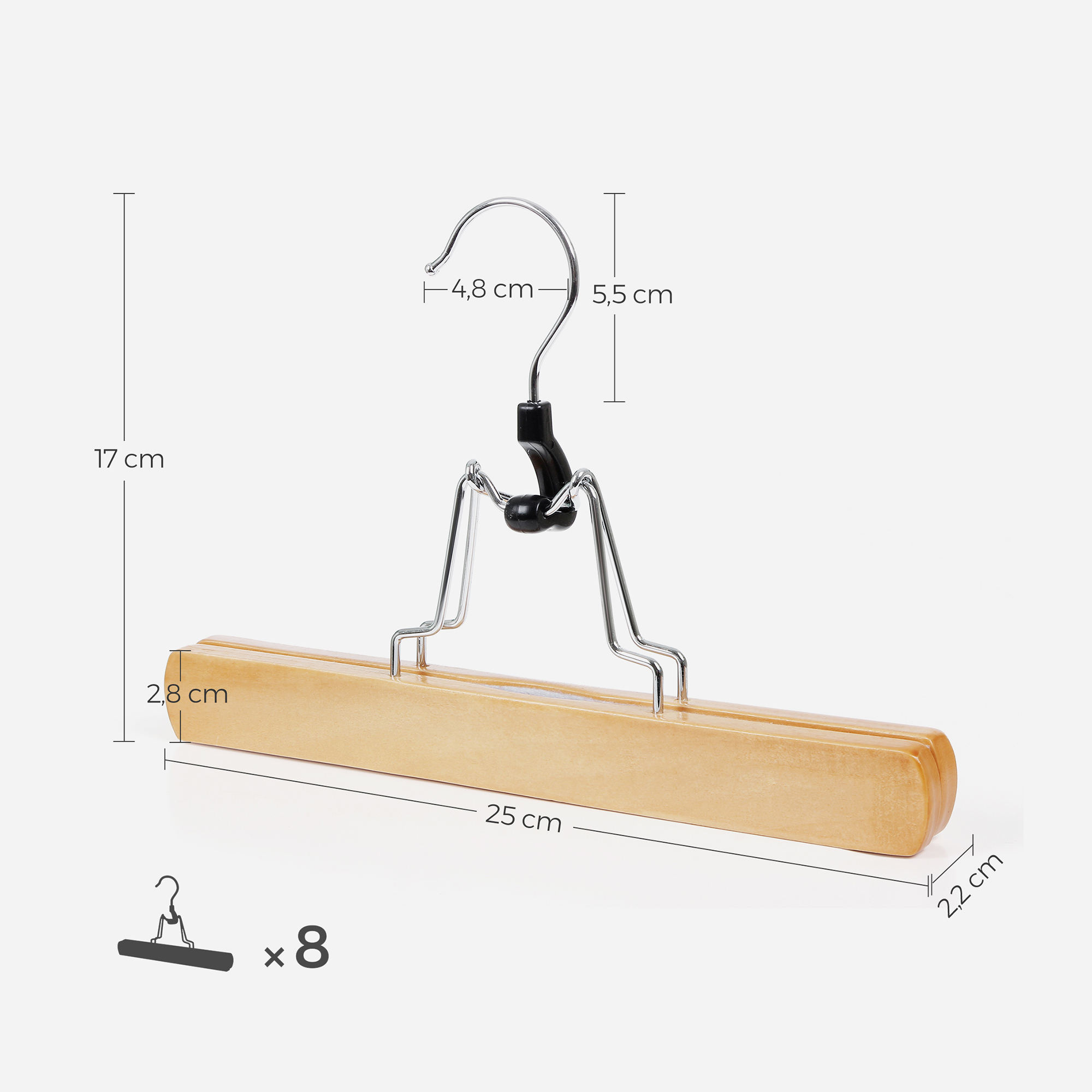 Produktdetaljer: Farve: Naturfarver Materiale: Massivt tr?, filt, ABS-plast, forkromet metal St?rrelse pr. b?jle: 25 x 2,2 x 17 cm (L x B x H) Samlet v?gt: 1,1 kg Maks. statisk belastning pr. b?jle: 2 kg Leveringsomfang: 8 x buksestativ SONGMICS Bem?rkninger:Brug ikke b?jlerne i l?ngere tid i omgivelser med h?j temperatur eller h?j luftfugtighed for at undg? skader s?som lakafskalning. H?ng ikke v?dt t?j p? b?jlerne.