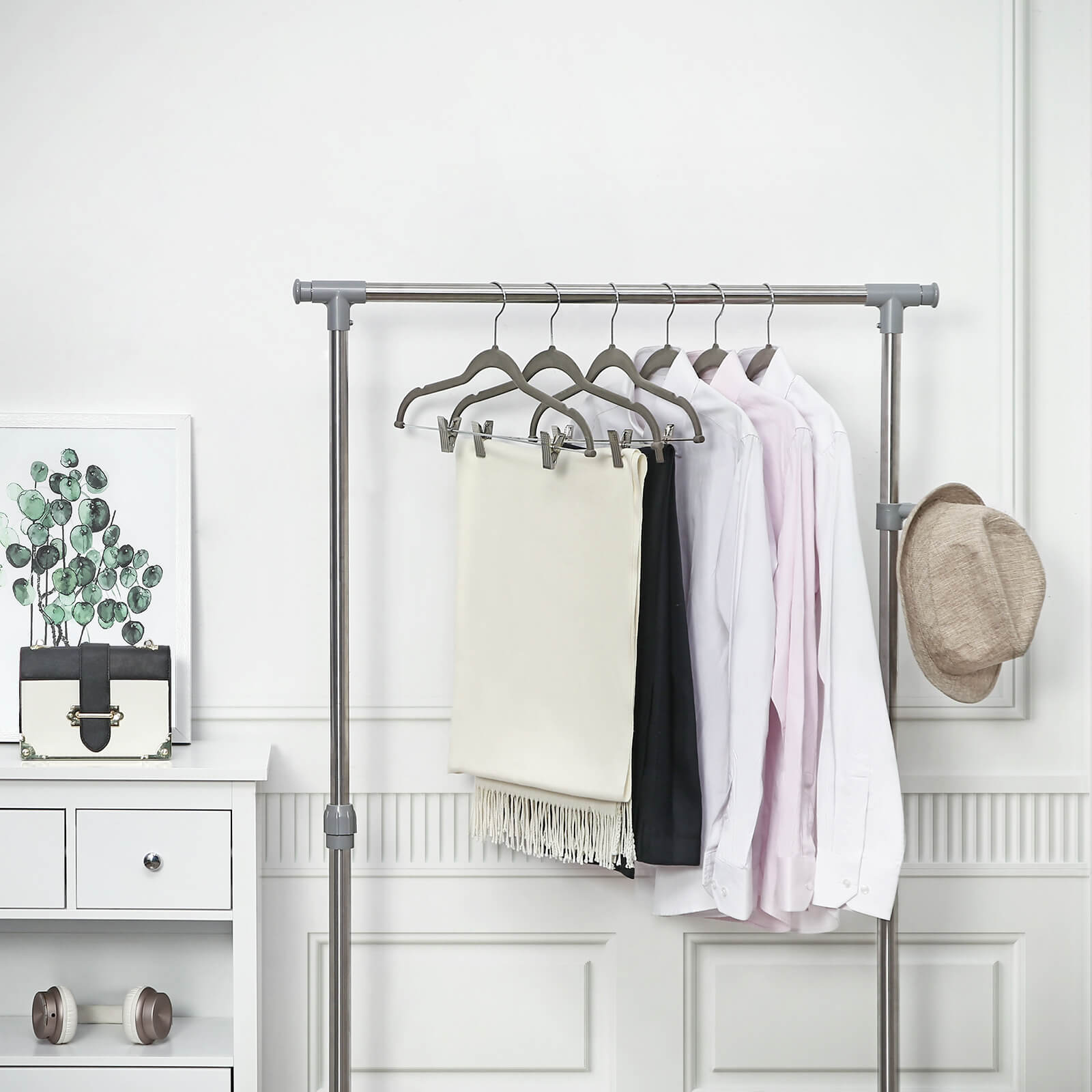 SONGMICS 30 stk. buksestativ b?jler velour med strop og klips jakkeb?jler tynde, skridsikre, pladsbesparende 360? drejelige kroge til jakkes?t skjorter jakker frakker 42,5 cm gr? CRF12V-30