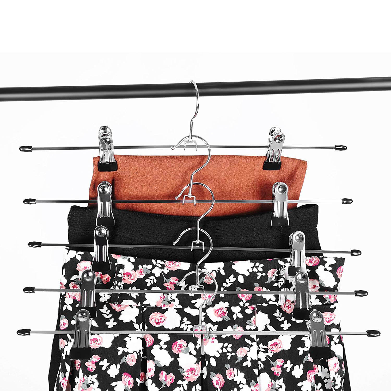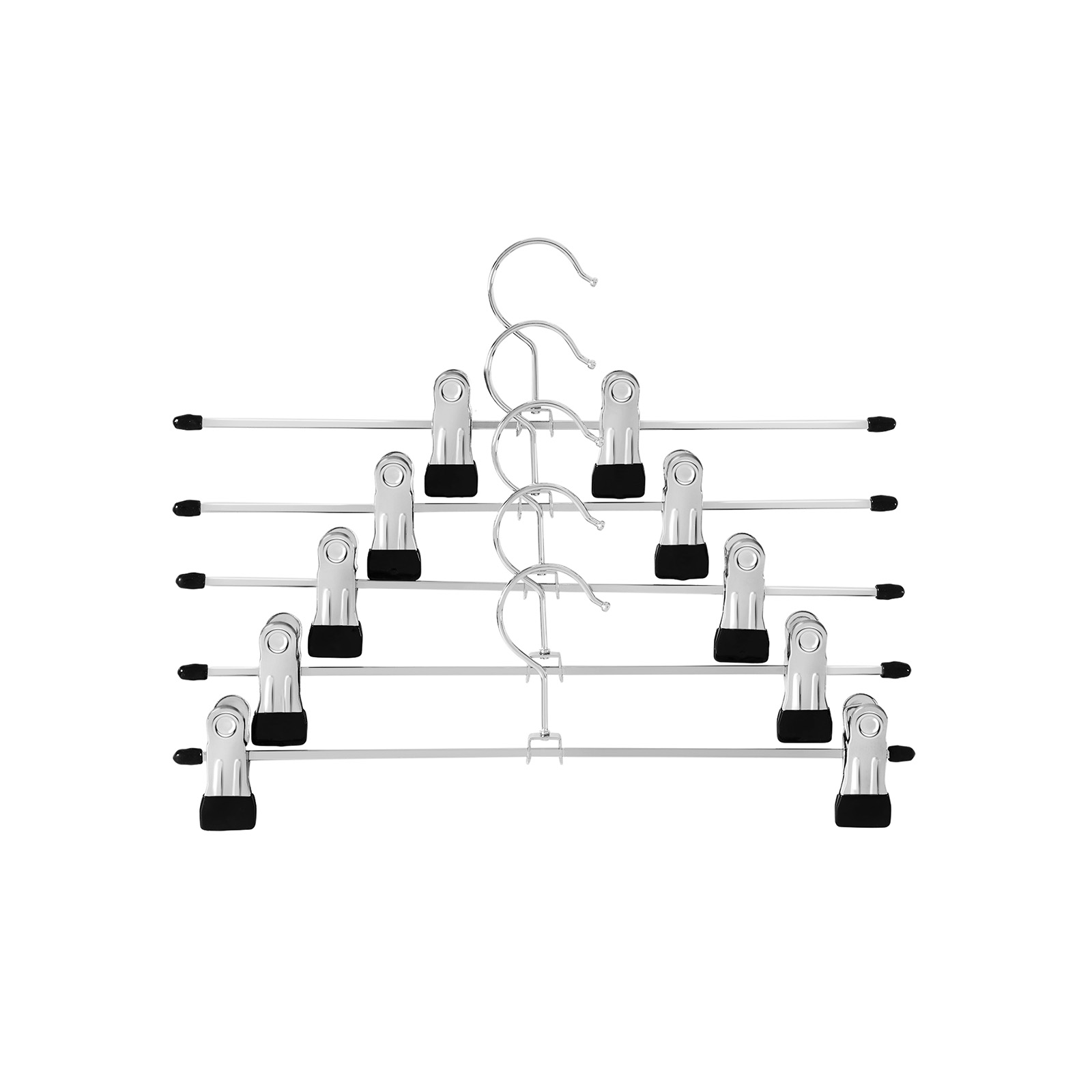 Er du altid irriteret over bukser og nederdele, der ligger og flyder overalt? Med Songmics-klipsb?jlerne kan du h?nge dem op uden folder og med den rigtige form. S? er der overskuelig orden i skabet. De flytbare klips sidder godt fast og kan derfor klipses fast hvor som helst p? linningen. Takket v?re gummibel?gningen p? klemmerne falder t?jet ikke ned, og der dannes ingen m?rker p? stoffet, s? det ikke bliver beskadiget. Der er ogs? beskyttelseskapper i siderne, s? der ikke er nogen spidse/skarpe kanter, og alt er “sikkert”. Songmics b?jle med klemmeholdere bliver helt sikkert din families “dygtige assistent”. Produktdetaljer: – Materiale: forkromet metal med PVC-bel?gning – Farve: s?lvfarvet – M?l: 40 x 10,5 cm (H x B) – Bruttov?gt: 1,25 kg Leveringsomfang: – 20 x klemmeb?jler Bem?rk: – Undg? at opbevare klemmeb?jlerne i rum med h?j luftfugtighed og temperatur. Reng?r overfladen ved blot at t?rre den af med en let fugtig klud.