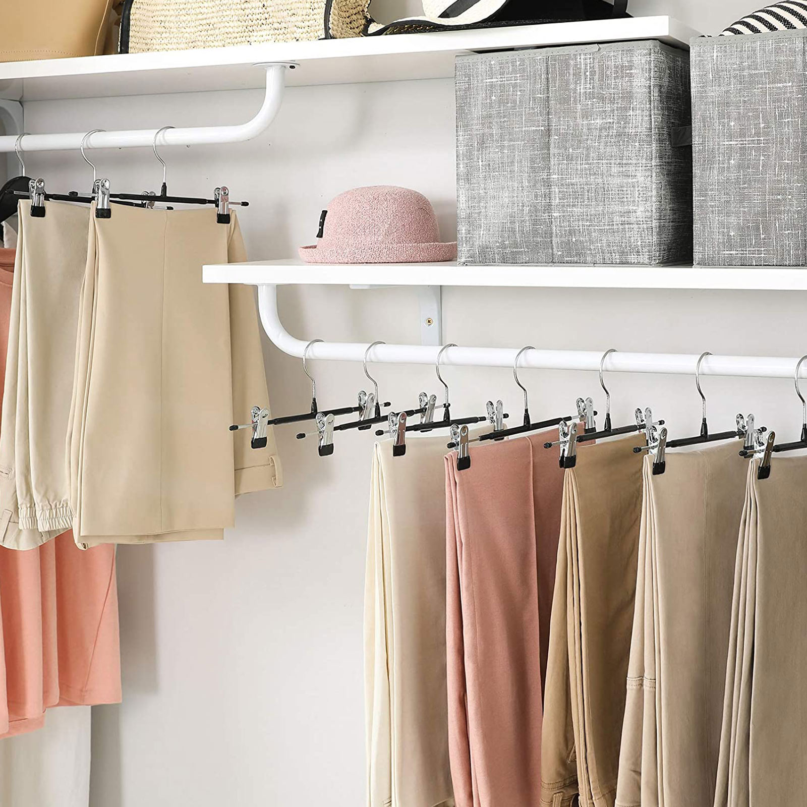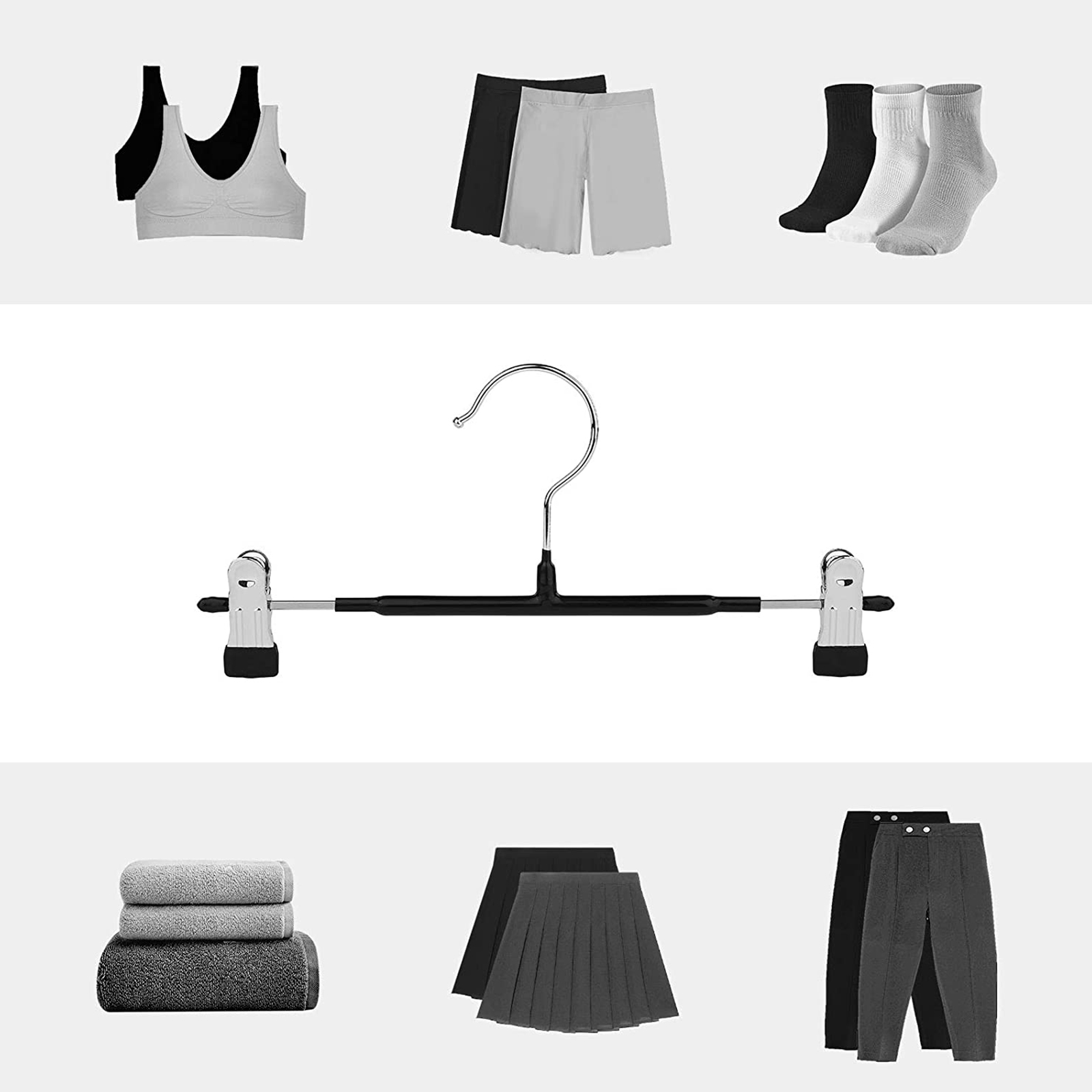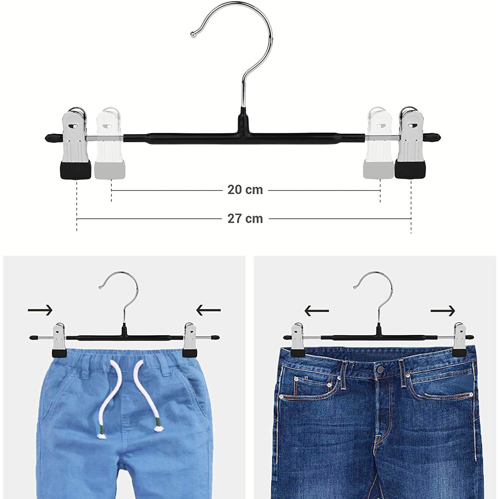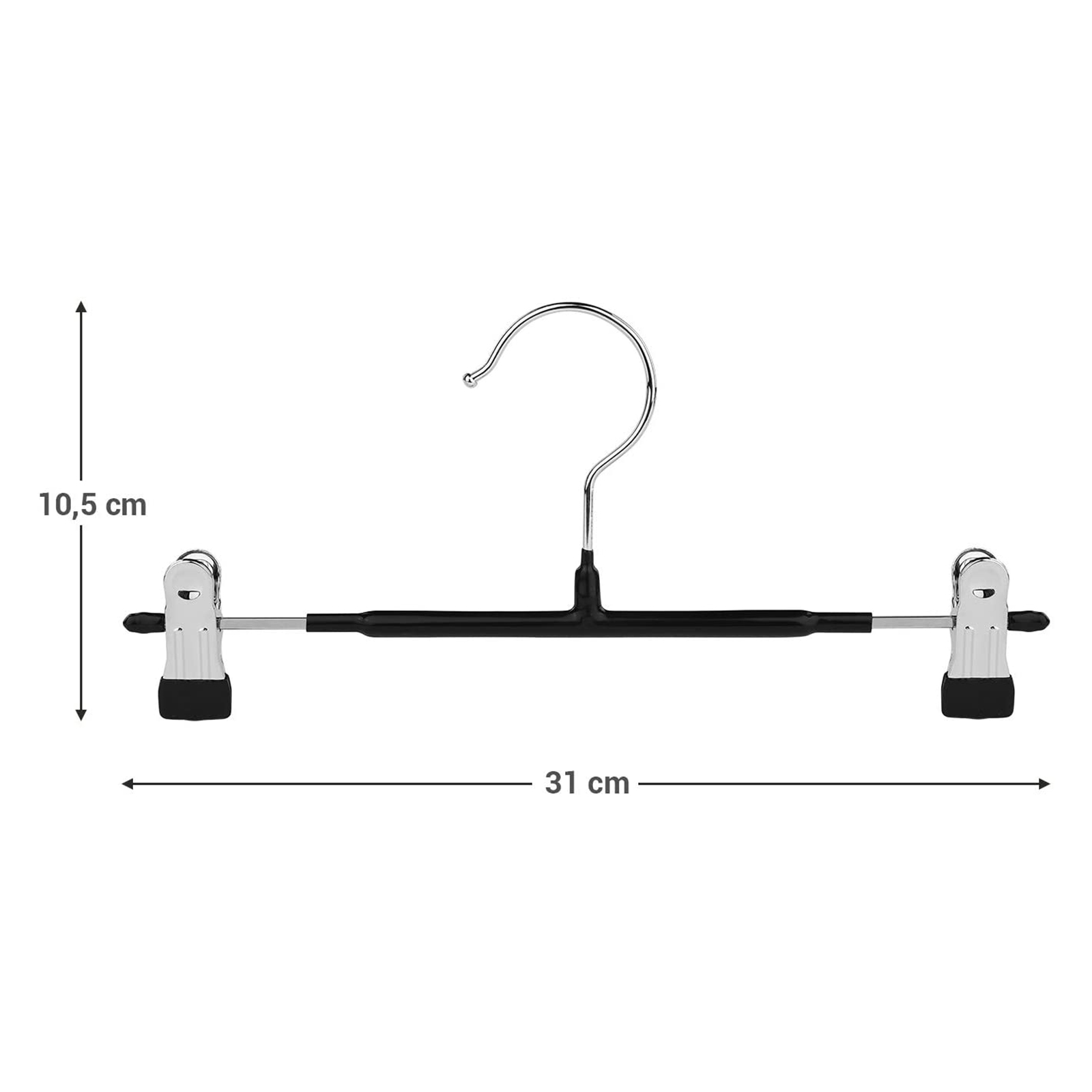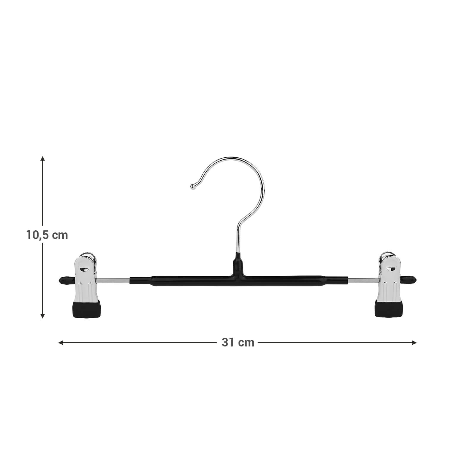 SONGMICS buksestativ i metal, b?jler, s?t med 20 stk., til nederdele og bukser, med skridsikre klemmer, 31 cm, PVC-bel?gning, h?j belastbarhed, forkromet, s?lv-sort CRI002B01