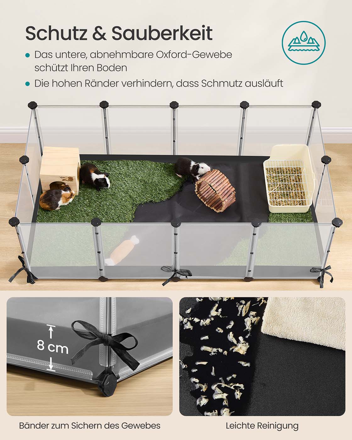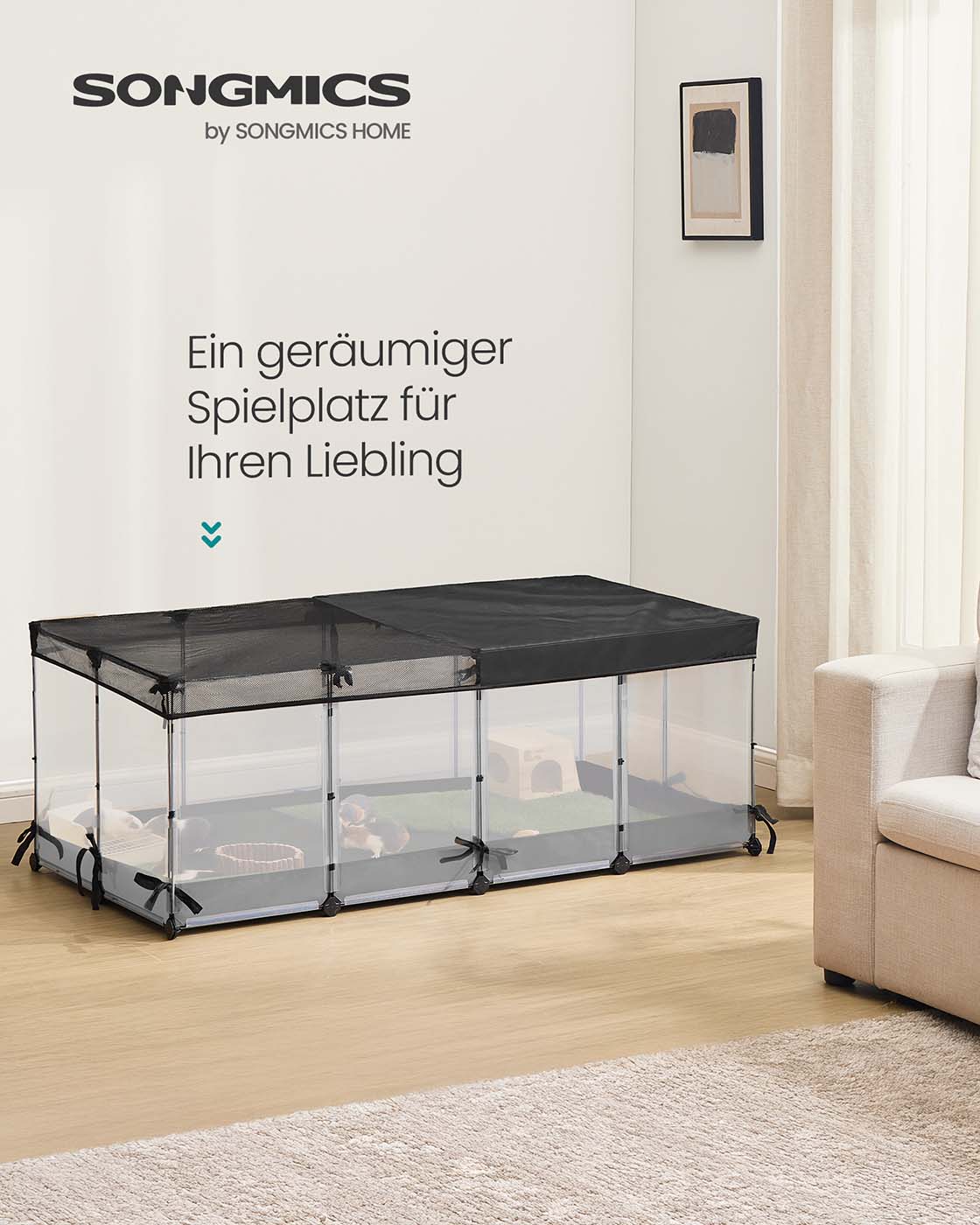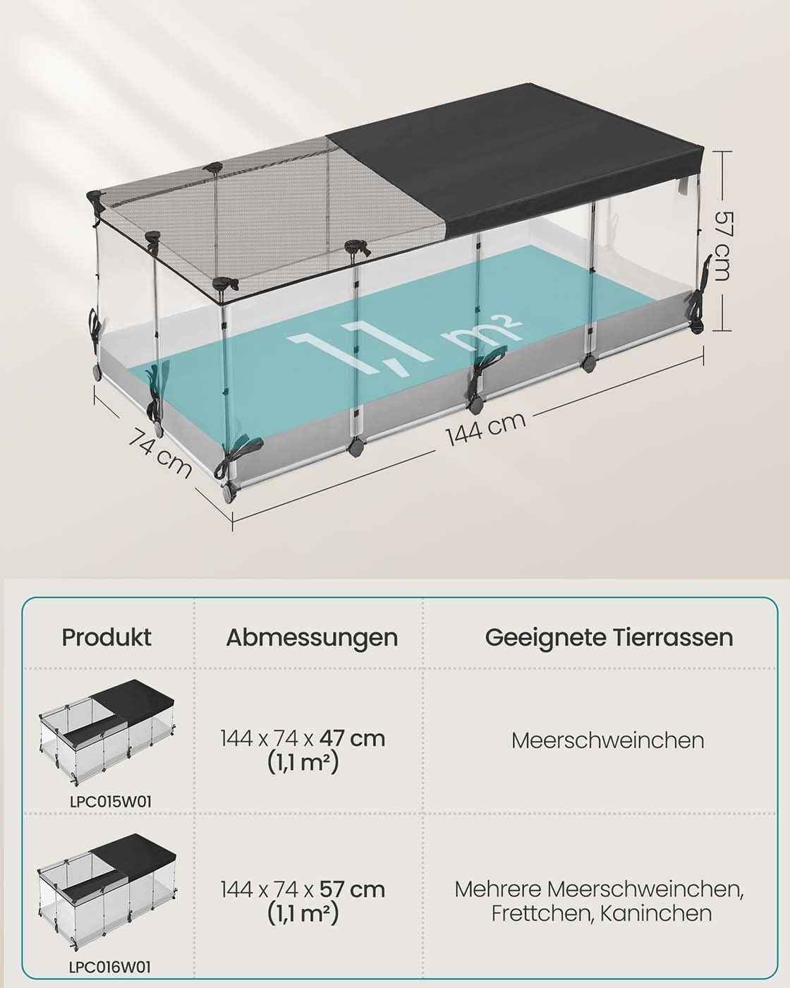 SONGMICS bur til sm? dyr, halvgennemsigtige plader, ?ndbart, vandafvisende stof i bunden, kaninbur indvendigt, marsvinbur, frittebur, 144 x 74 x 47 cm, skyhvid LPC015W01