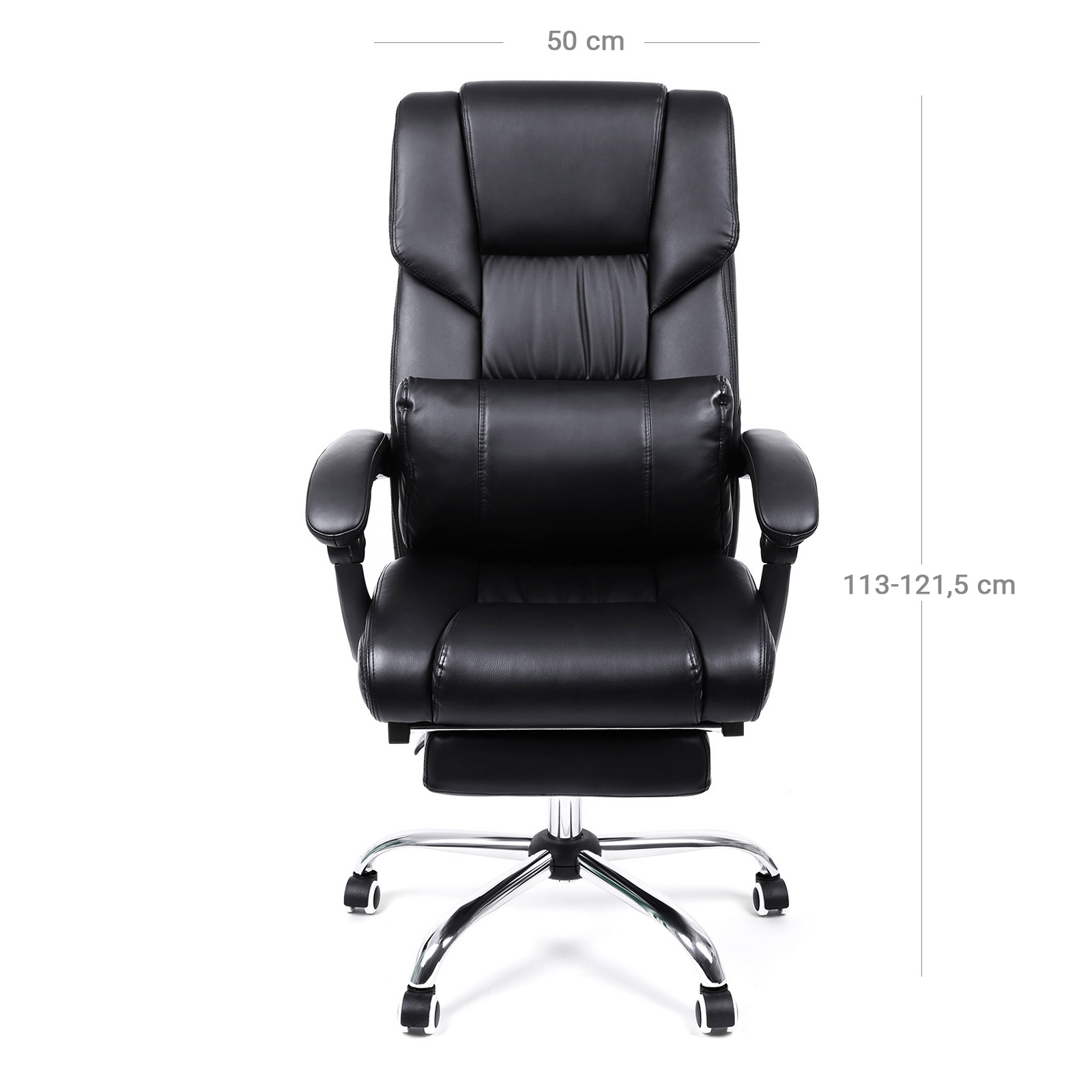 Songmics er altid kundeorienteret og g?r sit yderste for at tilbyde produkter af h?j kvalitet til en god pris. Baseret p? kundernes feedback har vi l?bende forbedret produktet i henhold til kundernes behov for at optimere det. F?lgende dele af alle Songmics-kontorstole er forbedret: – Arml?nene, rullerne, vippemekanismen og gasfjederen er alle forbedret og kommer fra fremragende leverand?rer, hvilket garanterer kvaliteten. – Bekl?dningen p? alle dele er ligesom s?det lavet af slidst?rkt PU, og den ubehagelige lugt er effektivt reduceret. – Polstringen er lavet af h?jdensitets skum, som ikke let deformeres, hvilket giver optimal siddekomfort. – Tilbeh?r s?som skruer er i en gennemsigtig plastemballage og nummereret, hvilket effektivt reducerer risikoen for at miste eller blande dem. – De anvendte skruer er forsynet med gevindsikringer, s? de ikke let l?sner sig efter l?ngere tids brug. – De monterede ruller er af h?j kvalitet i PU og k?rer meget roligt. Der medf?lger desuden 2 ekstra ruller. – Der medf?lger en ekstra skrue af hver type skruer. Dette sikrer p?lidelig brug. Produktdetaljer: – Total h?jde: ca. 116 – 126 cm – Rygl?nsh?jde: ca. 75 cm – S?deh?jde: ca. 52 – 61 cm – Stolens bredde: 66,5 cm – Arml?nsh?jde: ca. 68 – 78 cm – Materiale: PU + skum + st?l + nylon Leveringsomfang: – 1 x kontorstol med fodst?tte – 1 x l?ndepude – 1 x vejledning (tysk, engelsk, fransk, italiensk, spansk) – 1 x beslagspose Bem?rk: – N?r du samler st?ttedelen, skal du v?re opm?rksom p?, at siden med m?rket “Front” skal vende fremad.