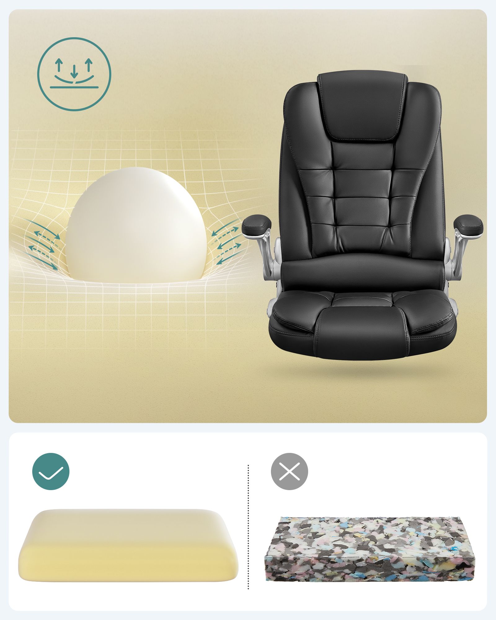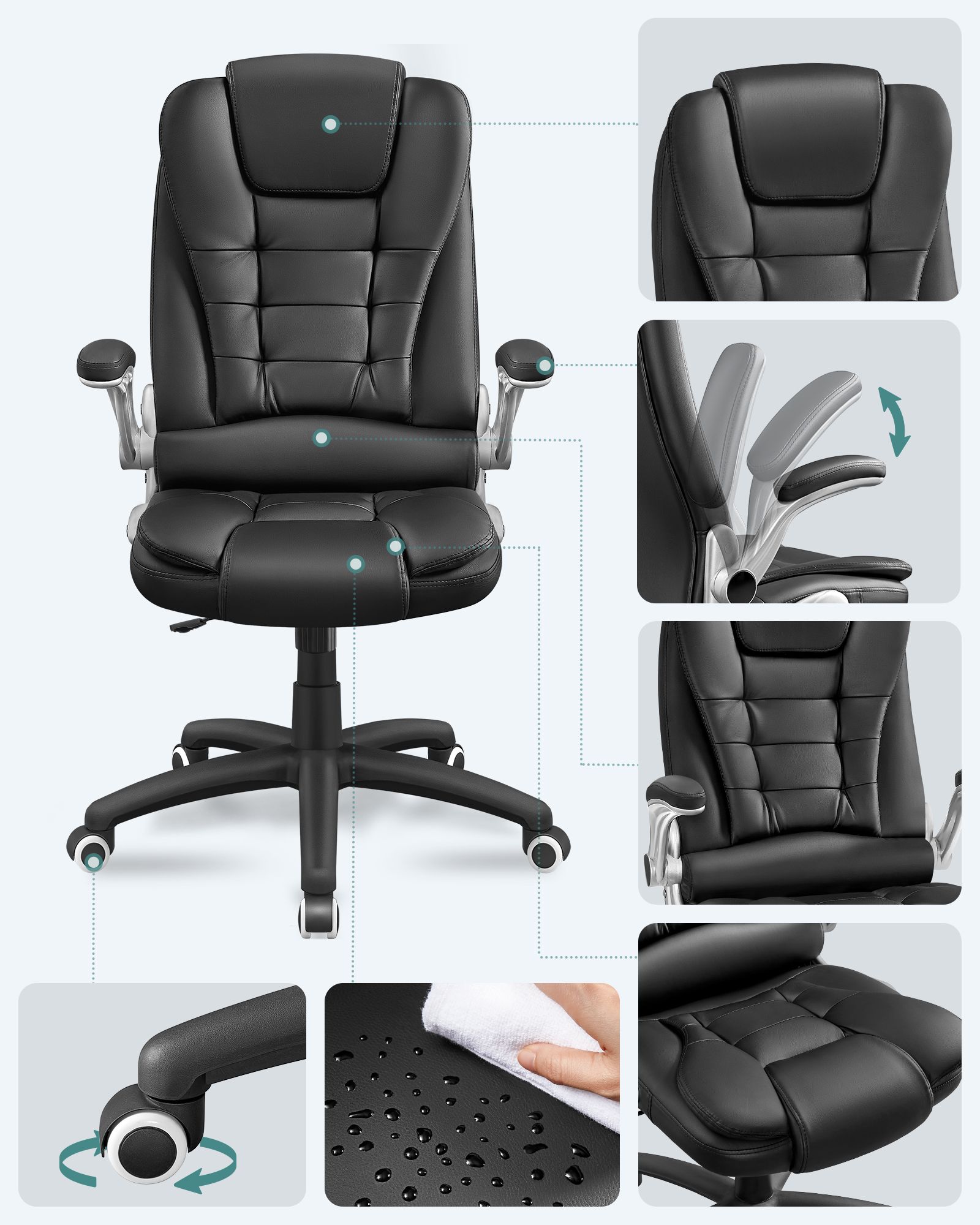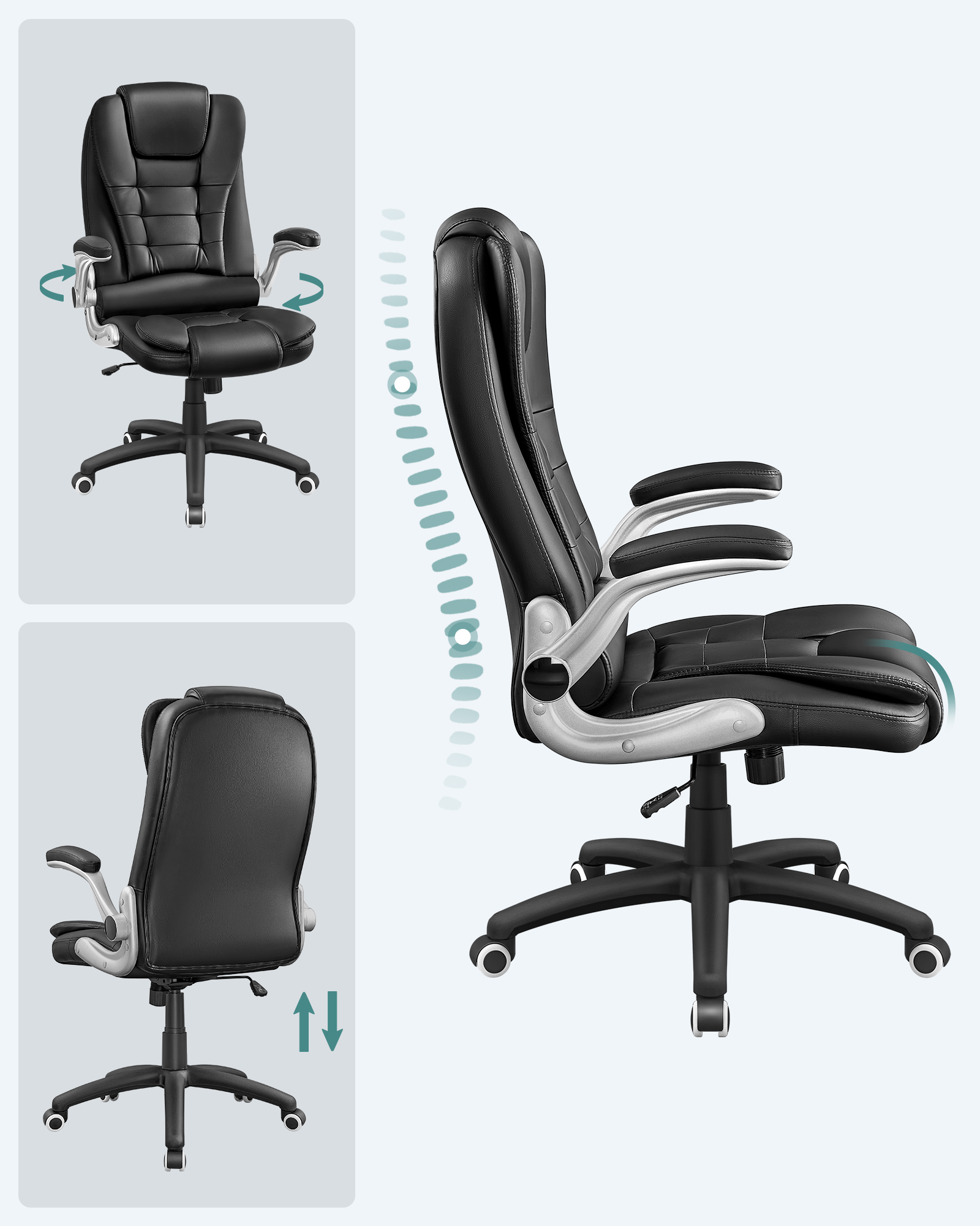 Produktdetaljer: – Total h?jde: 112 – 122 cm – Rygl?nsh?jde: 76 cm – S?deflade: 54 x 51 cm (B x D ) – S?deh?jde: 45 – 55 cm – Materiale: PU + skum + st?l + nylon Leveringsomfang: – 1 x kontorstol – 1 x tilbeh?rspakke – 1 x vejledning (tysk, engelsk, fransk, italiensk, spansk) SONGMICS BEM?RKNINGER: – Bem?rk, at p?skriften “Front” p? s?demekanismen skal vende fremad under montering.