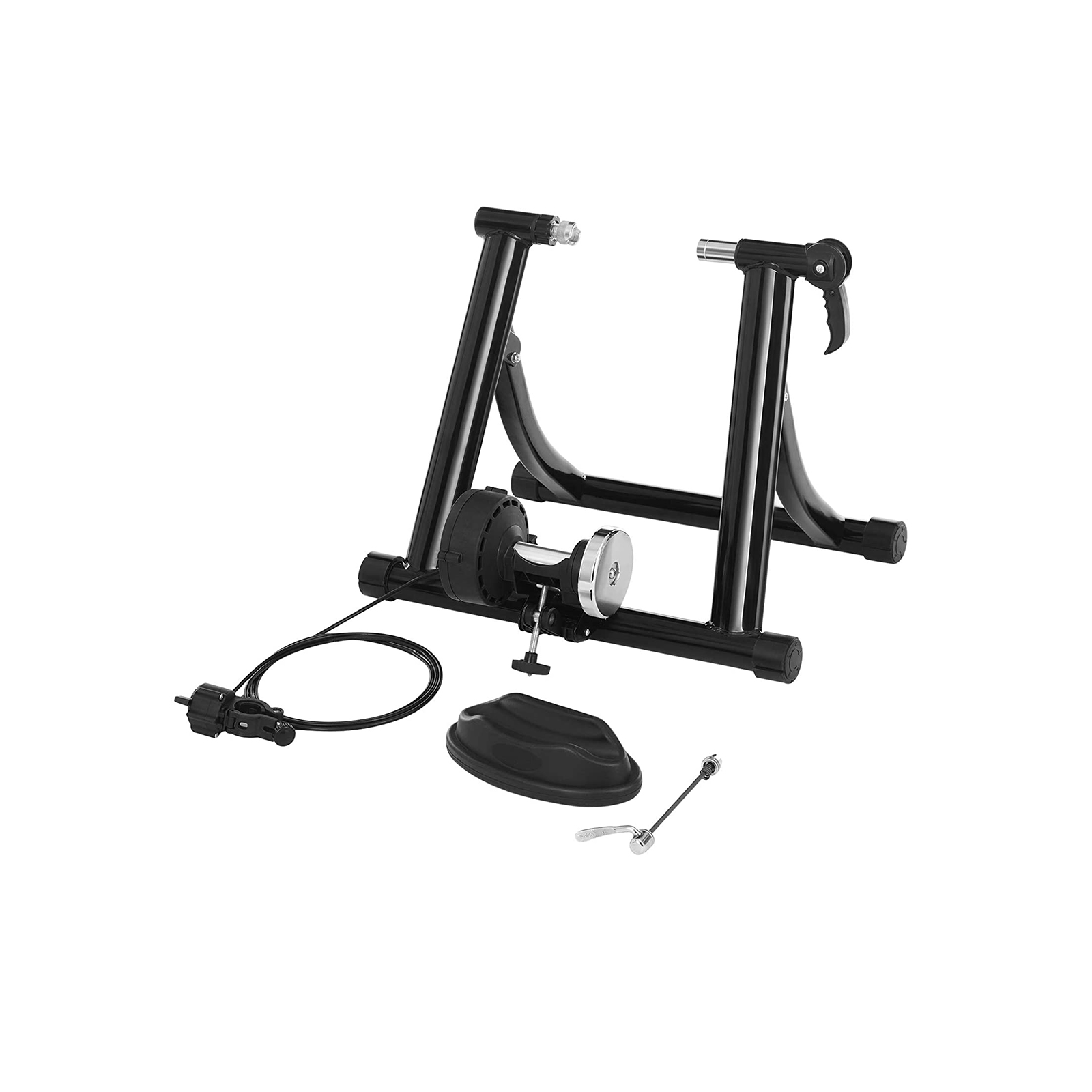 Bekymr dig ikke om vejret. Bestem selv din tr?ning. Du st?r op hver morgen med et klart m?l for ?je: I dag vil jeg give mit bedste. Du kl?der dig p? og ?bner hovedd?ren, men ser tordenskyer p? himlen, vandpytter p? gaden og den piskende regn.”Heldigvis…”, siger du, “har jeg en ruller!” Du er en af de kloge. Regn og d?rligt vejr vil ikke st? i vejen for din vej til fitness og sundhed. Du mestrer dagen, uanset hvilke vanskeligheder du m?der. Din racercykel monteres p? rullerne i enkle trin. Med de 6 justerbare modstandsniveauer kan du simulere forskellige sv?rhedsgrader i din stue, som om du k?rer p? en cykelsti eller en landevej. Den letl?bende mekanisme muligg?r en stille tr?ning uden at forstyrre din familie eller naboer. Den medf?lgende forhjulsst?tte holder desuden din cykel stabil. Med denne rulleskive fra SONGMICS er din tr?ning ikke l?ngere afh?ngig af vejret, men af dig selv! Produktdetaljer: Farve: Sort Materiale: St?l St?rrelse p? udfoldet produkt: 50 x 40 x 42 cm (L x B x H) St?rrelse p? sammenfoldet produkt: 50 x 14 x 42 cm (L x B x H)V?gt: 7,5 kgMaks. statisk belastning: 100 kgLeveringsomfang:1 x indend?rs rulleskive1 x forhjulsst?tte1 x justerbar modstandskontakt1 x hurtigsp?nder1 x vejledning (DE, EN, ES, FR, IT)SONGMICS Bem?rkninger:F?r brug skal du sikre dig, at din cykel er fastgjort stabilt p? tr?neren. Undg? under tr?ning at r?re ved cykelens d?k eller tr?nerens modstandshjul. Slip aldrig cykelstyret under tr?ning. Af sikkerhedsm?ssige ?rsager skal rulleren holdes v?k fra b?rn og k?ledyr.