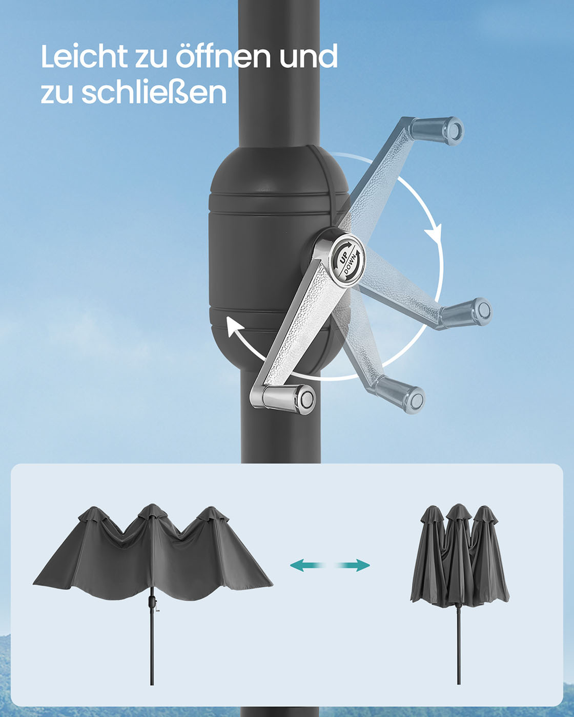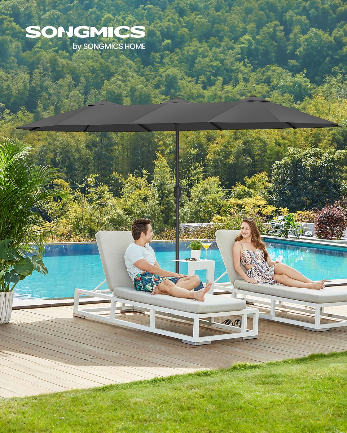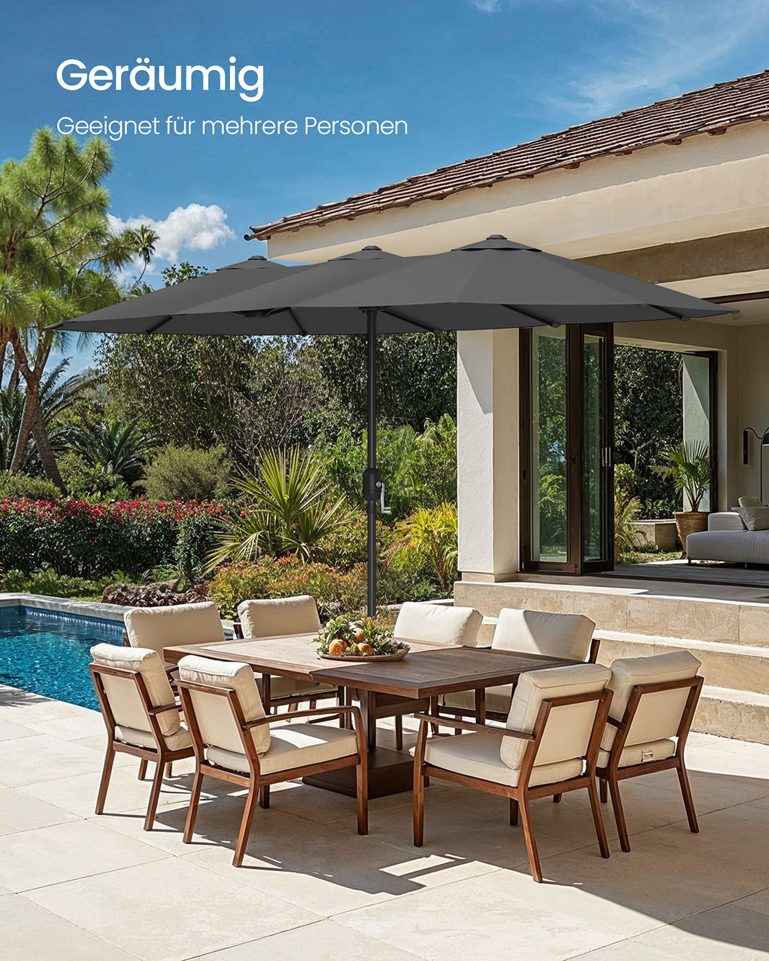 SONGMICS dobbelt parasol 394 x 200 cm, ekstra stor parasol, haveparasol, UV-beskyttelse op til UPF 50+, terrasseparasol, med h?ndsving, have, altan, udend?rs, uden stativ, beige GPU037L01
