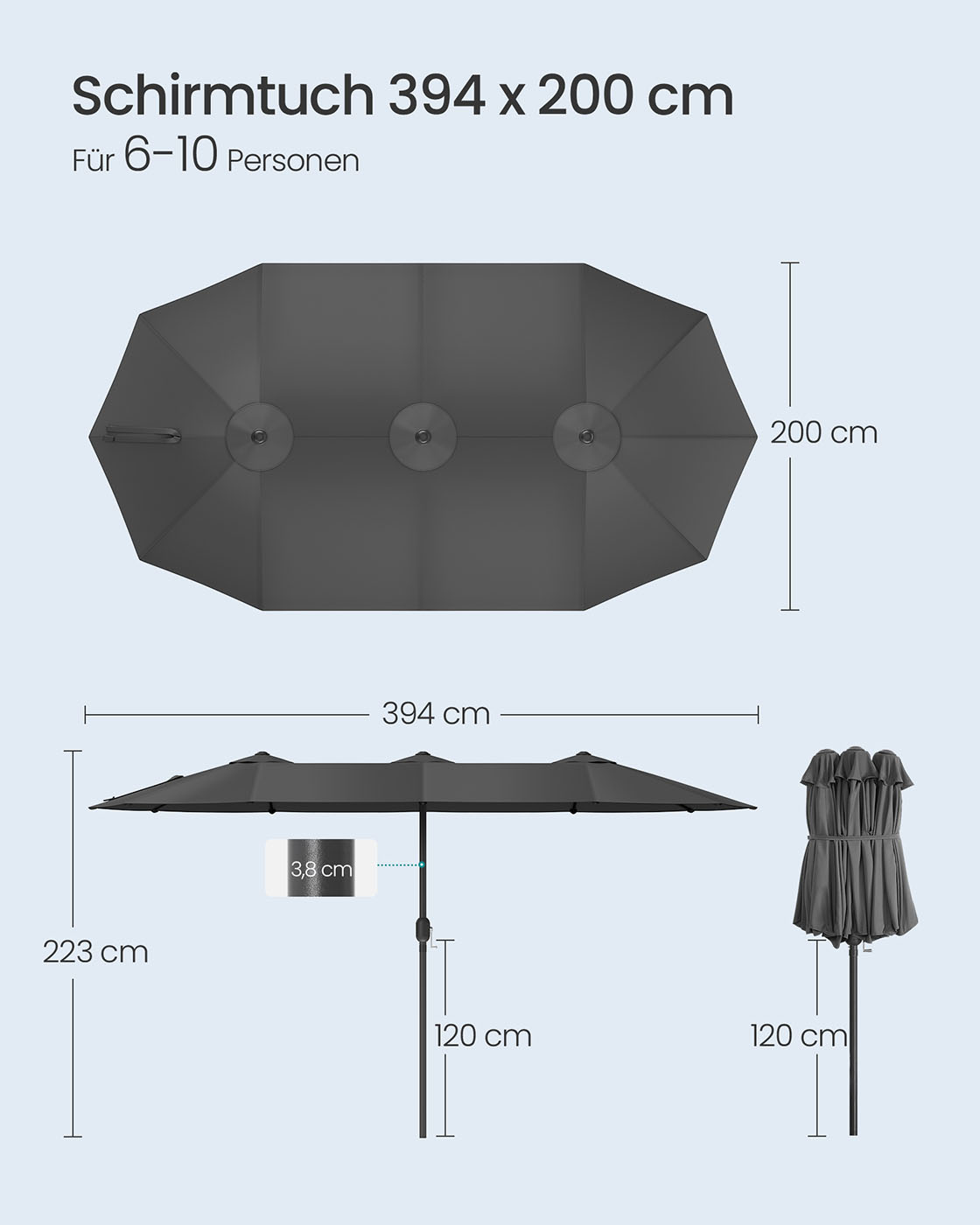 St?rrelse p? parasoldug: 394 x 200 cm (L x B)