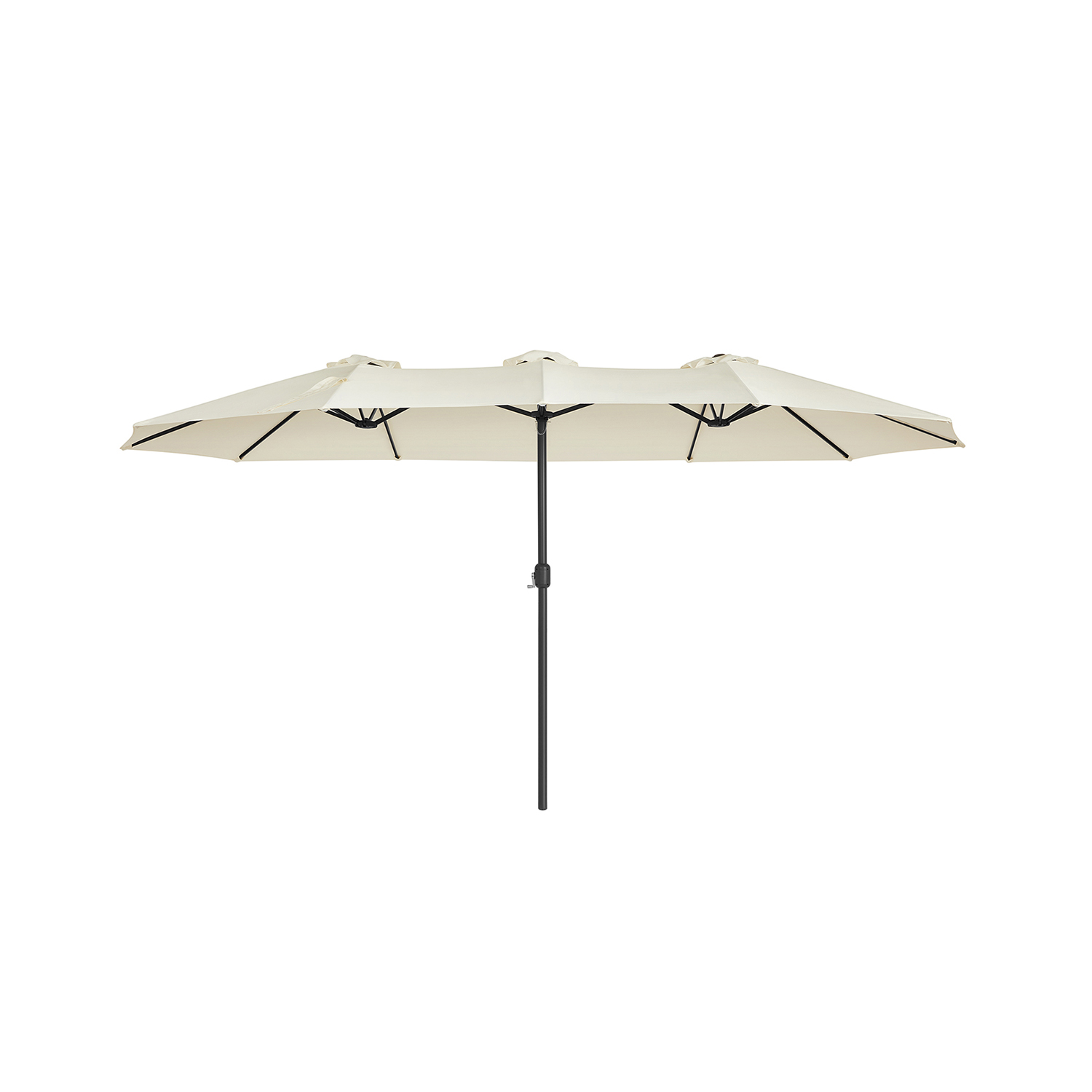 Er du p? udkig efter en ekstra stor parasol, der kan give stor skygge p? terrassen? S? er denne 460 x 270 cm store dobbeltparasol fra SONGMICS lige noget for dig. Hermed skaber du et sandt paradis i den k?lige skygge for din familie! Slap af p? altanen! H?jdepunkterne ved denne dobbelte parasol fra SONGMICS: Ekstra stort parasolt?ppe (460 x 270 cm); giver stor skygge UV-beskyttelse op til UPF 50+; optimal beskyttelse mod UV-str?ler Robust parasolmast af ? 48 mm metalst?nger 12 parasolribber af metal; giver parasollen et st?rkt hold Parasolduge af 180 g/m? polyester; lover lang levetid Nem ?bning og lukning af parasollen ved hj?lp af den praktiske h?ndsving Du kan nemt skrue den ?verste stang p? parasolstangen sammen med den nederste stang Intet v?rkt?j n?dvendigt; ops?tningen tager kun f? minutter Produktdetaljer:Farve: Beige Materiale: Parasolstang og parasolribber af metal, 180 g/m? polyester H?jde: 245 cm St?rrelse p? parasoldug: 460 x 270 cm (L x B) ? parasolstang: 48 mm V?gt: 12,1 kg Leveringsomfang: 1 x parasol 1 x vejledning SONGICs bem?rkninger:Der medf?lger ikke en parasolfod. Vi anbefaler at bruge en parasolfod, der vejer over 50 kg. ?bn ikke parasollen med magt, men forsigtigt og langsomt. Reng?r parasoldugen med en bl?d klud fugtet med et neutralt reng?ringsmiddel. Opbevar produktet p? et t?rt, godt ventileret sted, men f?rst n?r parasolduken er helt t?r. Luk parasollen p? bl?sende dage for at undg? skader. Hold produktet v?k fra ildkilder; beskyt det desuden mod ekstrem kulde eller varme og andre vejrforhold som f.eks. regn, vind, sne, hagl osv.