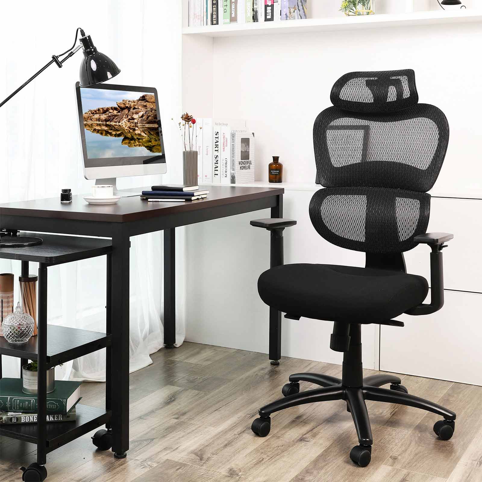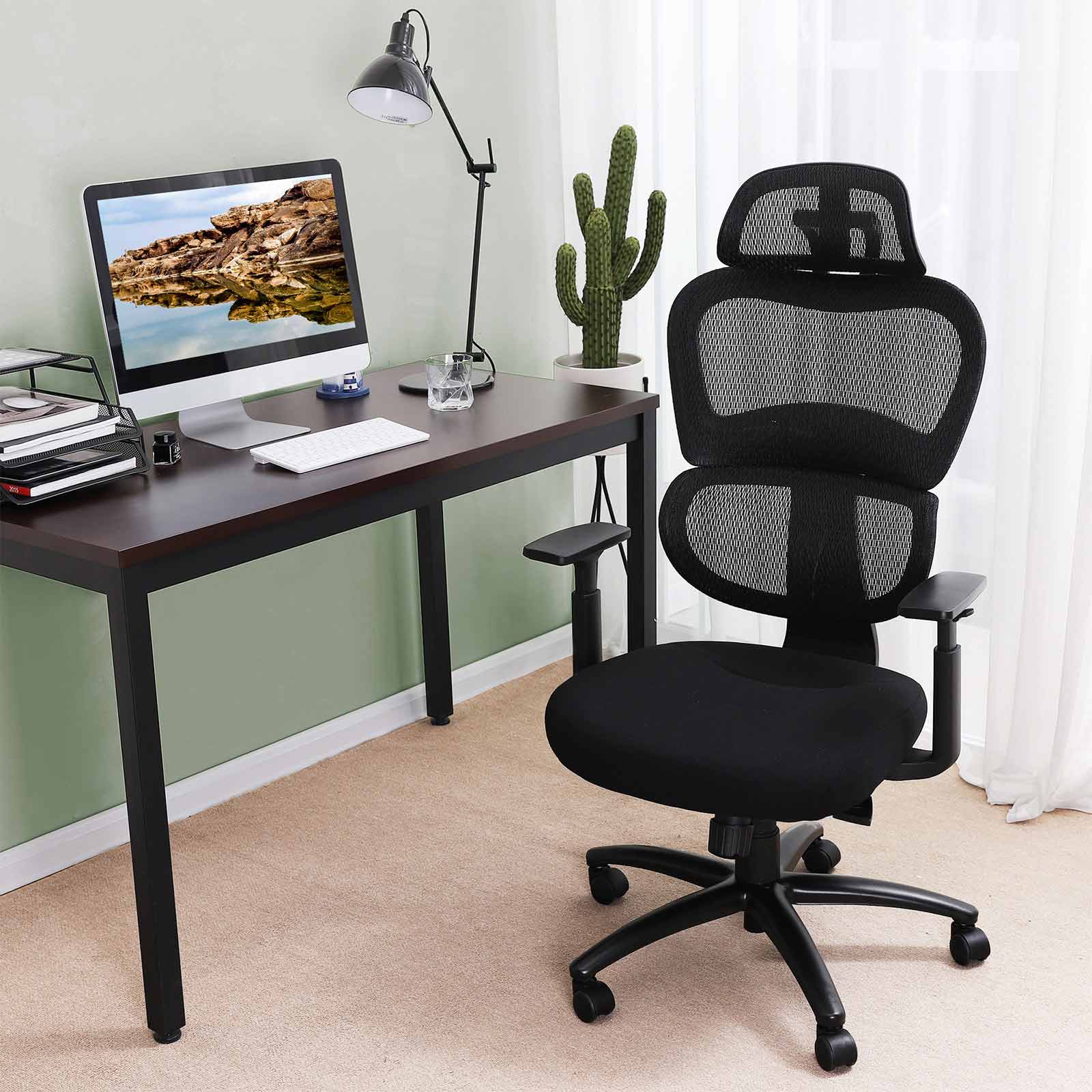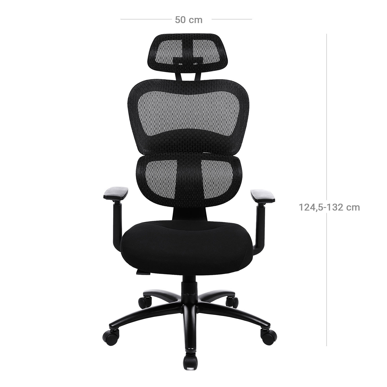 Produktbeskrivelse: Den ergonomiske kontorstol med netbetr?k har en behagelig k?leeffekt om sommeren. Den brede rygl?n af h?jkvalitets ?ndbart netstof giver god st?tte til dine skuldre. For at justere h?ldningen forhindres rygl?nets tilbageslag af en tilbageslagsbeskyttelse. Udvalgte lydl?se nylonruller, der ogs? er velegnede til h?rde gulve som tr?gulve, laminat, fliser, PVC osv., sikrer en j?vn glidning og sk?ner dit gulv; ekstra ruller og skruer til fremtidig brug. Tilbeh?r i blisterpakning og den illustrerede vejledning g?r monteringen nem. Denne moderne computerstol er perfekt til koncentreret arbejde eller afslappet brug i hjemmet. Produktdetaljer: M?l: -H?jde (total): 124,5-132 cm -Bredde (total): 66 cm -Dybde (total): 67 cm -S?deh?jde: 44-53 cm -S?debredde (brugbar): 50 cm -S?dedybde (brugbar): 52 cm -Arml?nets h?jde (fra gulvet): 60,5-70 cm -Rygl?nets h?jde: 73-81 cm -Tykkelsen p? forsiden af s?det: 9 cm -? fodkryds: 70 cm -? ruller: 50 mm -? stift: 11 mm Materiale: -Betrukning: Netstof -Polstring: H?jdensitets skum -Fodkryds: St?l -Arml?nsskaft: Nylon -Armst?tte: PU -Hjul: Nylon -Farve: Sort -Bruttov?gt: 19,4 kg -Maks. belastbarhed: 150 kg Leveringsomfang -1 x kontorstol -1 x beslagspose -1 x vejledning (DE, EN, FR, IT, ES)