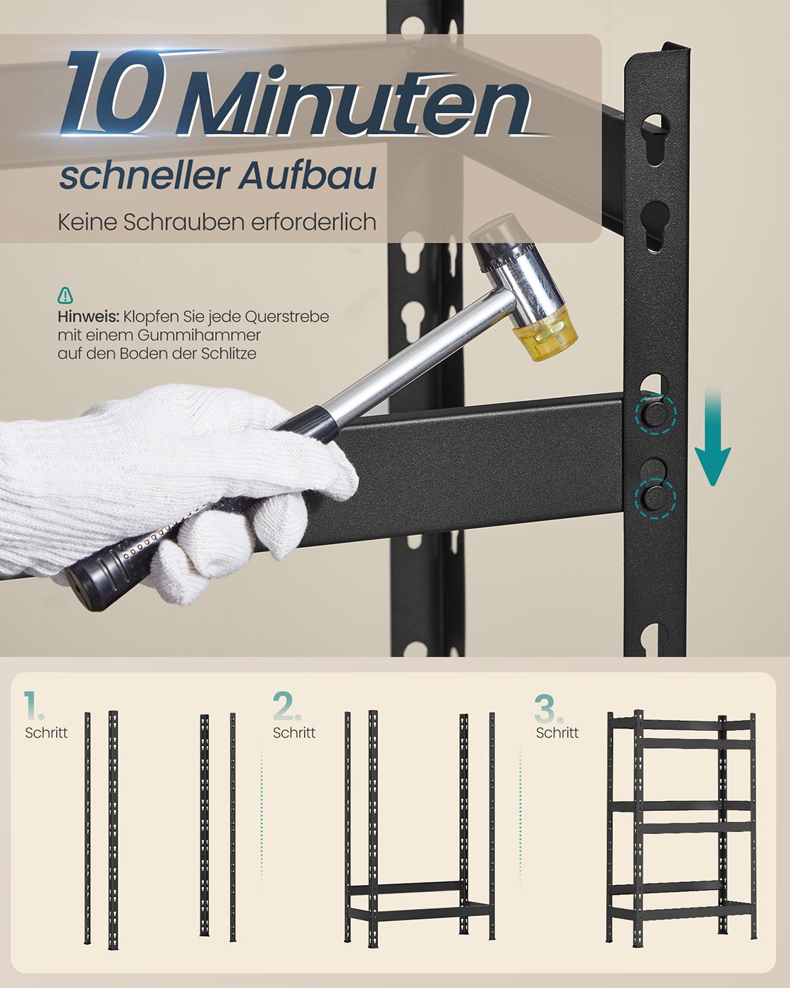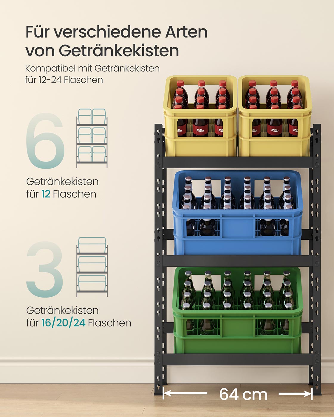SONGMICS drikkevarehylde, 3 niveauer, drikkevarehylde, hvert niveau kan b?re op til 30 kg, ?lhylde, st?l, kasseholder, til k?kken, garage, bl?ksort GYL001B01