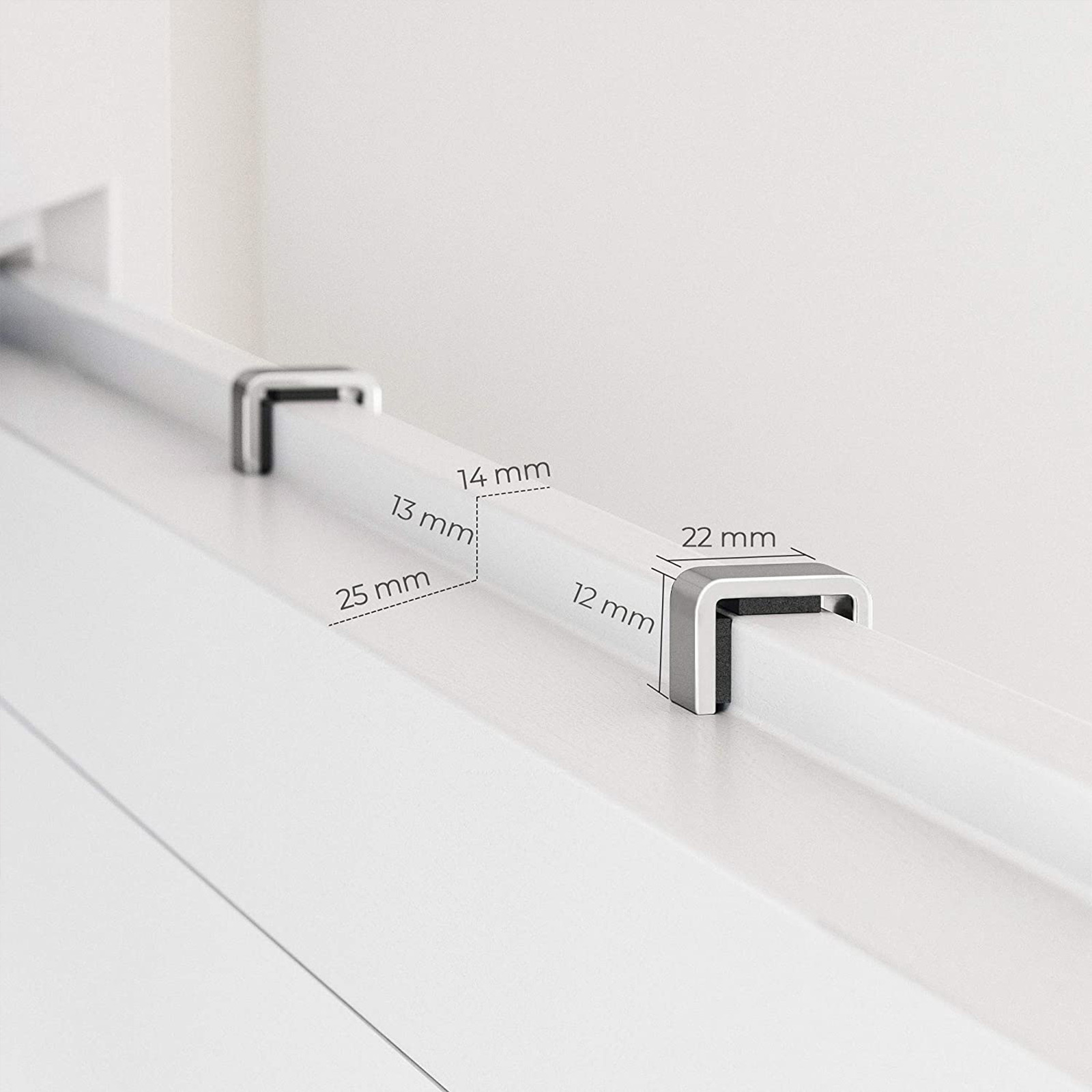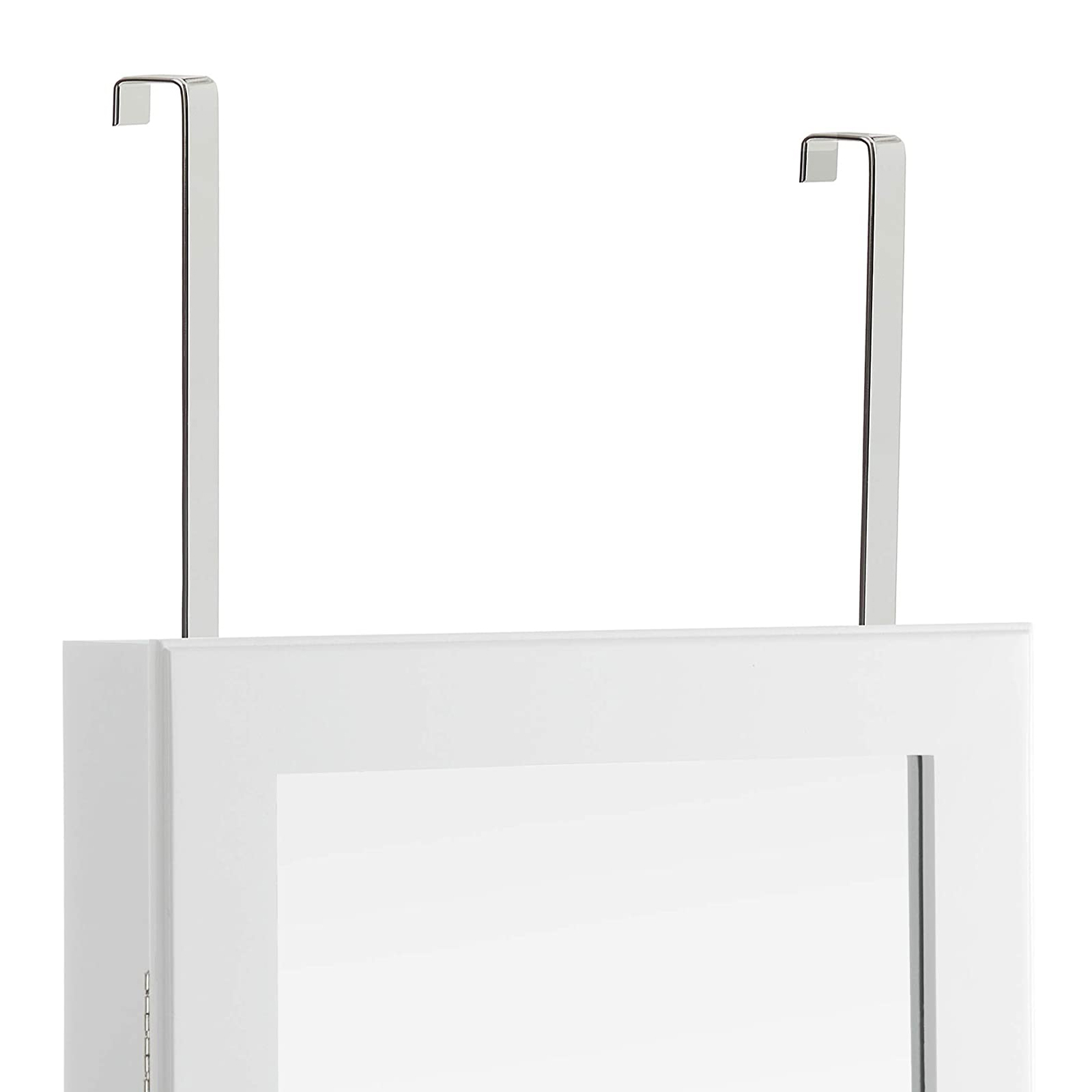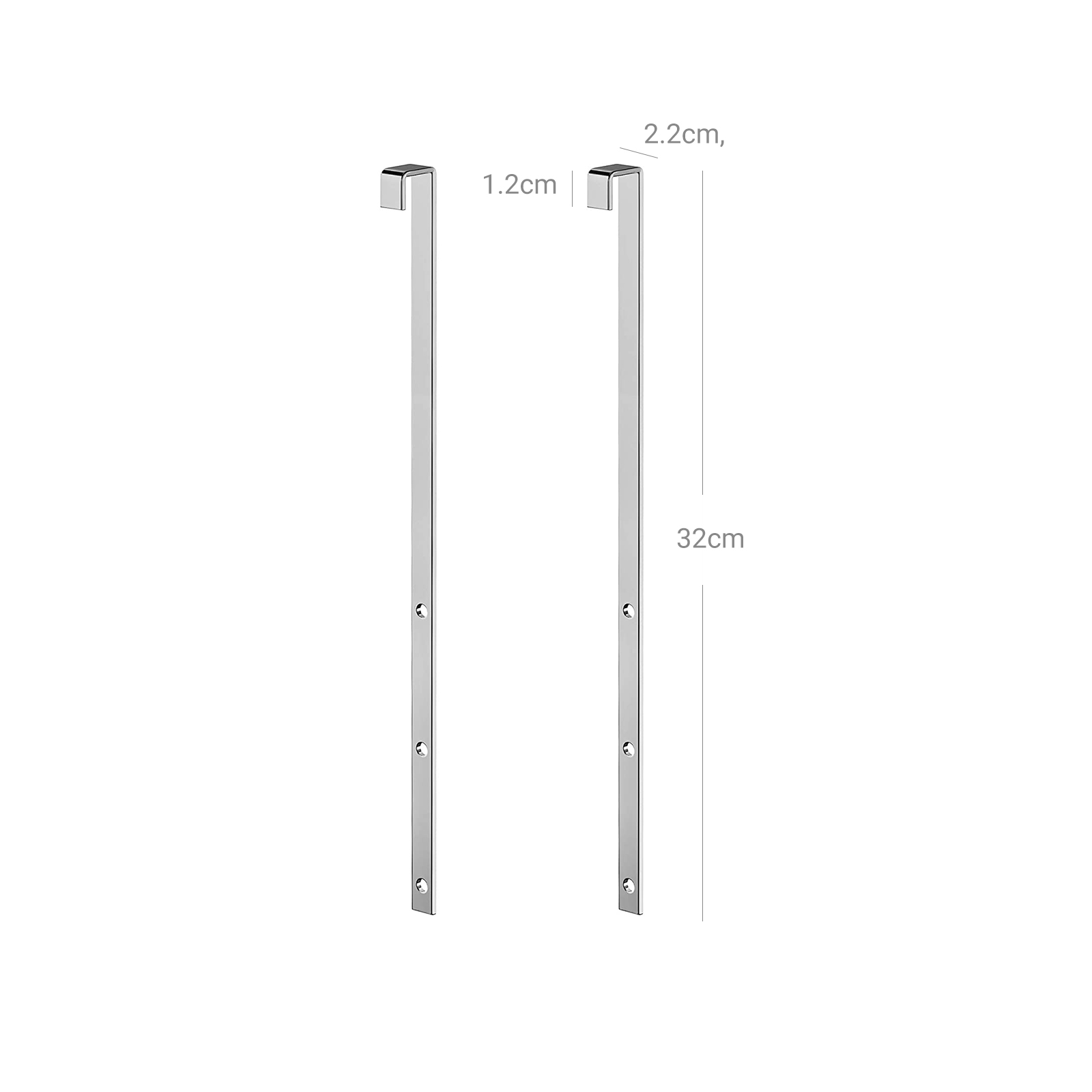 H?ng dit smykkeskab p? d?ren med disse kroge og spar plads for et mere ordentligt liv. Produktdetaljer: – Farve: S?lvfarvet – Materiale: St?l – St?rrelse: 1,2 x 2,2 x 32 cm (L x B x H) – V?gt pr. krog: 67,5 g Leveringsomfang: – 2 x kroge – 6 x puder af EVA-skum SONGMICS Bem?rkninger: – Kl?b f?rst puderne p? kroge for at undg? ridser p? d?ren. H?ng derefter f?rst kroge op.