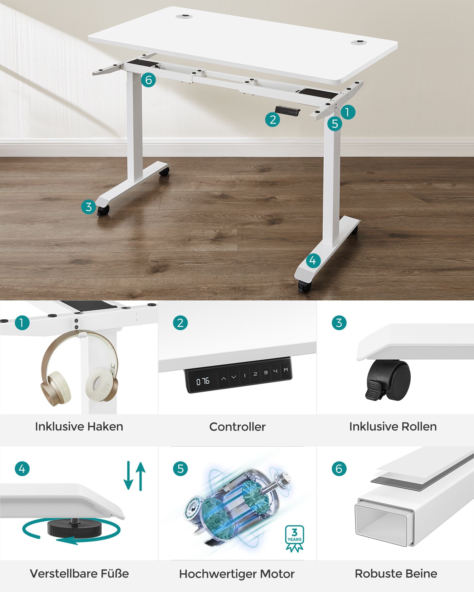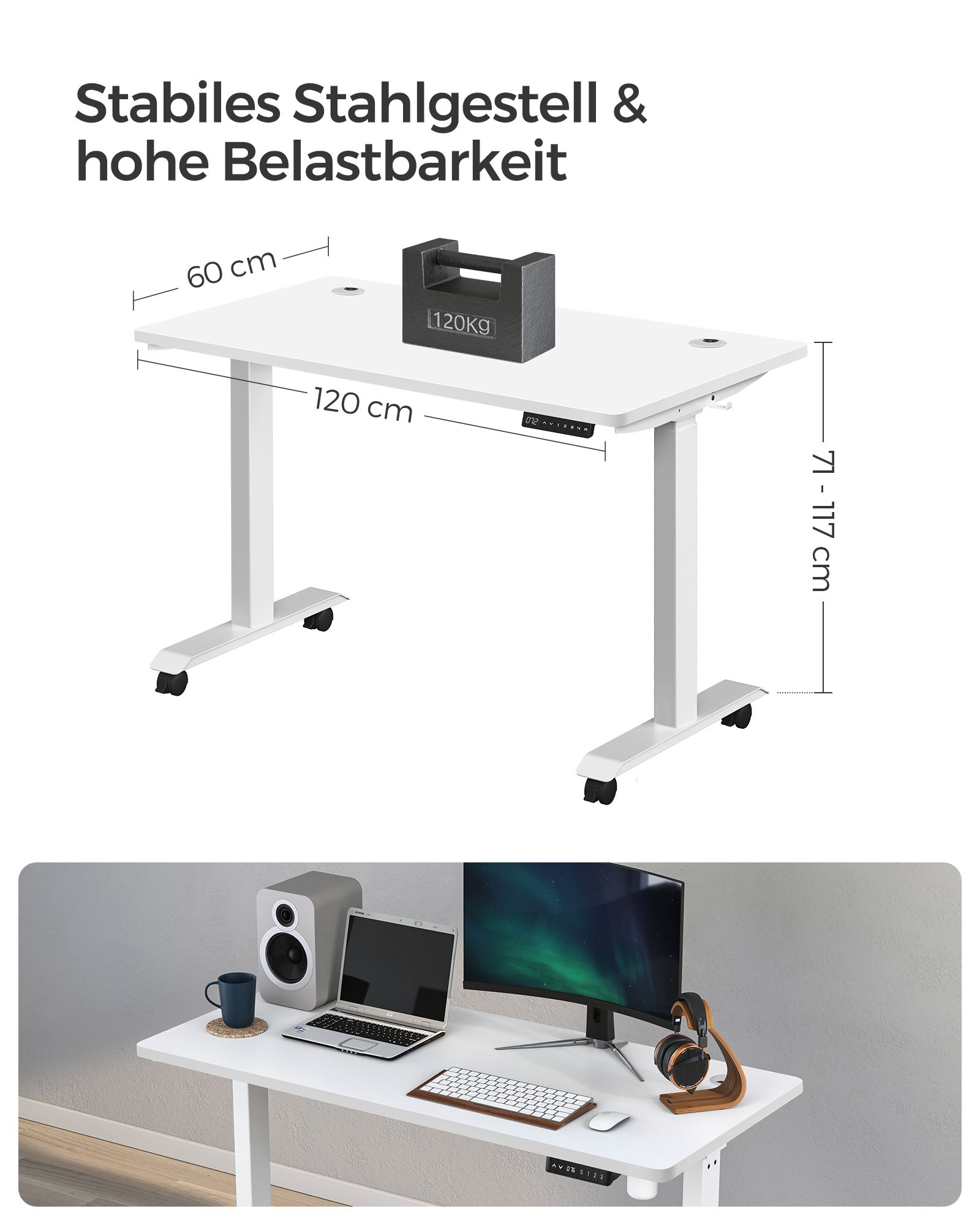 SONGMICS Elektrisk h?jdejusterbart skrivebord, 120 x 60 cm
