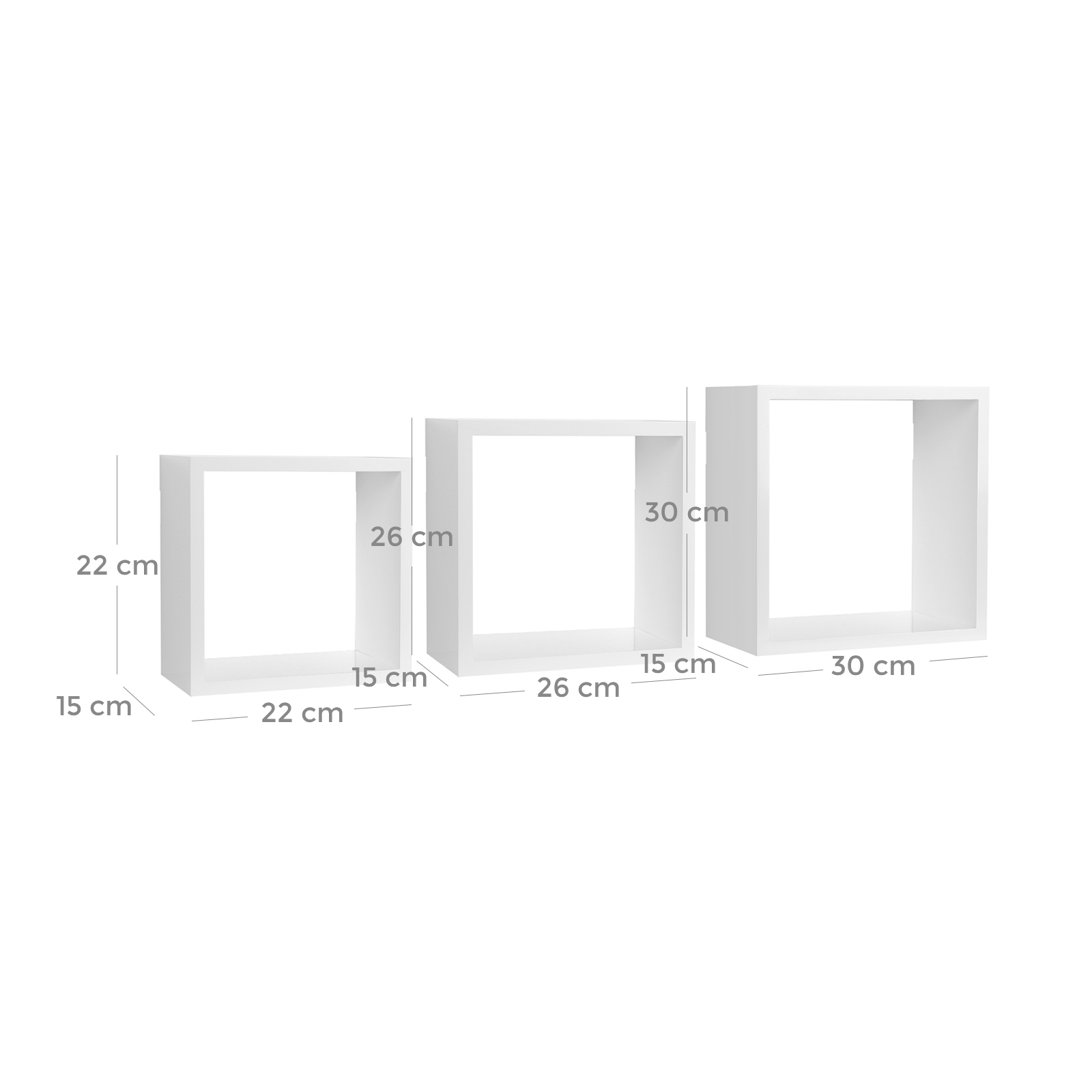 Vil du indrette dine v?gge efter din egen smag? S? er SONGMICS v?ghylde ideel for dig. Hylden kan ikke kun give dine v?gge et personligt pr?g, men kan ogs? tilbyde ekstra opbevaringsplads for optimal udnyttelse af rummet. Den h?ngende hylde er fremstillet af E1 MDF-plade, er meget robust og har god formstabilitet og lang levetid. Den h?jglansede hvide lakering forener modernitet og elegance, s? den passer godt til forskellige boligstilarter. Du kan h?nge den sv?vende hylde op i stuen, gangen, sovev?relset, arbejdsv?relset eller i k?kkenet. Indret dit rum med SONGMICS-reolen for at understrege din elegante smag. Produktdetaljer: – Farve: hvid – Materiale: MDF-plade (klasse: E1) – Produktm?l: 30 x 15 x 30 cm (B x H x D) – Nettov?gt: 5,2 kg – Bruttov?gt: 6,0 kg Leveringsomfang: – 3 x v?ghylde – 1 x beslagspose – 1 x vejledning (DE, EN, FR, ES, IT) SONGMICS Bem?rk: – Til montering er det n?dvendigt at bruge en akku-skruemaskine, et vaterpas og en hammer.