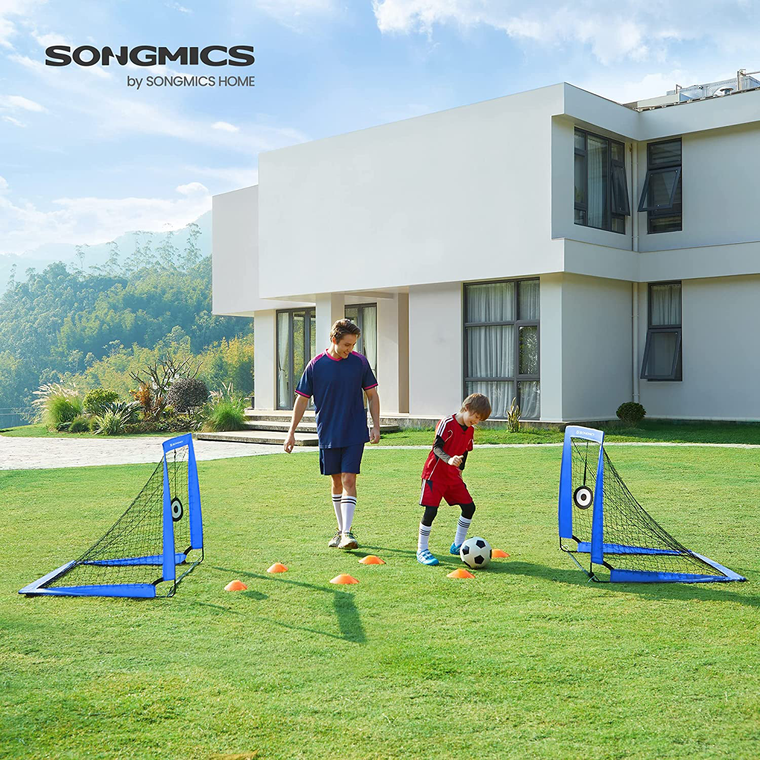 SONGMICS fodboldm?l til b?rn, 2 stk. foldbart, bl?t