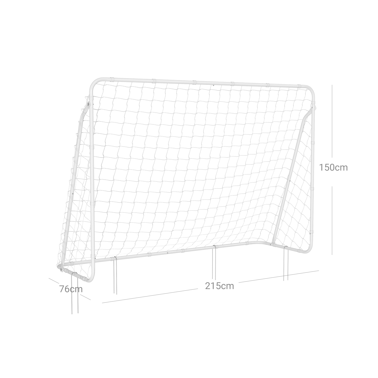 Udenfor er det solrigt og gr?nt, men dine b?rn sidder foran tv’et eller p? deres smartphone? I for?ret og sommeren kan du endelig lokke dem ud i haven igen: Spil en omgang fodbold sammen! Med dette lette, men alligevel robuste fodboldm?l fra SONGMICS vil dine b?rn have det sjovt i naturen og spille fodbold i timevis. Dette fodboldm?l best?r af pulverlakerede r?r og et slidst?rkt PE-net og fastg?res til jorden ved hj?lp af 4 U-formede jordankre. Hvor vil du opstille det? I haven, parken eller p? stranden? Det er helt i orden! Frygter du monteringen? Bare rolig. Dette fodboldm?l kan monteres og afmonteres p? et ?jeblik. De enkelte dele kan nemt tages med overalt. Produktdetaljer: Farve: Hvid Materiale: Pulverlakerede r?r, PE-net St?rrelse: 215 x 76 x 150 cm (L x B x H) Maskevidde: 10 x 10 cm V?gt: 4,8 kg Leveringsomfang: 1 x metalstel 1 x net 4 x skrue 4 x jordanker 24 x velcrob?nd 1 x vejledning (DE, EN, FR, ES, IT) SONGMICS Bem?rkninger: Dette produkt skal opstilles udend?rs ved hj?lp af det medf?lgende fastg?relsestilbeh?r. S?rg for, at det er fastgjort stabilt til underlaget. Ikke egnet til b?rn under 3 ?r. B?rn over 3 ?r m? kun bruge produktet under opsyn af en voksen.