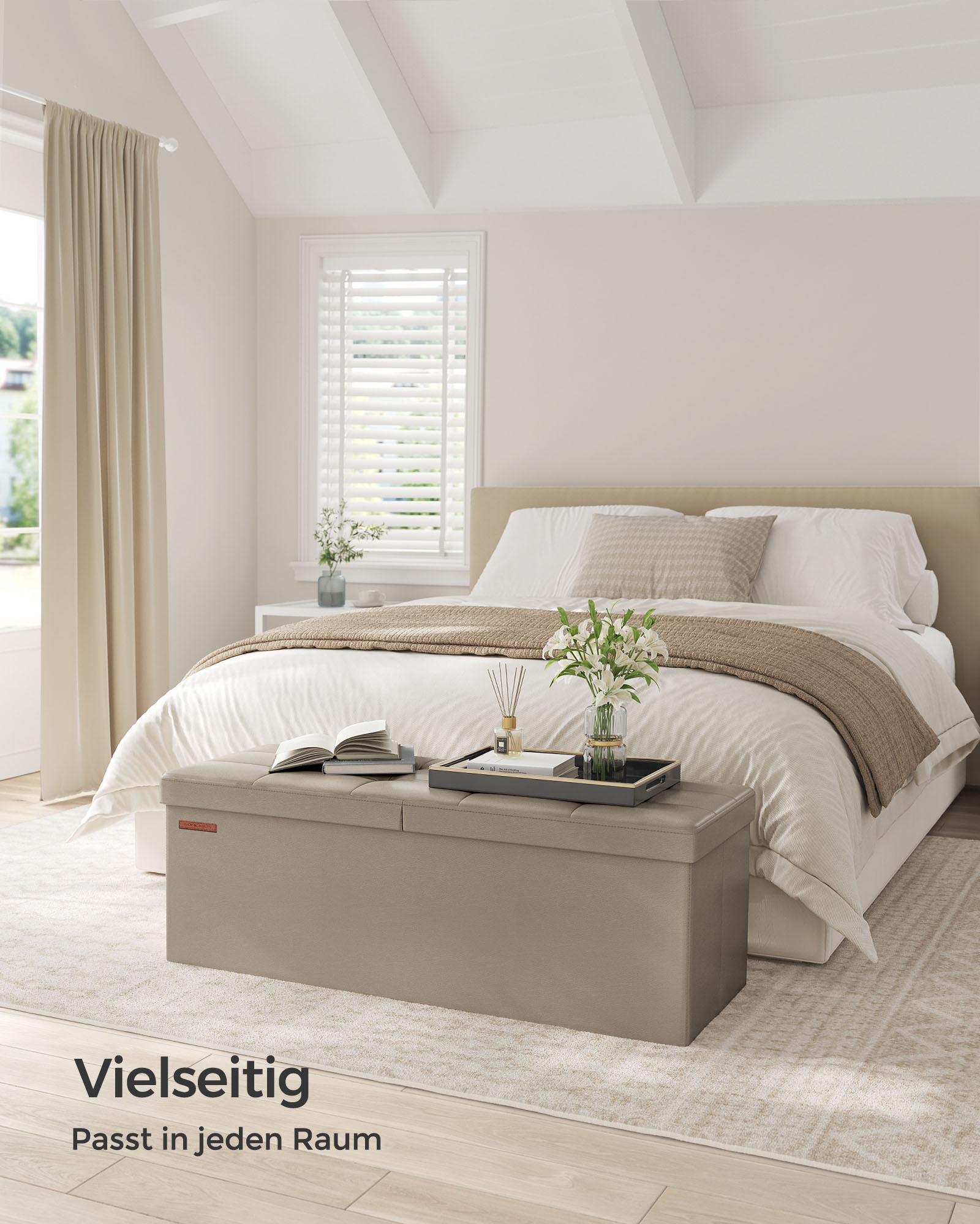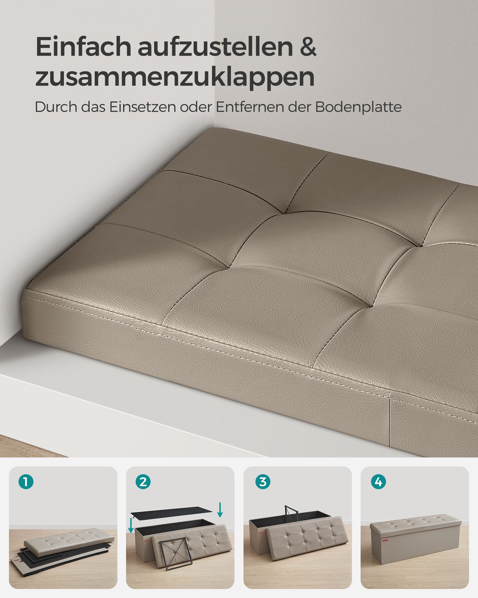 SONGMICS b?nk, foldbar, opbevaringskiste, 120 liters kapacitet, belastbar op til 300 kg, 38 x 110 x 38 cm, kaffebrun LSF075K01
