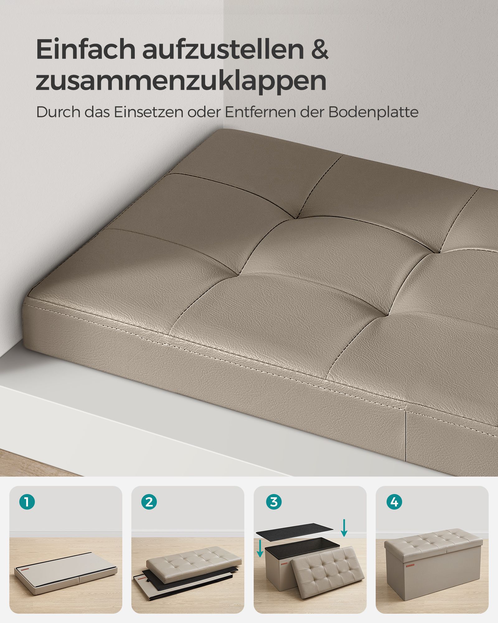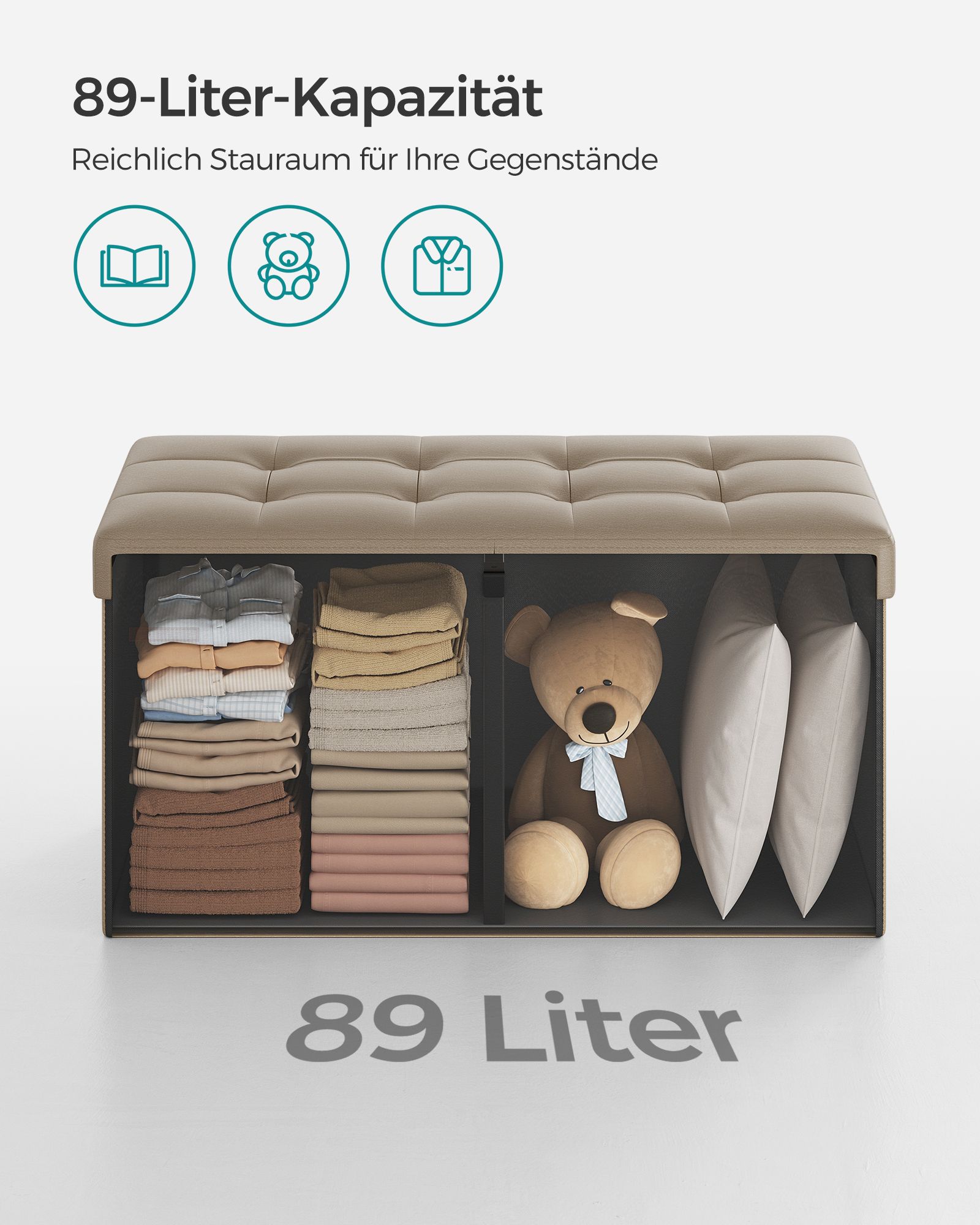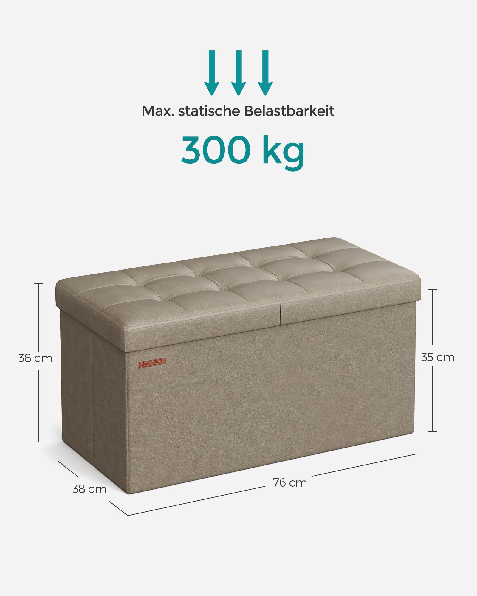 SONGMICS b?nk, foldbar, opbevaringskiste, 89 liters kapacitet, belastbar op til 300 kg, 38 x 76 x 38 cm, kaffebrun LSF045K01