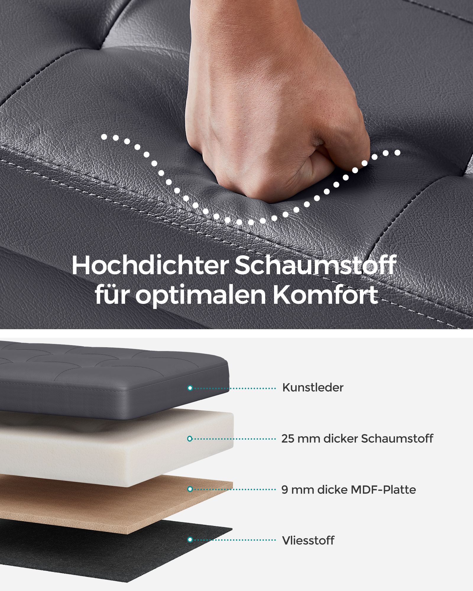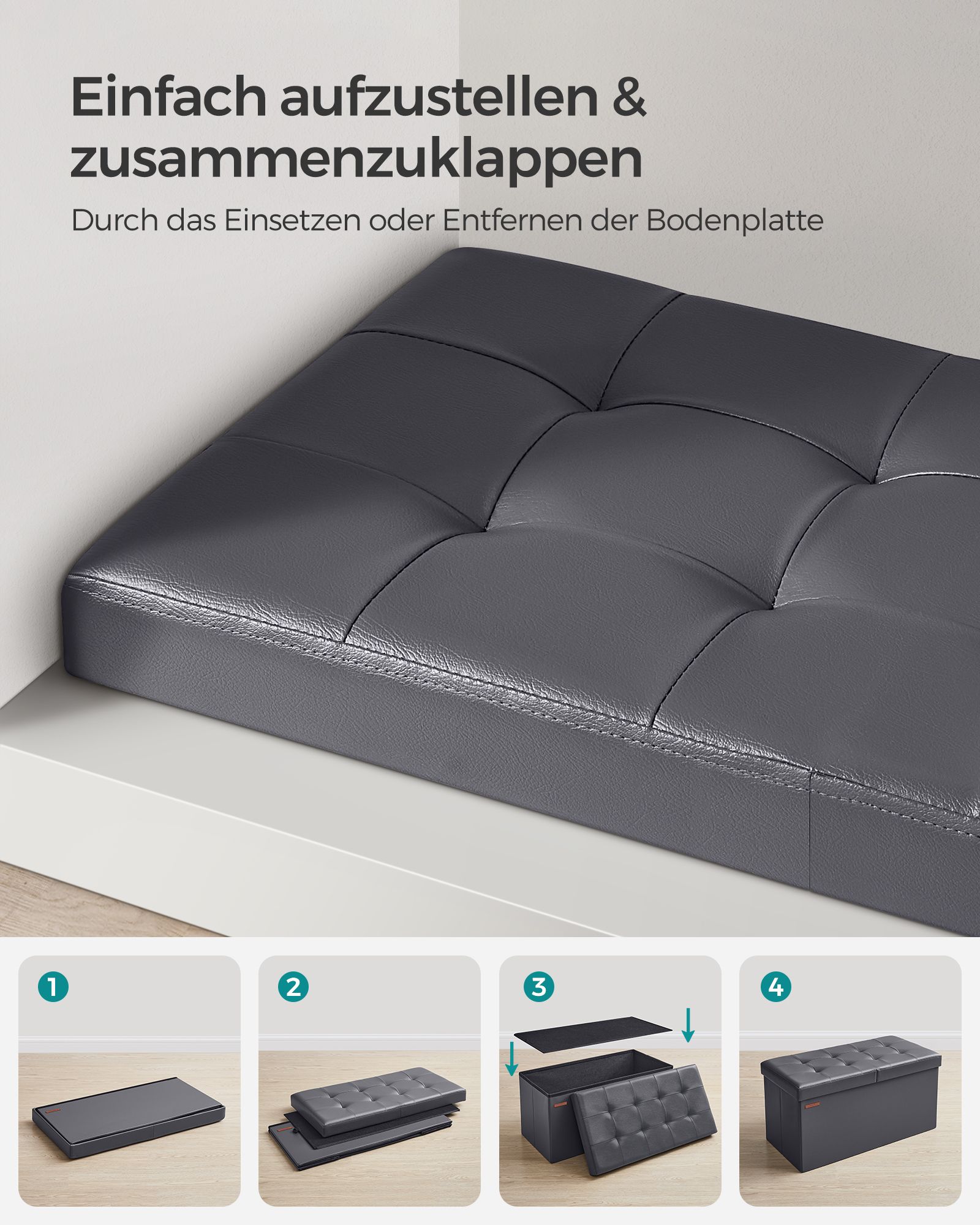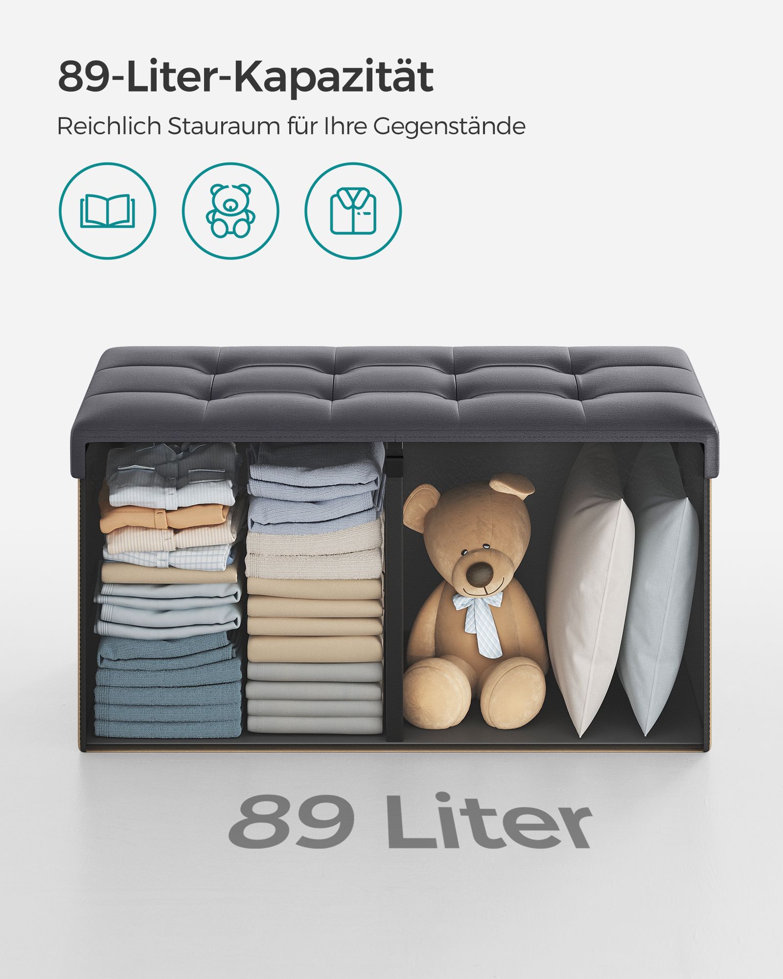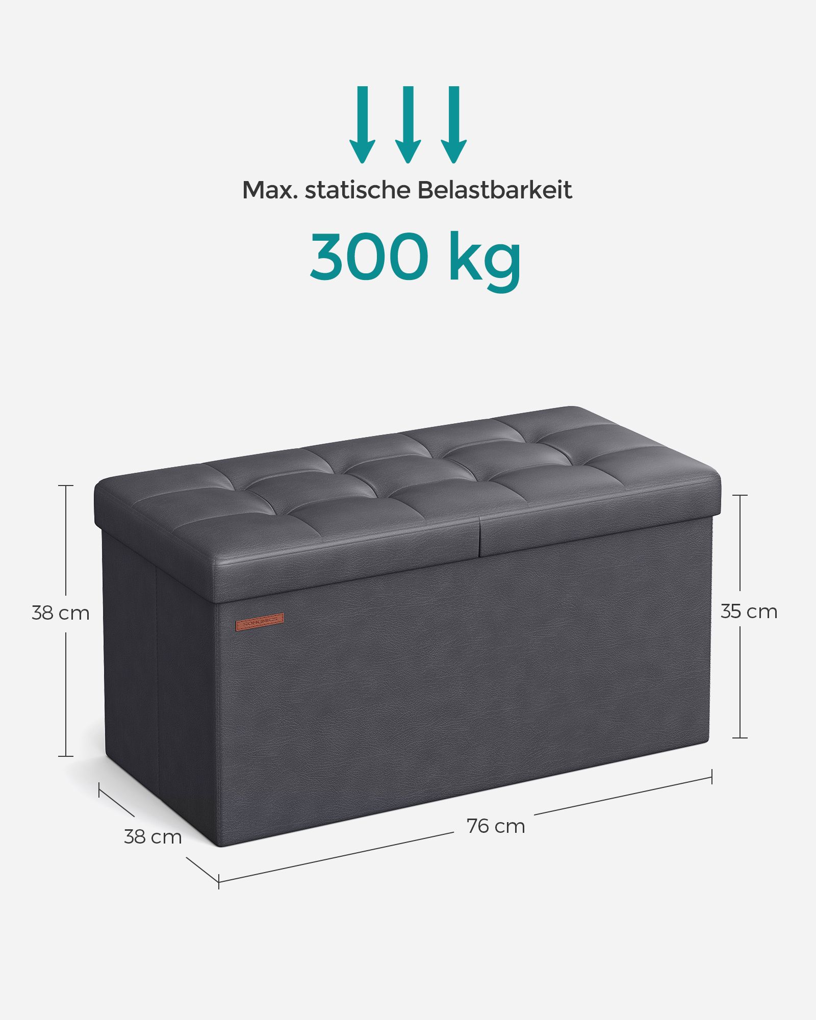 SONGMICS b?nk, foldbar, opbevaringskiste, 89 liters kapacitet, belastbar op til 300 kg, 38 x 76 x 38 cm, kaffebrun LSF045K01