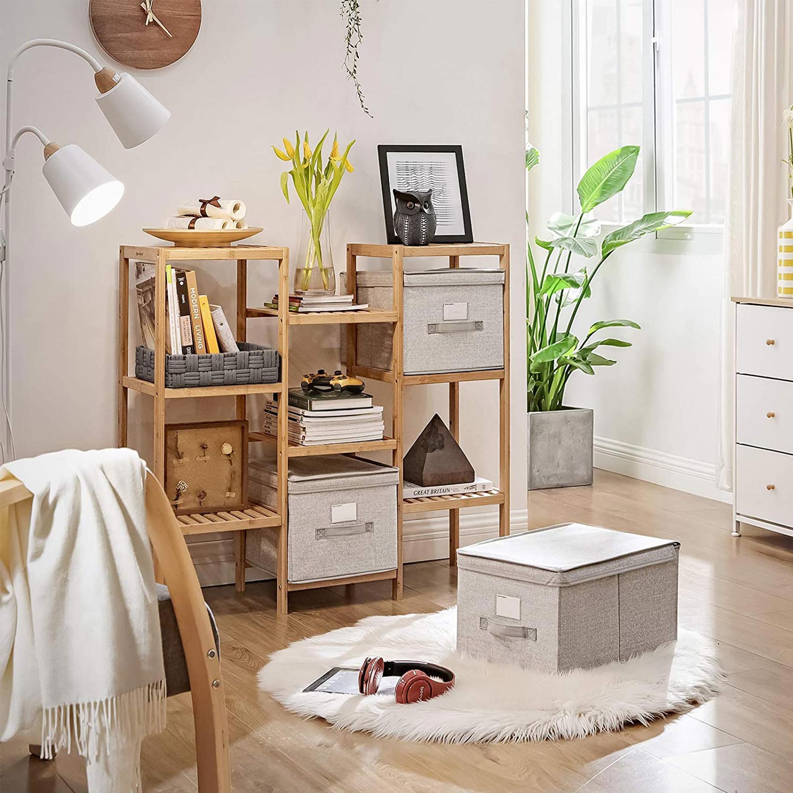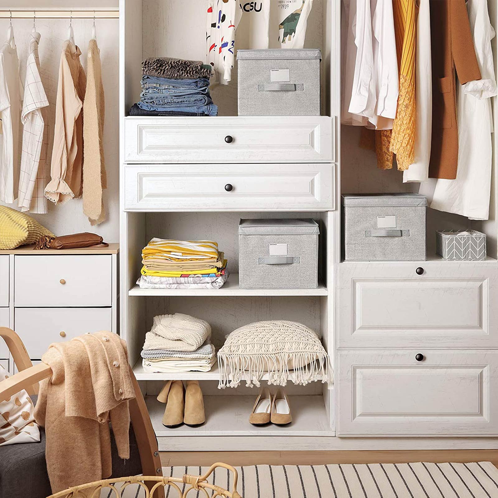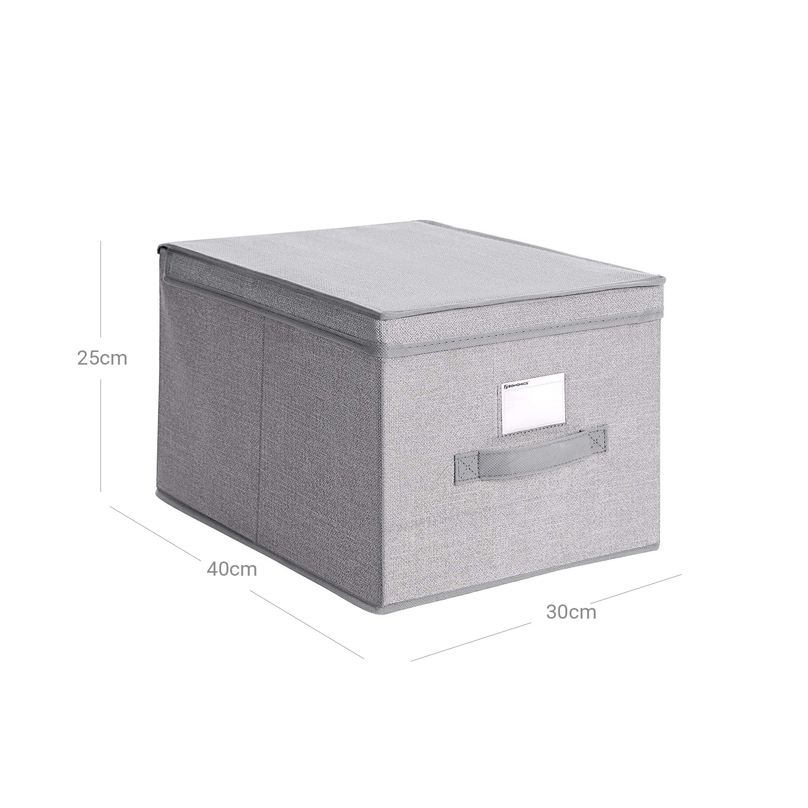 Da du er en travl person, vil der m?ske v?re dage, hvor du kommer hjem og m?der en bjerg af rod. Hvis du vil sortere dine ferie minder, rydde op i dit kl?deskab eller fjerne kaos i dine b?rns v?relse, er dette 3-pak foldbare kasser en smart opbevaringsl?sning for dig. Kasserne passer overalt: p? eller i dit kl?deskab, p? hylden i din garderobe, p? bogreoler og kontorbord, i dine b?rns v?relse osv. Kasserne i korte tr?k: Takket v?re kasserne er fremstillet af kvalitetsmaterialer ser de altid ud som nye og st?r som nye. L?gene, der er forbundet med kasserne, beskytter dine ejendele mod st?v og snavs.Kasserne kan foldes sammen, s? du kan opbevare dem pladsbesparende. Etiketholderne hj?lper dig med nemt at finde alle de opbevarede genstande igen. P?syede h?ndtag for nem transport. Stroppen p? kasserne g?r det nemt at folde dem sammen eller stille dem op. P?ne s?mme fuldender det eksklusive udseende af kasserne.Produktdetaljer: Farve: Lysegr? Materiale: 80 g/? tekstilkomposit i linnedlook, 2 mm tyk karton St?rrelse pr. karton: 30 x 40 x 25 cm (L x B x H) V?gt: 2,4 kg Maks. statisk belastning pr. kasse: 5 kg Leveringsomfang: 3 x opbevaringskasser SONGMICS Bem?rkninger:N?r du pakker produktet ud, kan det lugte “nyt”. I s? fald skal du placere det et godt ventileret sted i nogle timer. Fjern pletter med en fugtig klud og lad kasserne luftt?rre. Kan IKKE vaskes!