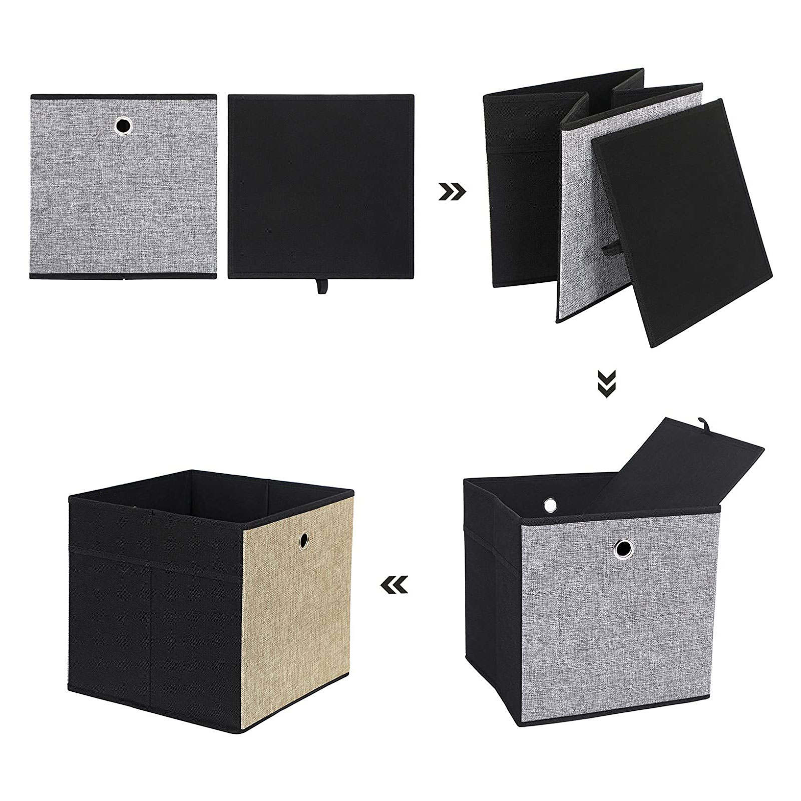 For at tilbyde dig en fleksibel opbevaringsl?sning har SONGMICS udviklet dette s?t opbevaringskasser. Med forskellige sider i 3 forskellige farver (gr?, brun, sort) giver kassen din bolig et s?rligt pr?g og passer perfekt til anden indretning. Kasserne kan opbevares i skabet, p? hylden eller p? bordet og giver dig mange forskellige opbevaringsmuligheder. De kan ikke kun bruges til opbevaring af t?j og leget?j, men ogs? som vasket?jskurv til opsamling af dit snavsede t?j. Klik nu p? “til kurven” og skab orden i dit hjem med disse opbevaringskasser! Produktdetaljer: – Farve: gr?, brun, sort – Materiale: imiteret linned, fleece, pap – M?l: 30 x 30 x 30 cm (B x H x D) – V?gt: 3,54 kg Leveringsomfang: – 6 x foldbar opbevaringsboks SONGMICS Bem?rkninger:- T?r produktet af med en fugtig klud og lad det luftt?rre. – Det kan v?re, at produktet lugter “nyt”, n?r det pakkes ud. Placer det i et godt ventileret rum, og lugten vil forsvinde efter et par timer. Produktbeskrivelse