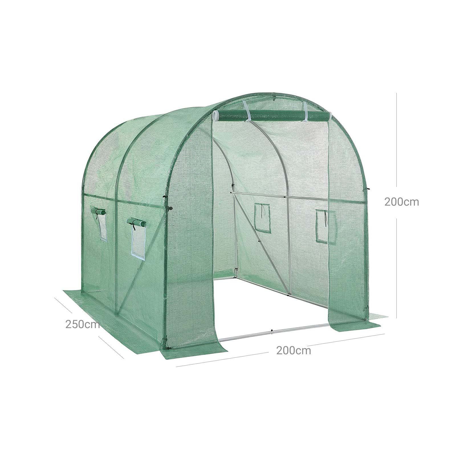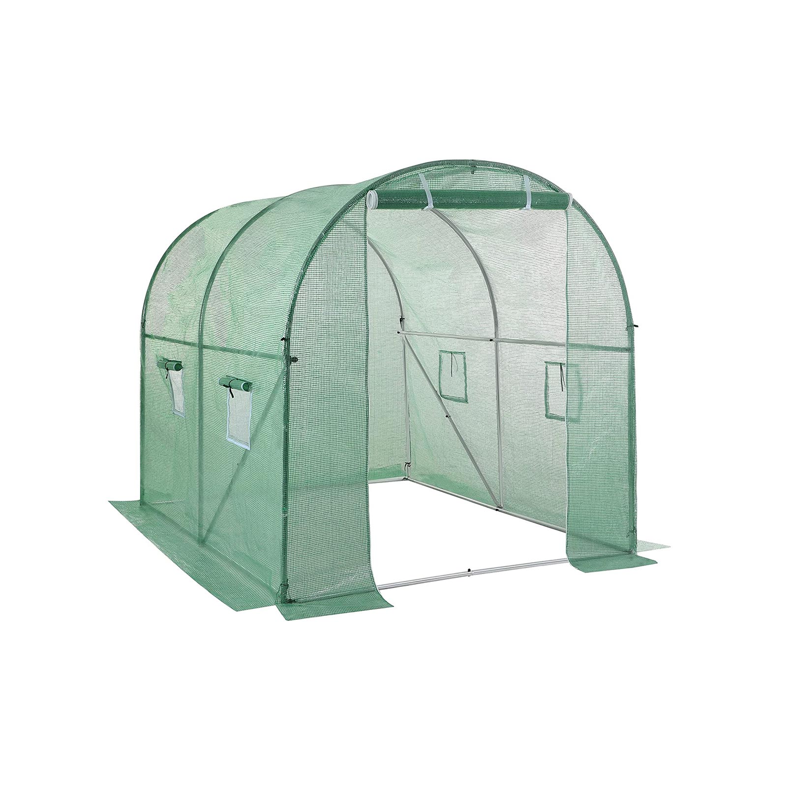 Hvorfor skal du have et drivhus? Vil du s? fr? om vinteren eller dyrke dine yndlingsblomster? Med dette drivhus kan du skabe et varmt og sikkert paradis for dine planter ? et must for alle haveelskere. Frugt, gr?ntsager, blomster, planter Med en st?rrelse p? 250 x 200 x 200 cm skaber dette drivhus et paradis for alle planter. Du kan opdele det i forskellige omr?der, et til dine yndlingsgr?ntsager som tomater og salater, et til l?kre frugter som druer og jordb?r og et til andre planter og blomster. Med dette drivhus forbliver din have smuk selv om vinteren! Produktdetaljer:- Farve: Gr?n – Materiale: St?l, PE – St?rrelse: 250 x 200 x 200 cm (L x B x H) – V?gt: 19 kg Leveringsomfang: – 1 x drivhus – 4 x jordkroge – 1 x tilbeh?rspakke – 1 x vejledning (DE, EN, FR, ES, IT)