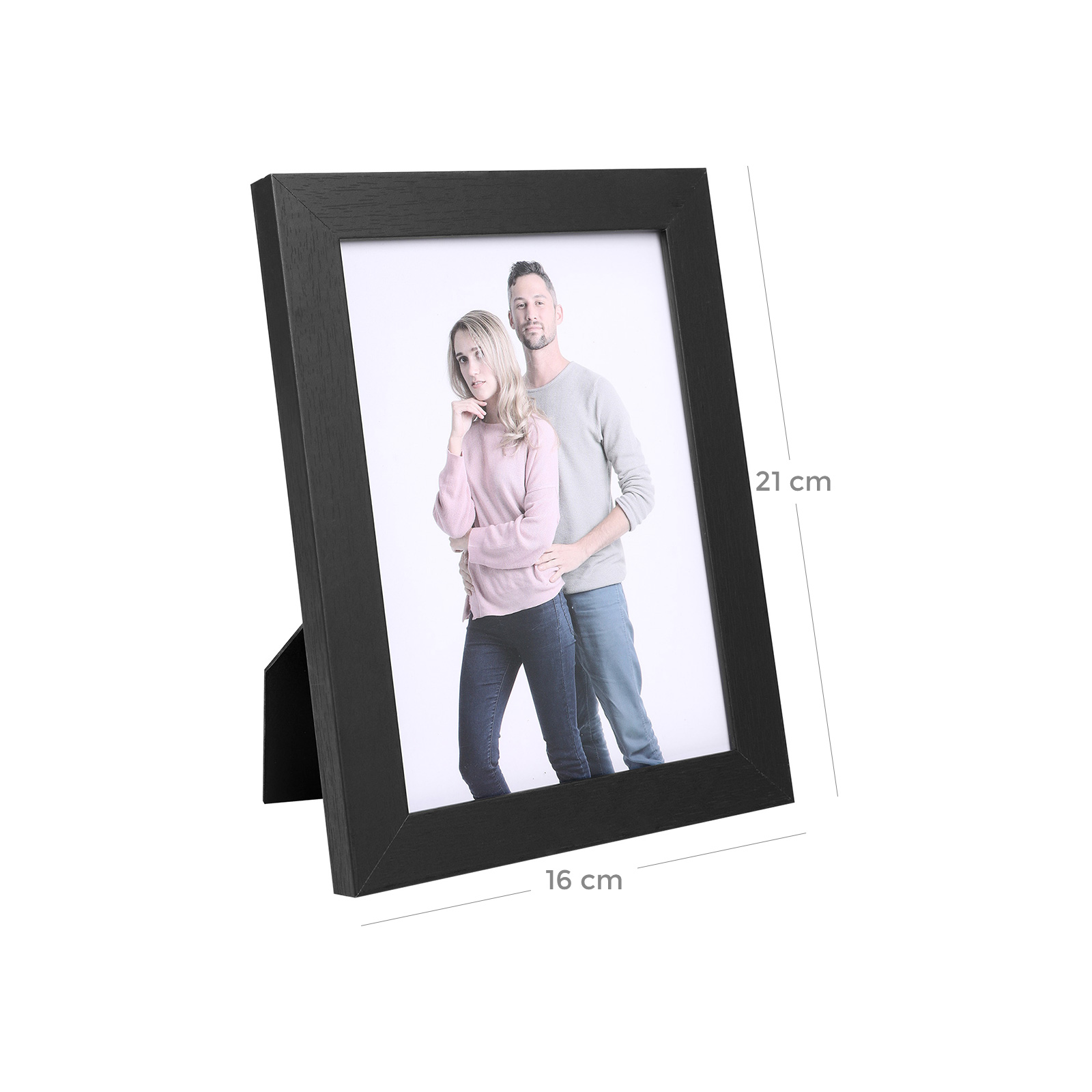 Fotorammer: Den bedste m?de at opbevare vores bedste minder p?. Dette s?t med 3 fotorammer er den perfekte gave til at udtrykke k?rlighed eller venskab. V?lg disse fotorammer fra SONGMICS for at udtrykke din k?rlighed til dine k?re! Det er en god id? at dekorere vores k?res v?gge med de vidunderlige ?jeblikke, vi har delt gennem alle disse ?r. Det er den bedste m?de at sikre, at vi ikke bliver glemt og altid er til stede, selv n?r vi er langt v?k. Indret v?ggene, v?relserne og entreen med disse 13 x 18 cm fotorammer af MDF i E1-klasse med glasplade. Vent ikke l?ngere og k?b dette s?t med 3 fotorammer! Vores fremragende kundeservice st?r til r?dighed f?r og efter dit k?b og besvarer dine sp?rgsm?l via e-mail inden for 24 timer. Vores prioritet er din fulde tilfredshed, og det garanterer vi dig med SONGMICS ! Produktdetaljer: – Farve: sort – Materiale: MDF, glas – St?rrelse p? foto: 13 x 18 cm – Ramme m?l: 16 x 21,1 cm – Kantbredde: 2 cm – Kanttykkelse: 1,5 cm – V?gt: 1 kg Leveringsomfang: – 3 x fotoramme SONGMICS Bem?rkninger: – Dette produkt indeholder glasdele, hold det v?k fra b?rn. – L?g ikke v?rdifulde genstande under fotorammerne. – V?gbeslagene medf?lger ikke.