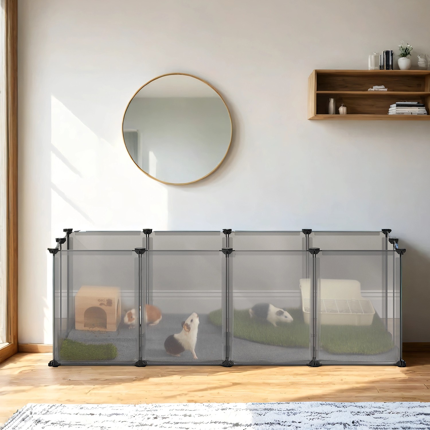 SONGMICS udend?rs bur med bundplader, l?beg?rd, marsvinbur, af plast, bur til hamstere, kaniner, pindsvin