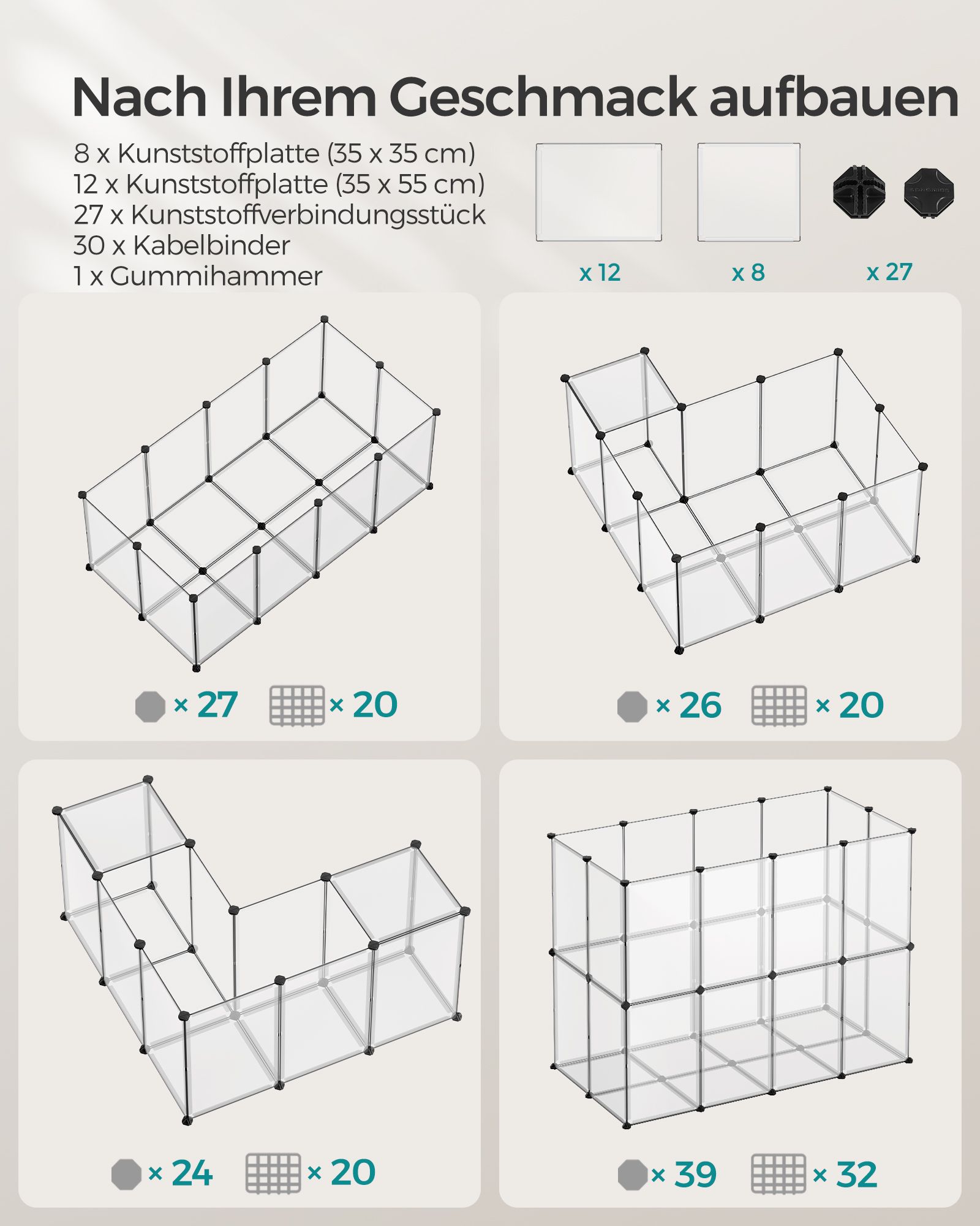 SONGMICS Frihegn med bundplader, l?beg?rd, marsvinhegn, af plast, hegn til hamstere, kaniner, pindsvin
