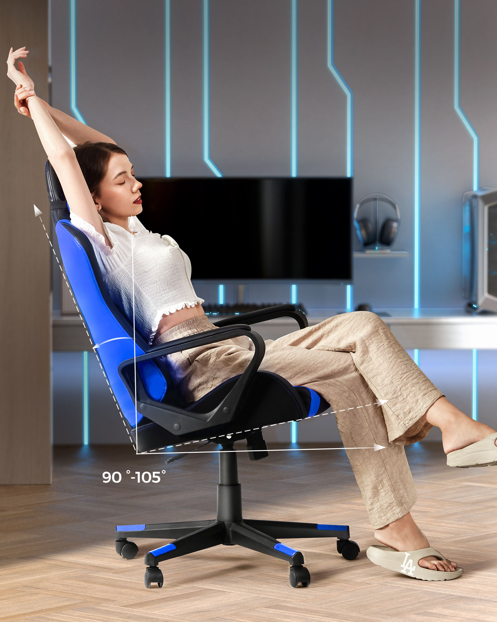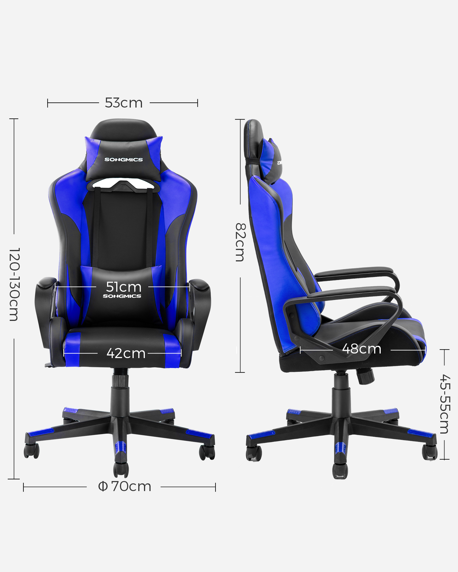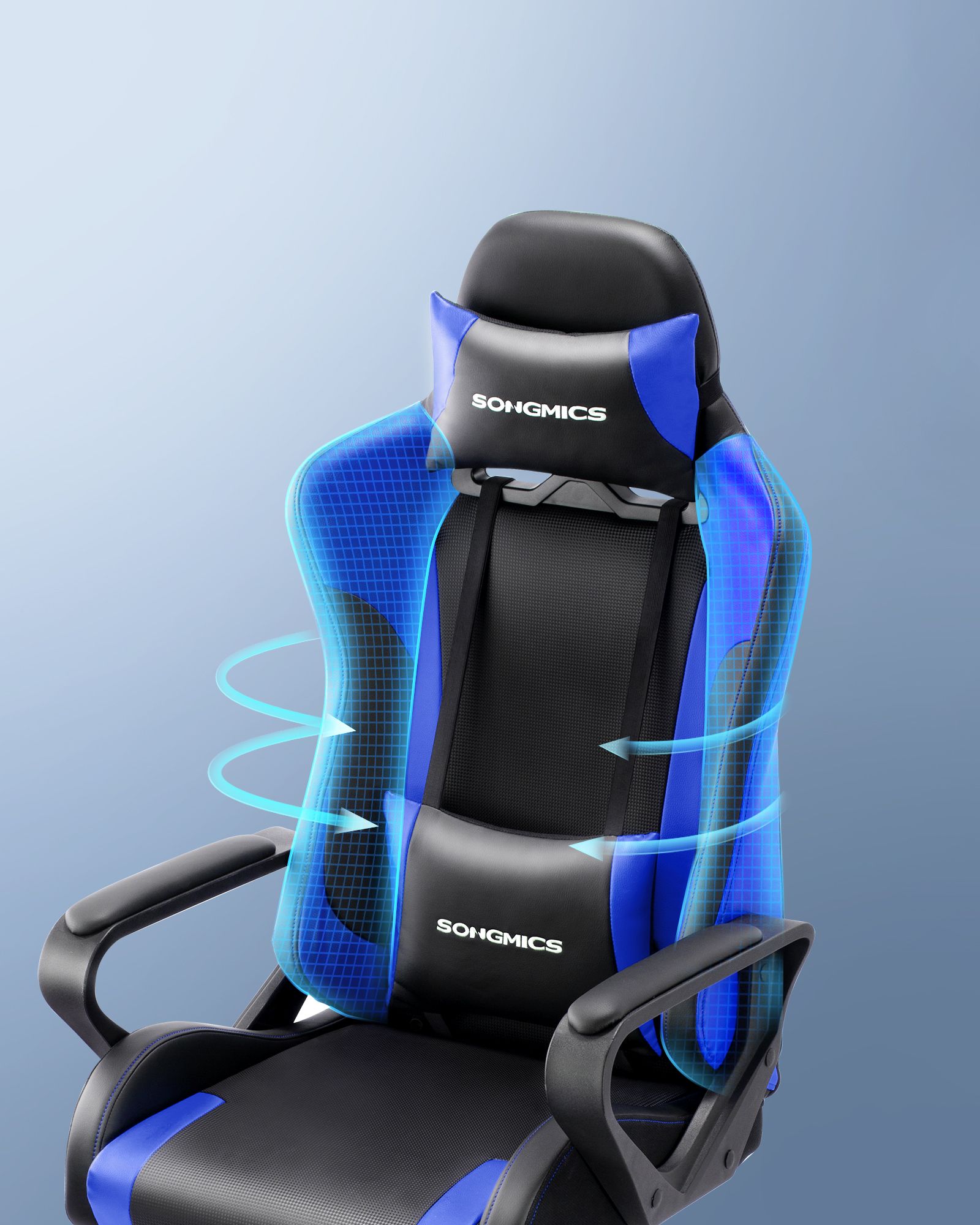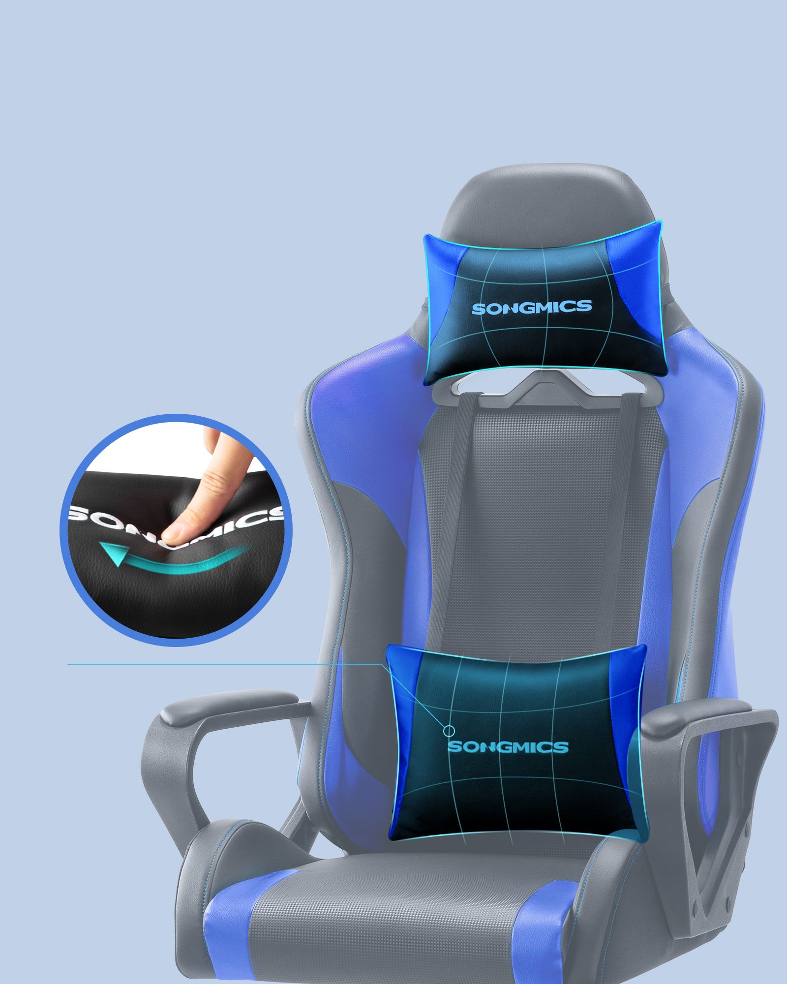 SONGMICS gamingstol, skrivebordsstol, computerstol, kontorstol, aftagelig nakkest?tte, l?ndepude, h?jdejusterbar, vippefunktion, belastbar op til 150 kg, ergonomisk, sort-r?d RCG011B01