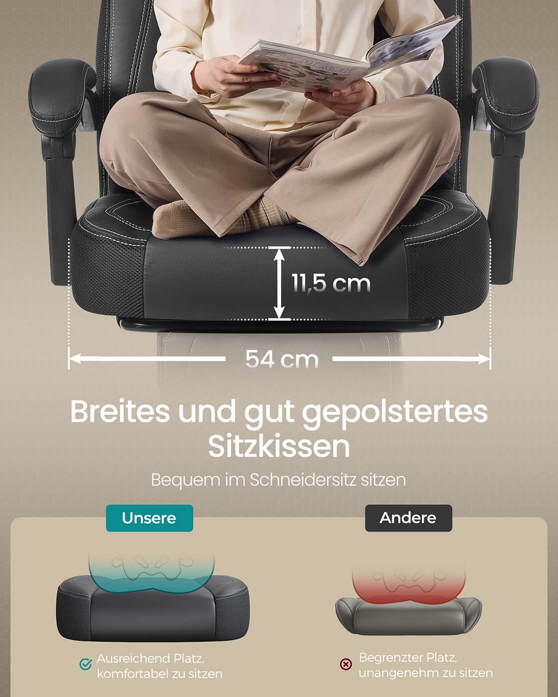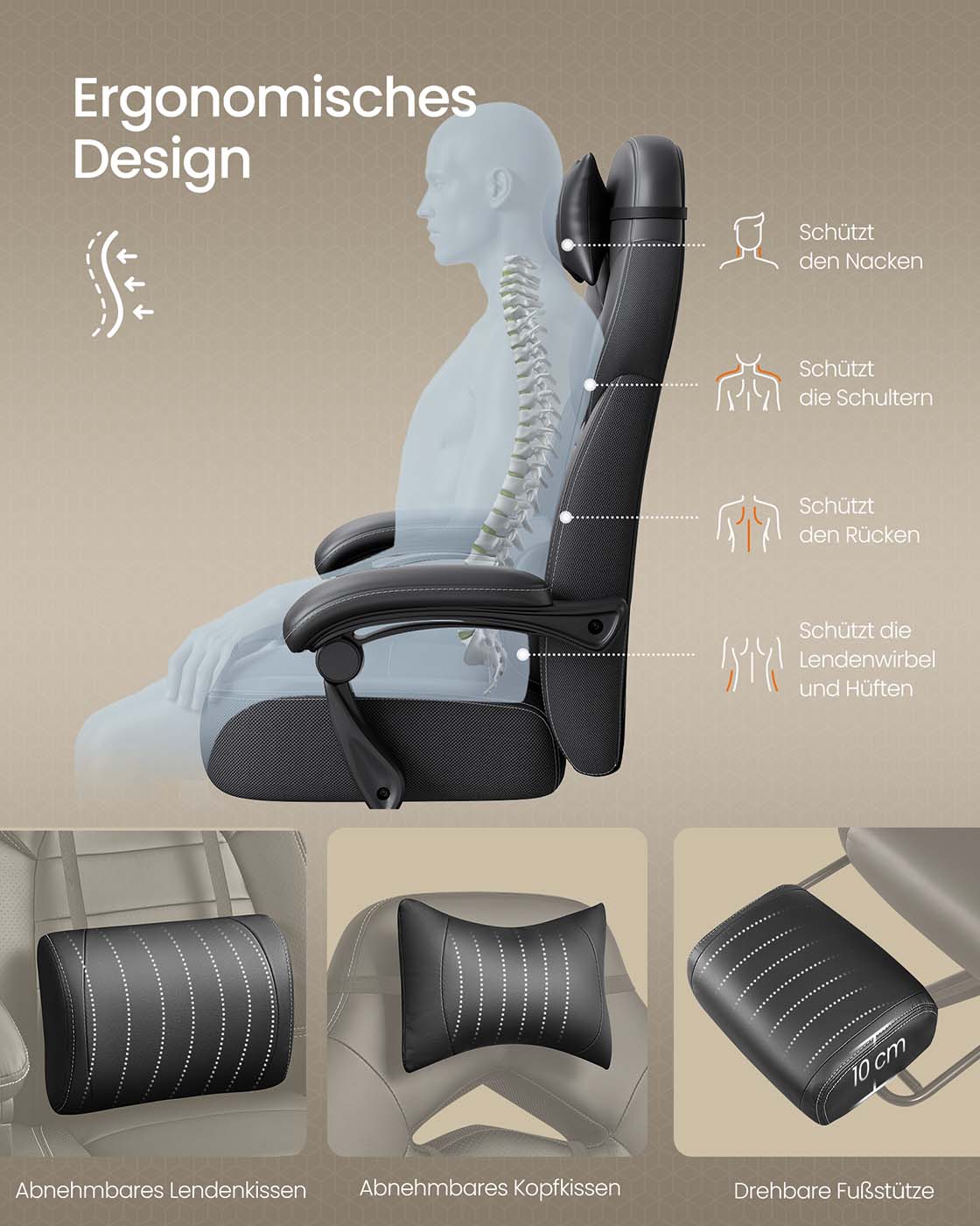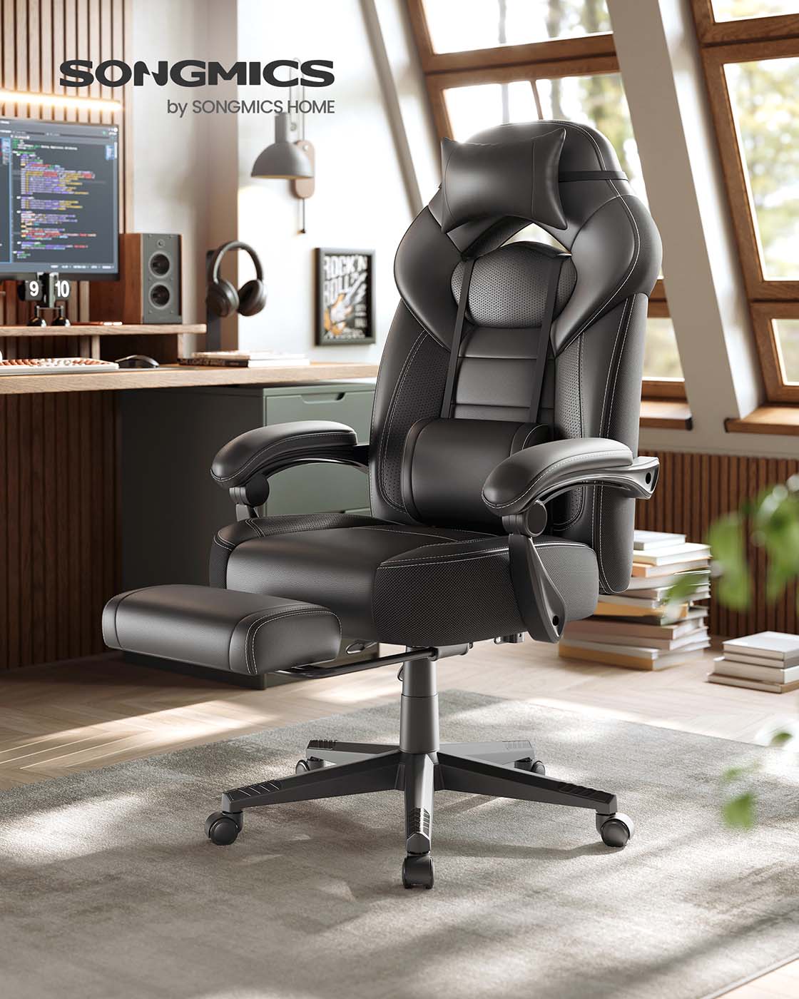 Det bedste til de bedste: Hvis du vil v?re den bedste i den virtuelle verden, har du brug for det rigtige udstyr i den virkelige verden. Et ideelt gaming-setup indeholder ikke kun en kraftig CPU eller grafikkort ? det er ogs? vigtigt at have passende tilbeh?r som en mus, et tastatur og ja, ogs? en gaming-stol. Denne racing-stol fra SONGMICS er designet til at give dig mulighed for at yde dit bedste og give dig en AAA-gaming-oplevelse til indie-priser.Overlegen komfort: Denne kontorstol tilbyder et samlet pakke best?ende af en l?ndepude, en S-formet rygl?n og en justerbar og aftagelig nakkest?tte. Alle disse elementer arbejder sammen for at sikre perfekt siddekomfort p? denne gaming-stol, der kan b?re op til 150 kg, mens dit adrenalin stiger, n?r du gamer.L?n dig tilbage: Hvis du ikke vil spille, men bare l?ne dig tilbage og se en film, kan du justere rygl?net mellem 90? og 135? og tr?kke fodst?tten ud ? slap af i den mest komfortable position!Produktdetaljer:Farve: SortMateriale: Kunstl?der, skum, nylonSt?rrelse: 70 x 64 x (120-128) cm (L x B x H)V?gt: 20,5 kgMaks. statisk belastning: 150 kgLeveringsomfang:1 x kontorstol1 x ekstra rulle1 x tilbeh?rspose1 x vejledningSONGMICS Bem?rkninger:Undg? at uds?tte produktet for intens sollys i l?ngere tid.Hold produktet v?k fra skarpe og spidse genstande.