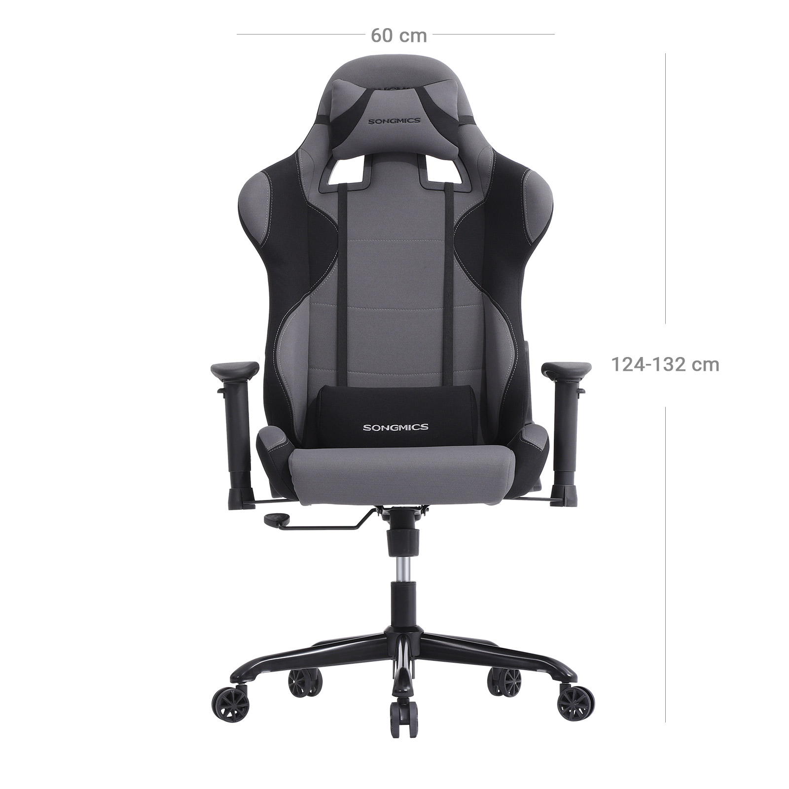 Songmics kontorstol i stilfuldt design kombinerer funktionalitet og komfort med forn?jelse! Med h?jkvalitetsmaterialer og fremragende kvalitet tilbyder kontorstolen fra Songmics mange anvendelsesmuligheder, hvad enten det er som kontorstol foran skrivebordet, som gamingstol eller som konferencestol. S?deh?jden kan justeres trinl?st, stolen kan drejes 360?, rygl?net kan justeres i flere trin og op til 150?, hvilket sikrer en afslappende liggestilling. – Fremstillet af h?jkvalitets polyesterstof og formgivende h?jdensitets skum, bl?dt, behageligt og med stor siddekomfort – Formet rygl?n med hovedpude og ergonomisk sving, aflaster nakke- og l?ndehvirvels?jlen, forbedrer siddestillingen – Arml?nene er konstrueret til ergonomisk korrekt siddestilling og kan justeres b?de i h?jden og i siderne, s? over- og underarme kan danne en ret vinkel, hvilket aflaster skulderb?ltet for armens v?gt. Arml?nets betr?k af PU f?les behageligt og er let at reng?re. – Enkel montering, v?rkt?j medf?lger Produktdetaljer: – S?deh?jde: 43-51 cm – Total h?jde: 124-132 cm – Stolens bredde uden arml?n: 53 cm – Siddedybde: 49 cm – Afstand mellem begge arml?n: 70 cm – Rygl?nsh?jde: 85 cm – Hjuldiameter: 60 mm – Nettov?gt: 23,4 kg – Bruttov?gt: 24,7 kg Leveringsomfang: – 1 x racestol – 1 x hovedpude – 1 x l?ndepude – 1 x v?rkt?j – 1 x vejledning (DE, EN, FR, IT, ES) Bem?rk: N?r du samler st?ttedelen, skal du v?re opm?rksom p?, at siden med m?rket “Front” skal vende fremad.